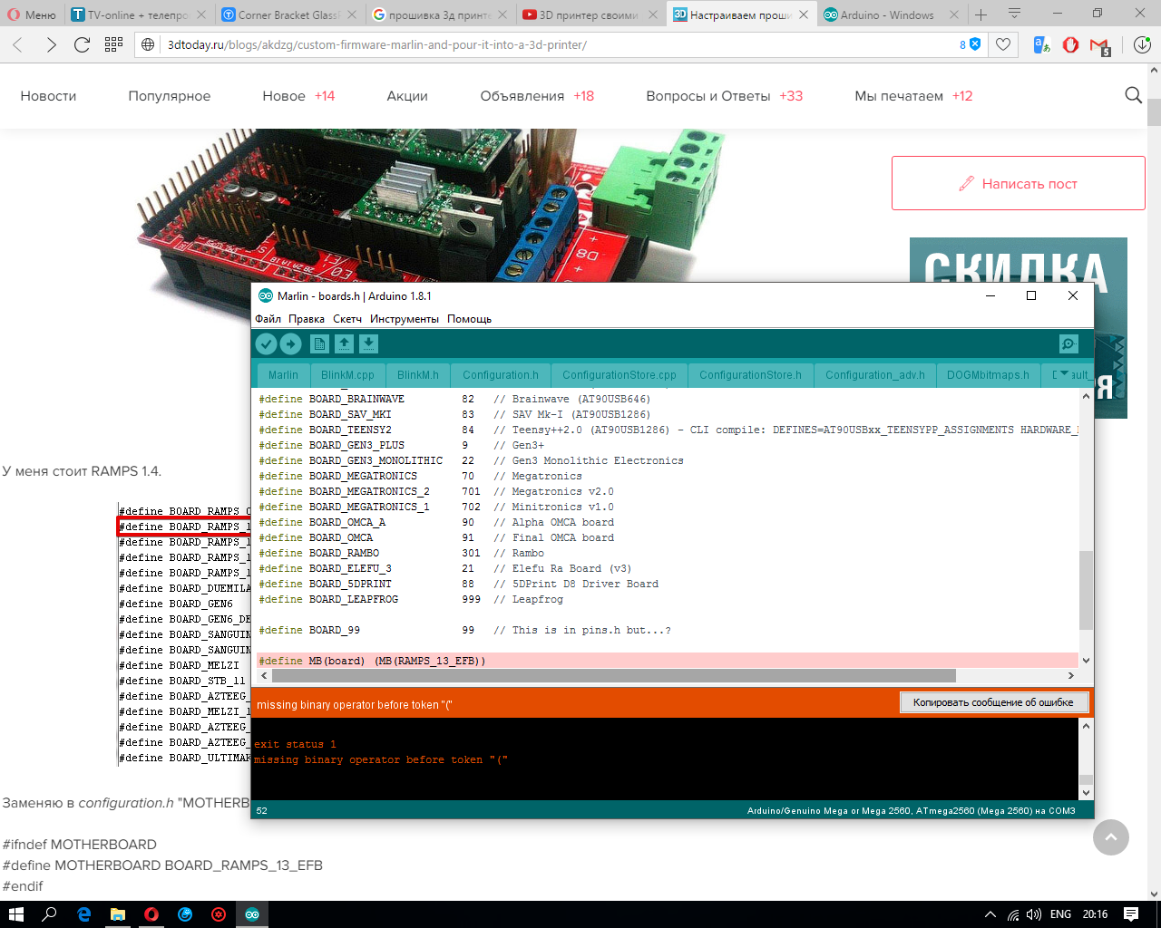 проблема с установкой прошивки Marlin