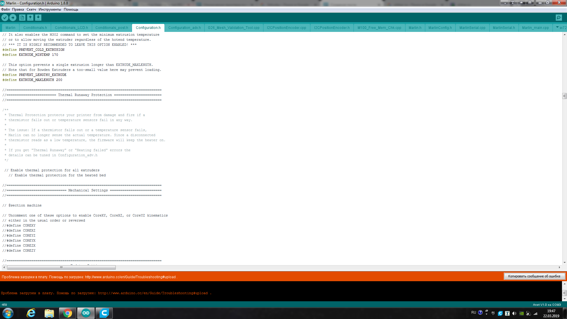 Приветствую коллеги) Помогите пожалуйста с решением проблемы: моя плата Anet v1.0 лагает: показывает что стол разогрет до 252 градусов, хотя термодатчик не подключен (если подключен то же самое). Сменил прошивку, а новая считает это перегревом и выдает ошибку. И пока показана ошибка, новую прошивку загрузить нельзя! (то есть у меня не получается загрузить прошивку с выключенной защитой от перегрева) Совершенно не понимаю, что делать, помогите!