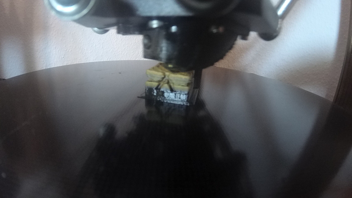 Мне сразу не понравилось и показалось странным что он сильно ломкий, прям в рукам рассыпается от легкого напряжения.У меня оставалось в экструдере немного черного пластика ,я решил посмотреть как будет переход одного пластика на другой происходить, но результат не удался получилось не так здорово как себе представлял. Пошло расслоение и на выходе был какой-то грязно желтый цвет, хотя пластик вроде бы оранжевый.Посмотрел в интернете, советуют разное но я решил проверить вариант где надо положить на теплую батарею, подождать немного и пластик будет менее хрупким и более эластичным.