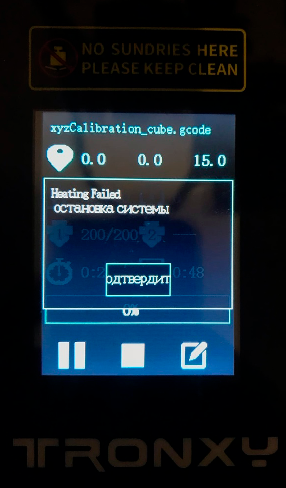 Tronxy Crux - 1, перестал нагревать стол, выдает ошибку