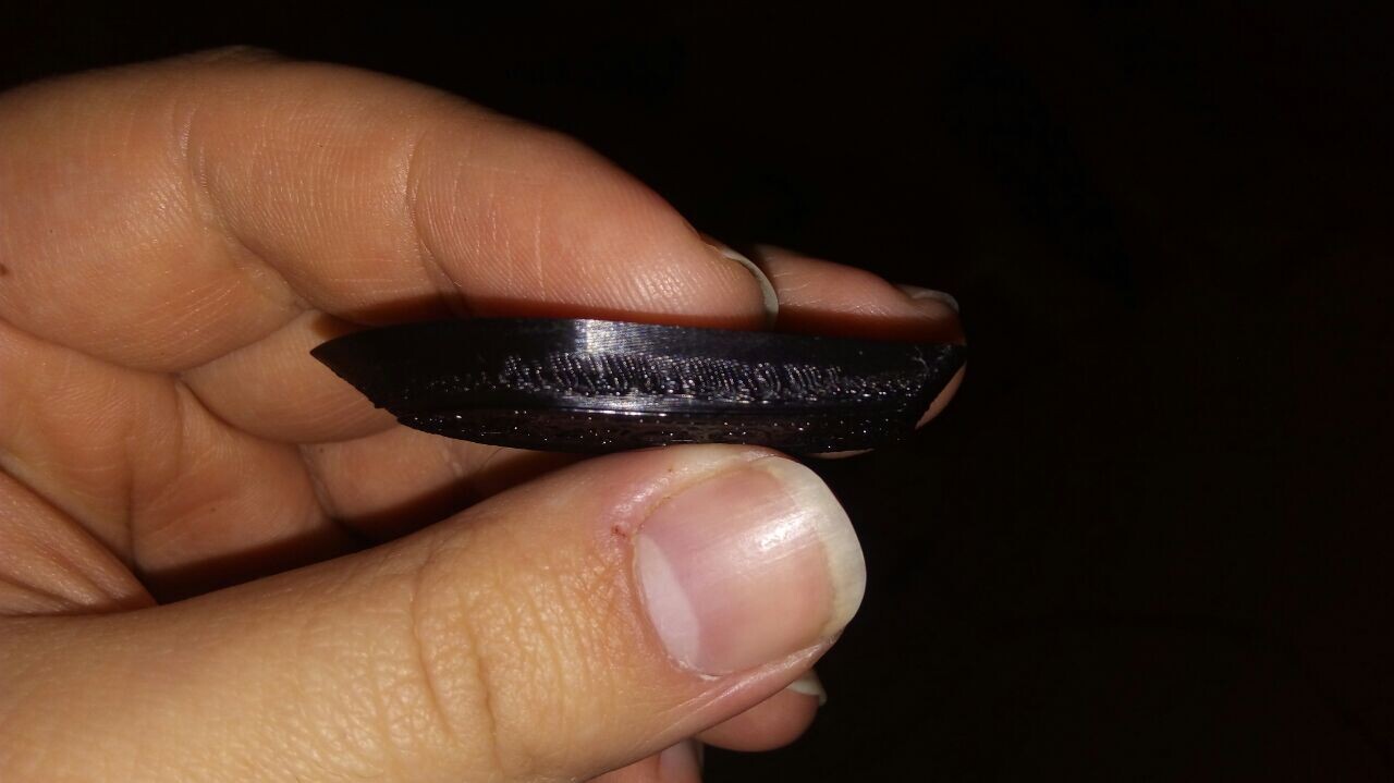 Как вы можете видеть, теперь принтер сначала идеально печатает первые слои, затем на слоях повыше засирает всё переэкструзией, и затем опять делает всё нормально. Как? Что? Откуда и почему? Я даже не знал что такое вообще возможно. Я с ним никаких экспериментов не проводил, только скорость повышал - понижал в Куре, и всё.