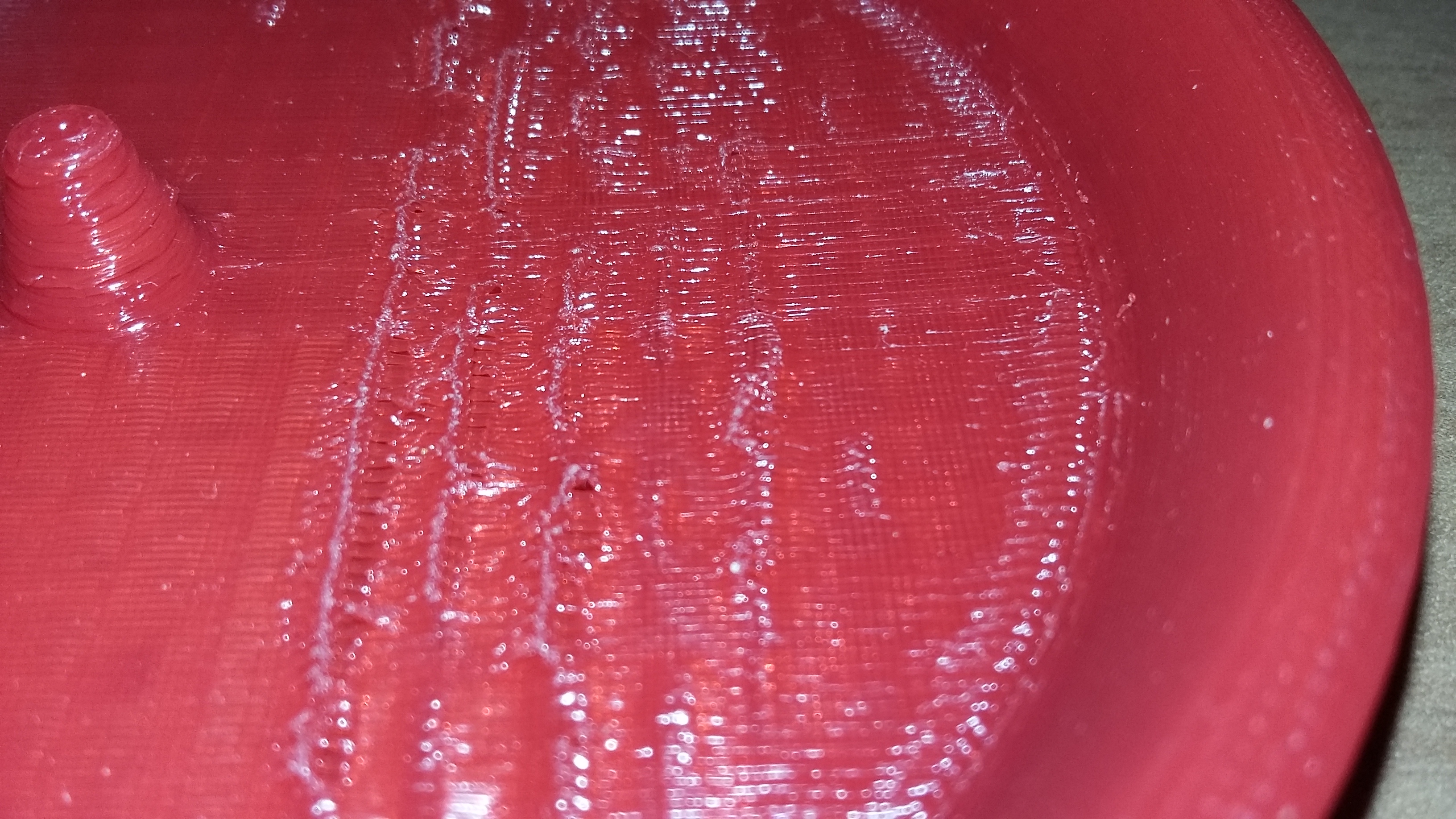 Печатал вот это из ватсона и внезапно на внешнем слое вот такоеНа фото непонятно, но это задиры. Аналогичные получаются на первом слое, когда зазор слишком маленький/ экструзия избыточная, типа вот такогоНо тут-то слой последний и нижняя часть ровная. Неравномерная толщина нити?