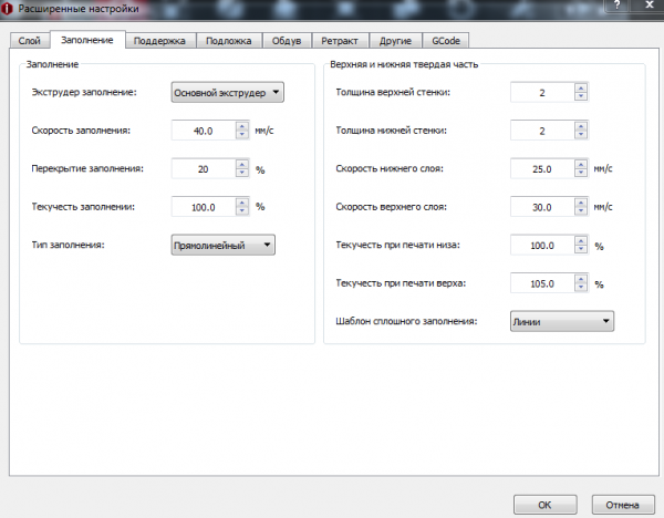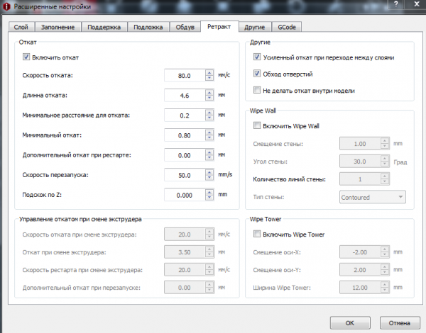 Настройкиhttps://gyazo.com/a67703138cb00079a1a2fdbc97d9412fhttps://gyazo.com/701cd492ce9be5fe7b1f13a2e6ac756ehttps://gyazo.com/9183de5a878a8dbb33b76b94b29f2f97https://gyazo.com/dab213760dd1cdd8a624388c8ef052ffПробовал разные настройки и с заполнением и отключением ретрака((