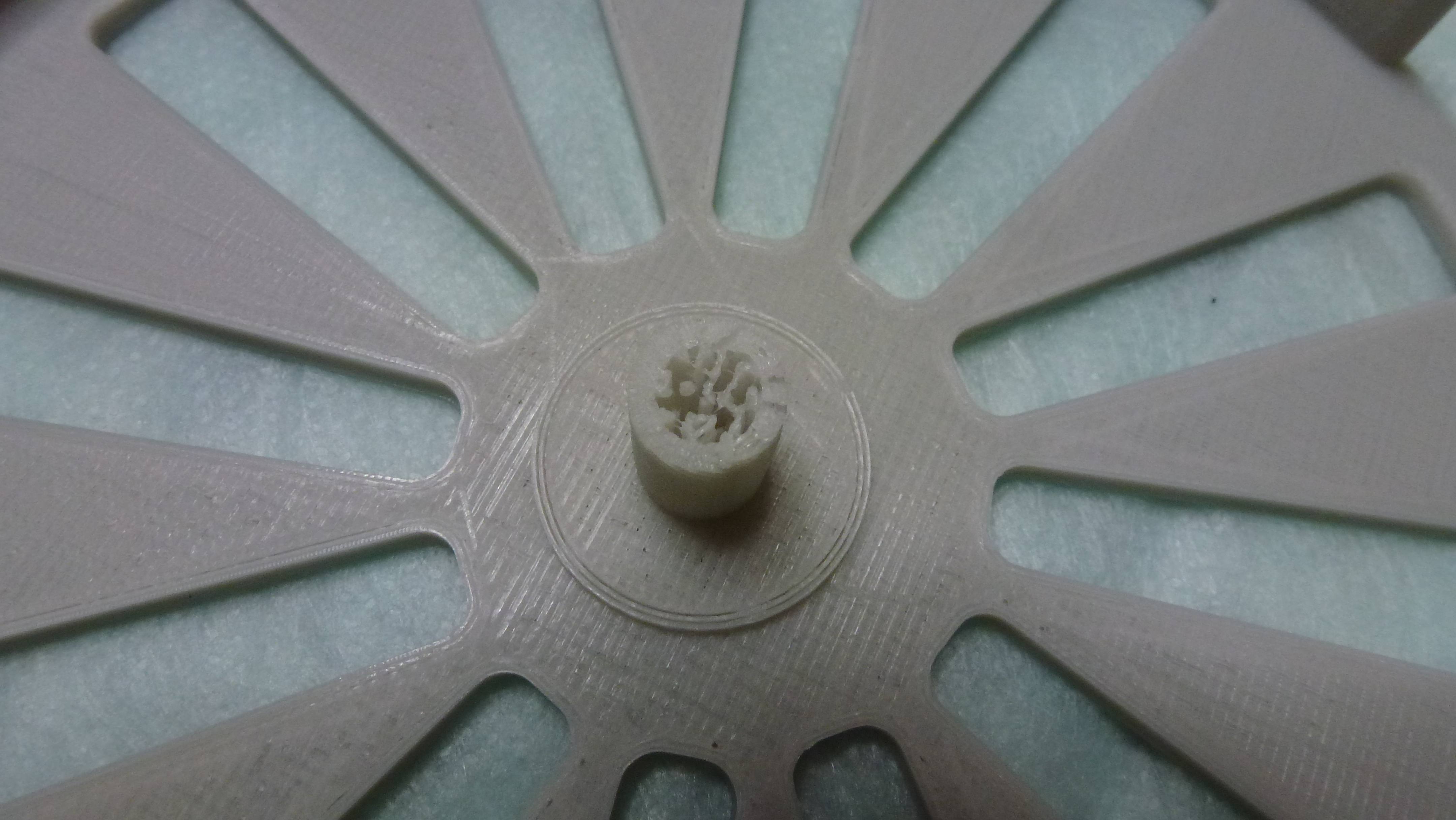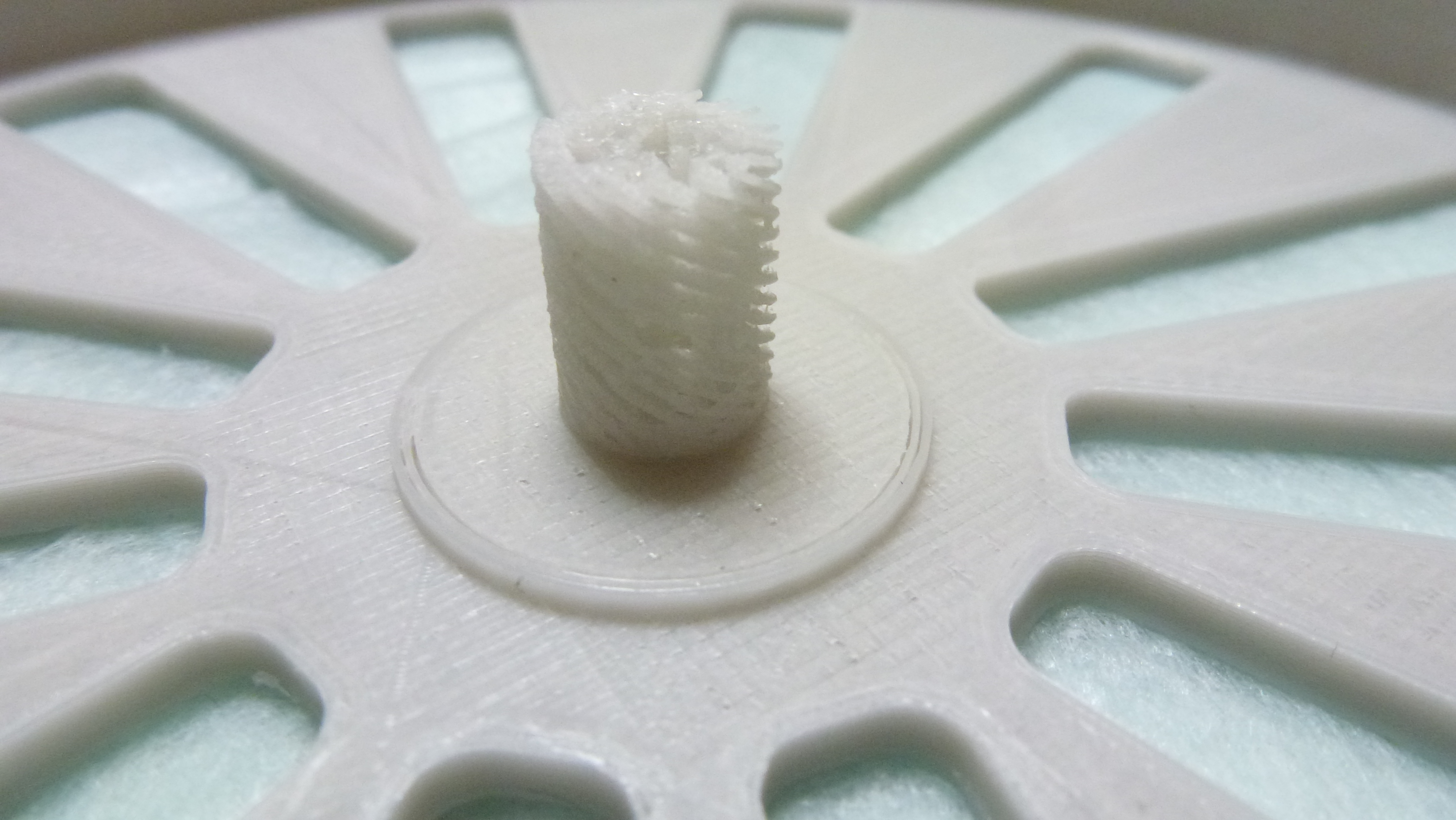 Нужна Ваша помощь. При печати технической детали, стенки и основание печать очень хорошо, даже прыщей нет, но центральный столб не припечатывает. Его диаметр всего 8 ммПринтер creality cr-10