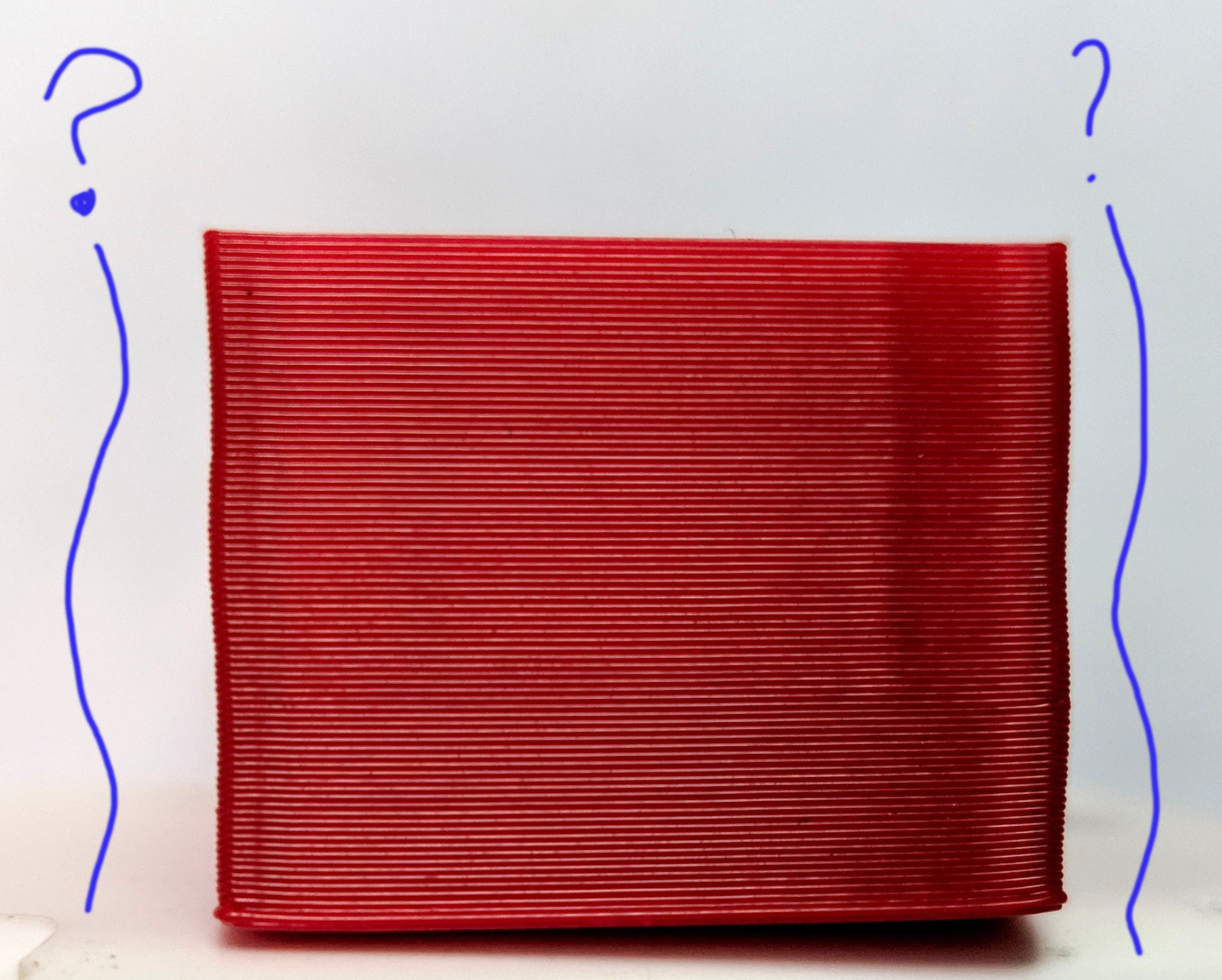 Слои ложатся ровно, заполнение нормальное. Но на боковых стенках, что по X, что по Y идут волны. Почти незаметные на глаз, но если присмотреться, то видно. И на ощупь ощущается на плоских поверхностях. Печатаю PLA, экструдер 210, стол 60, сопло 0.4, слой 0.2.