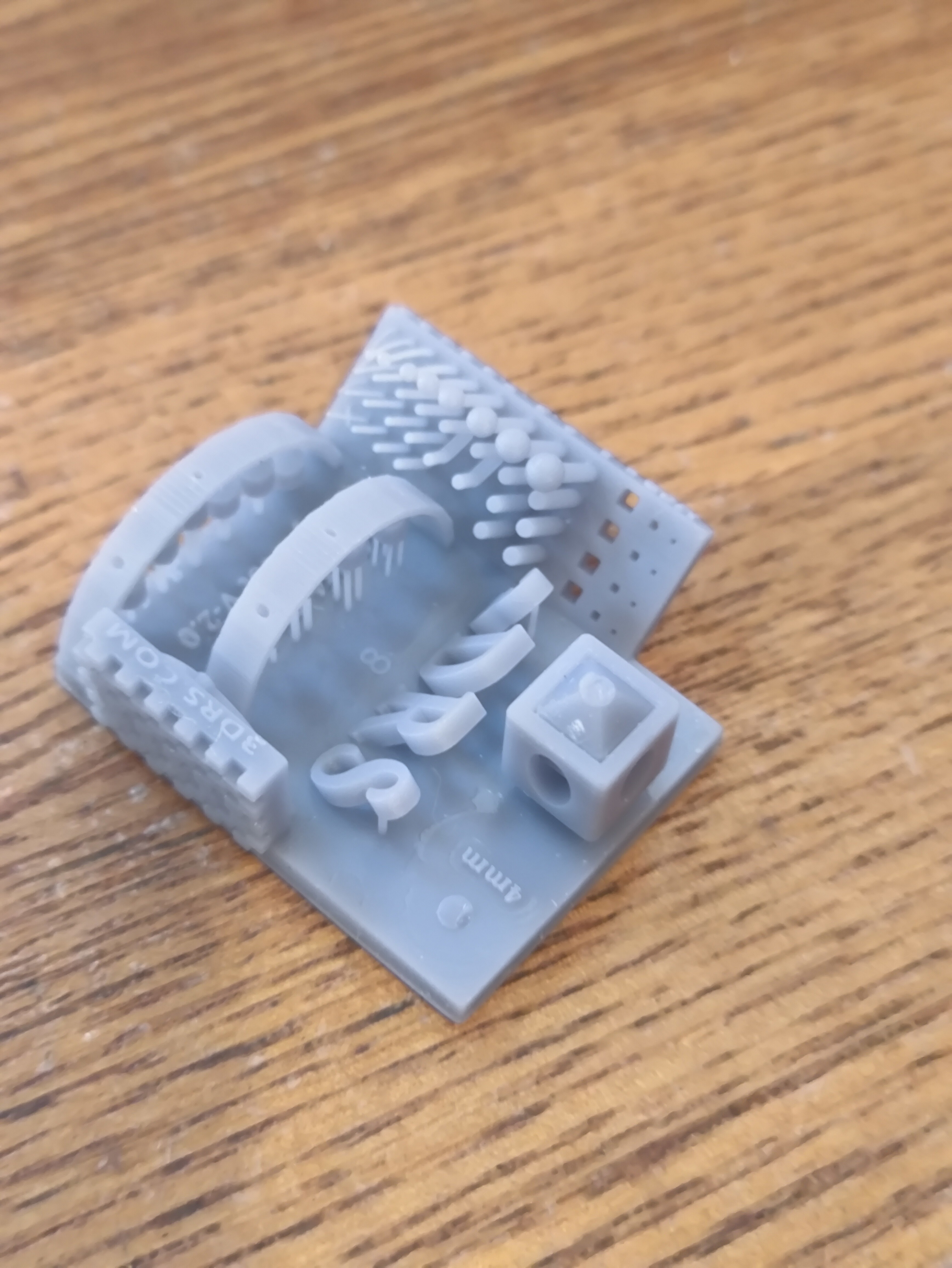 Ну и третий пока вопрос. Первое что все советуют делать после покупки новой смолы, это делать Exposure test. Опять же перечитал кучу статей, посмотрел с десяток видео. Разобрался с R_E_R_F. Отправил тест на печать с начальной засветкой в 1с. И практически не увидел разницы в качестве печати. Да совсем мелкие различия есть, но после прочтения статей и просмотра видосов сложилось впечатление, что отклонение даже в 0.1с от оптимального времени засветки неизбежно приведет к тотальному фейлу печати. А на практике разница мизерная. Фотки тестов я приложу, но там и вживую сложно различия найти, а на фото с телефона их видно еще меньше.Засвет 1с.