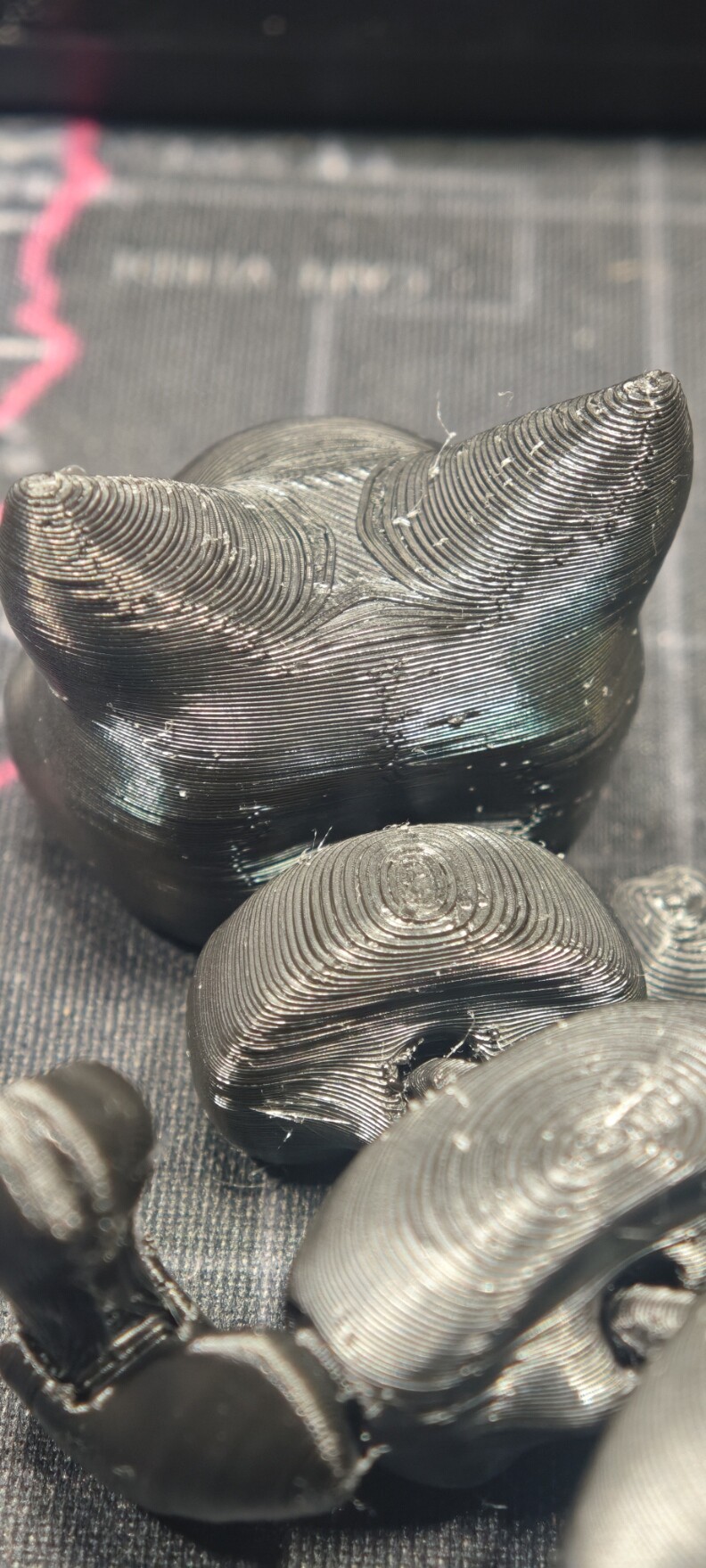 В связи с чем могут не пропечатываться мелкие промежутки в деталях и появляться артефакты, причём с одной стороны каждой детали? Их можно заметить на задней стороне головы кошки и над хвостом.В связи с чем могут мыть такие артефакты на изделии?