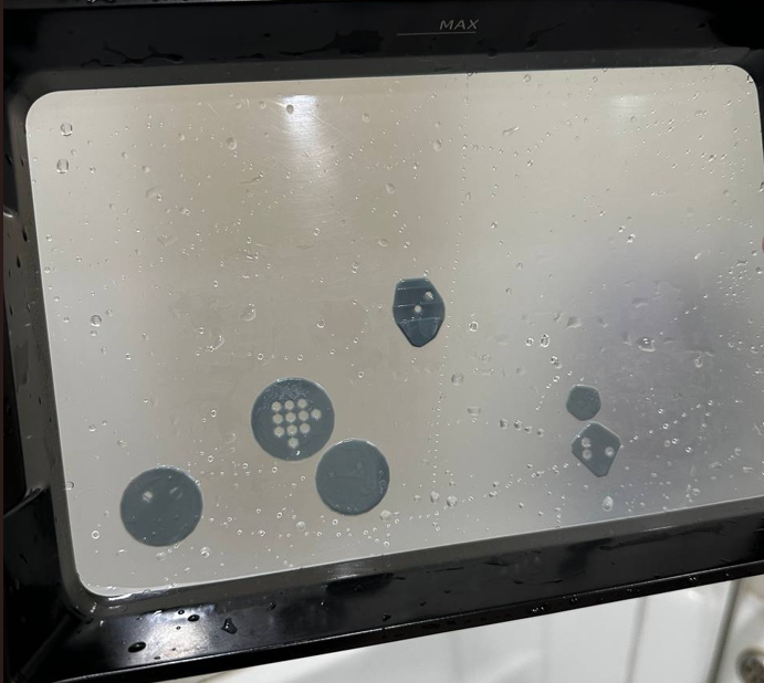 Решил я достать с полки свой принтер и впервые за 1.5 месяца что нибудь напечатать.Обновил приложение, всё протер от пыли и залил новую смолу.Первая печать прошла почти хорошо, только пара деталей остались на дне ванны, не допечатав даже первые нижние слои, как я понял.