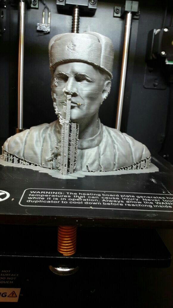 Намедни распечатал бюст, на выходе получилось вот что. Первым делом не нравится слишком уж заметный шаг печати, да и фурнитура на модели слизалась.