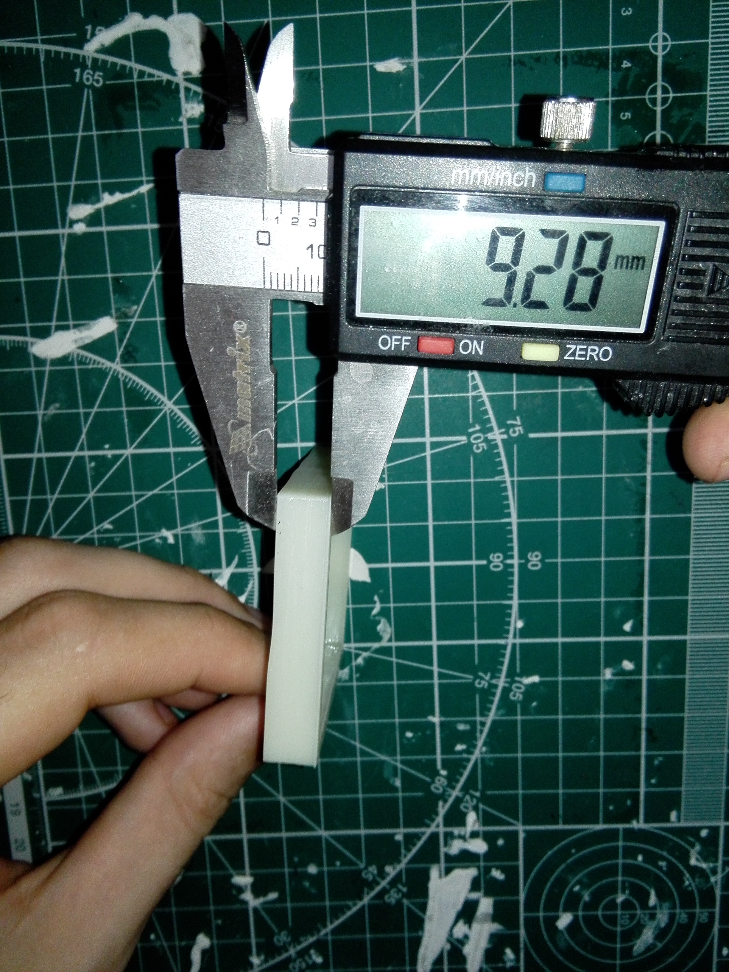 Часть модели которая ближе к ШВП получается выше (9,8 мм) чем та, которая ближе к краю принтера (9,28 мм):Подъем/опускание платформа с пустой ванночкой (тут все работает как надо, платформа поднимается/опускается параллельно ванночки):