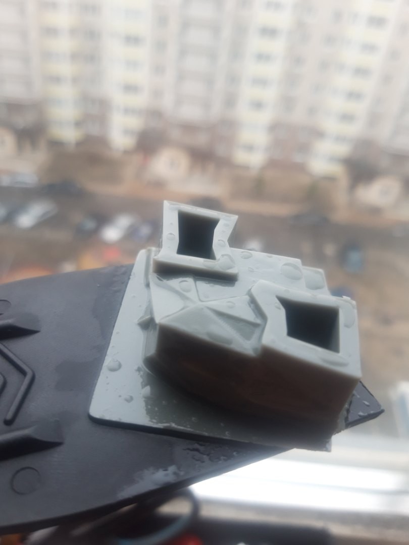С утра 86 процентов, еще печатает, каретка ходит вверх-вниз, но глянув в окошко, заметил, что башня 'оборвалась' в каком то месте и поднялась с площадкой вверх. Сначала подумал, что какой-то слой не схватился, но слил полимер, а ванночка чистая.Все детальки файла с высотой меньше места обрыва отпечатались.