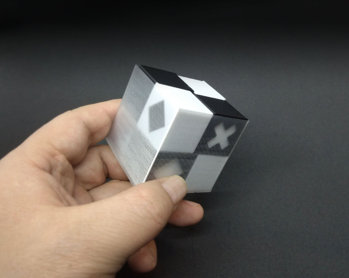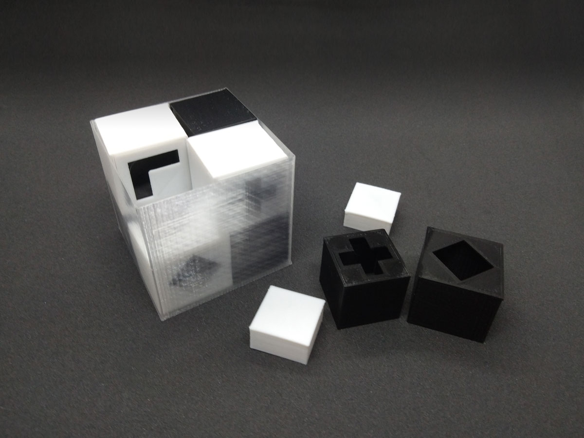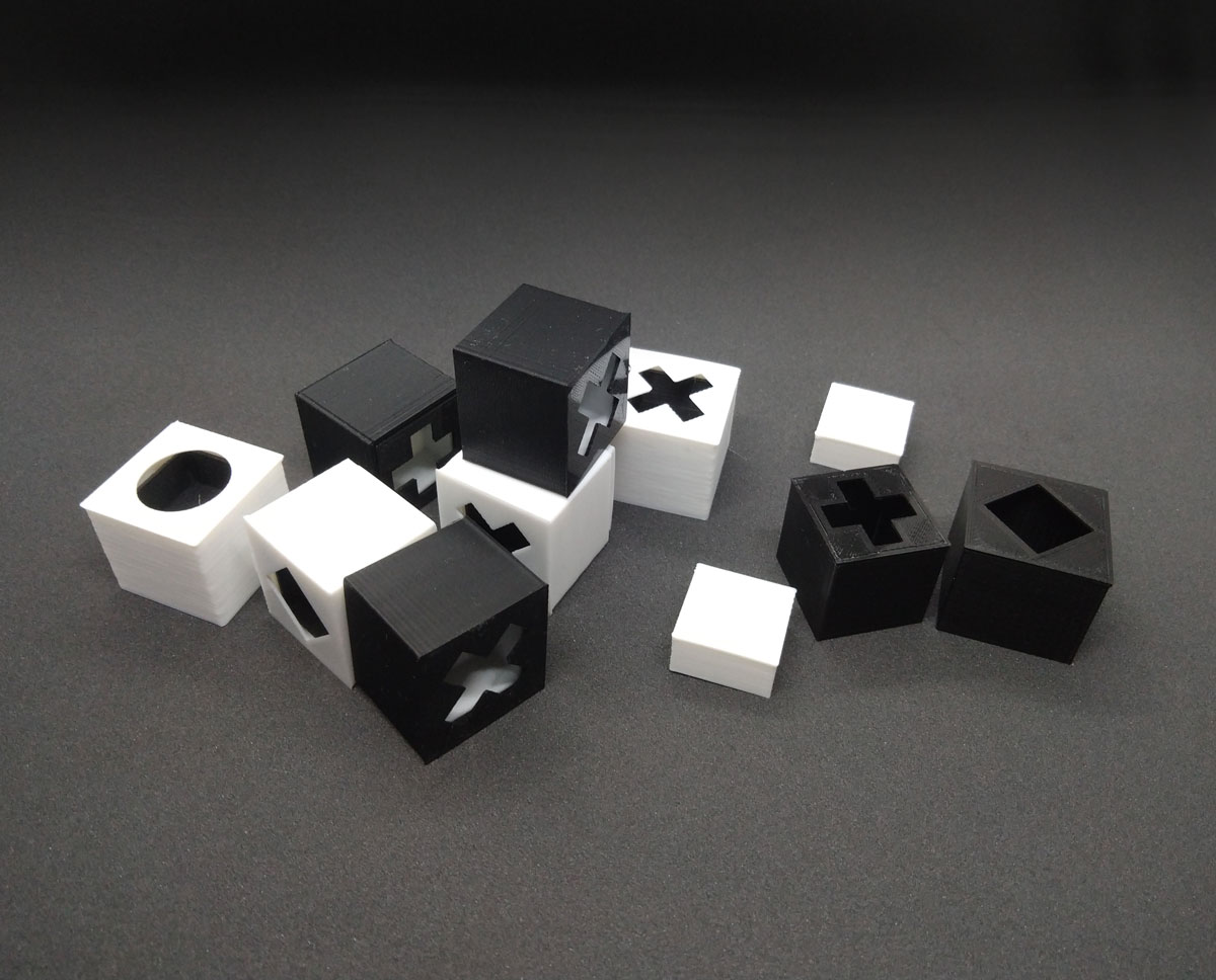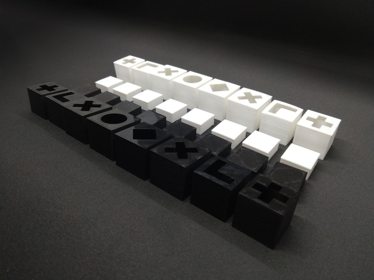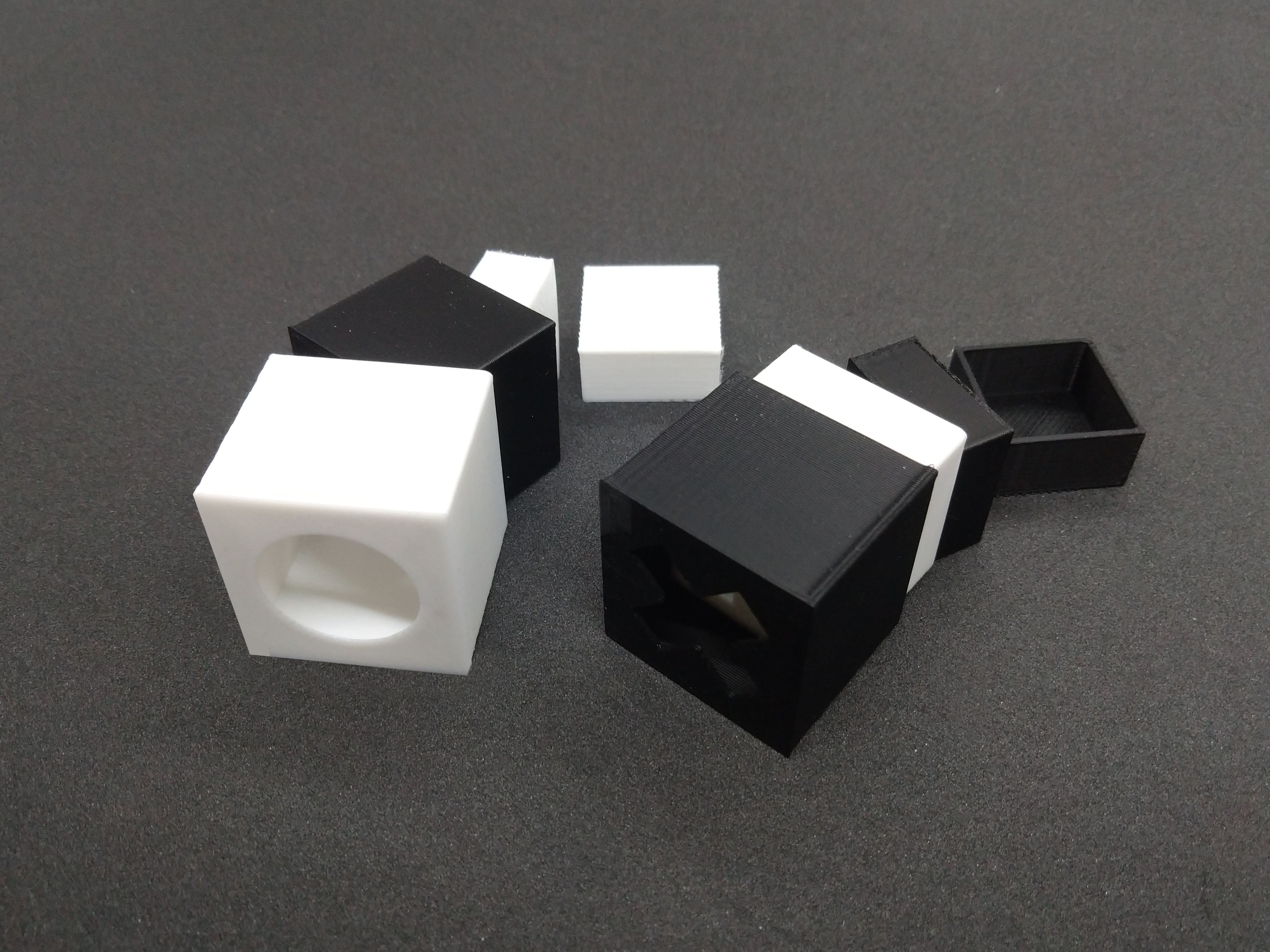 Предыдущий был сделан по мотивам шахмат Lanier Graham, а этот развивает известный проект Йозефа Хартвига (как и сама работа Ланье). И здесь, и в первой работе, в отличие от источника, шахматные фигуры размещаются по принципу матрешки — одна внутри другой. Все 32 фигуры поместились в совсем небольшую коробку — 5х5 см.Я сохранил базовые обозначения фигур шахмат Баухауз, которые передают геометрию их движения. Например, отверстие в форме угла у коня или диагональный крест у слона. Для обозначения ладьи я решил использовать прямой крест.Как в коробочку поместить доску я еще не придумал:)