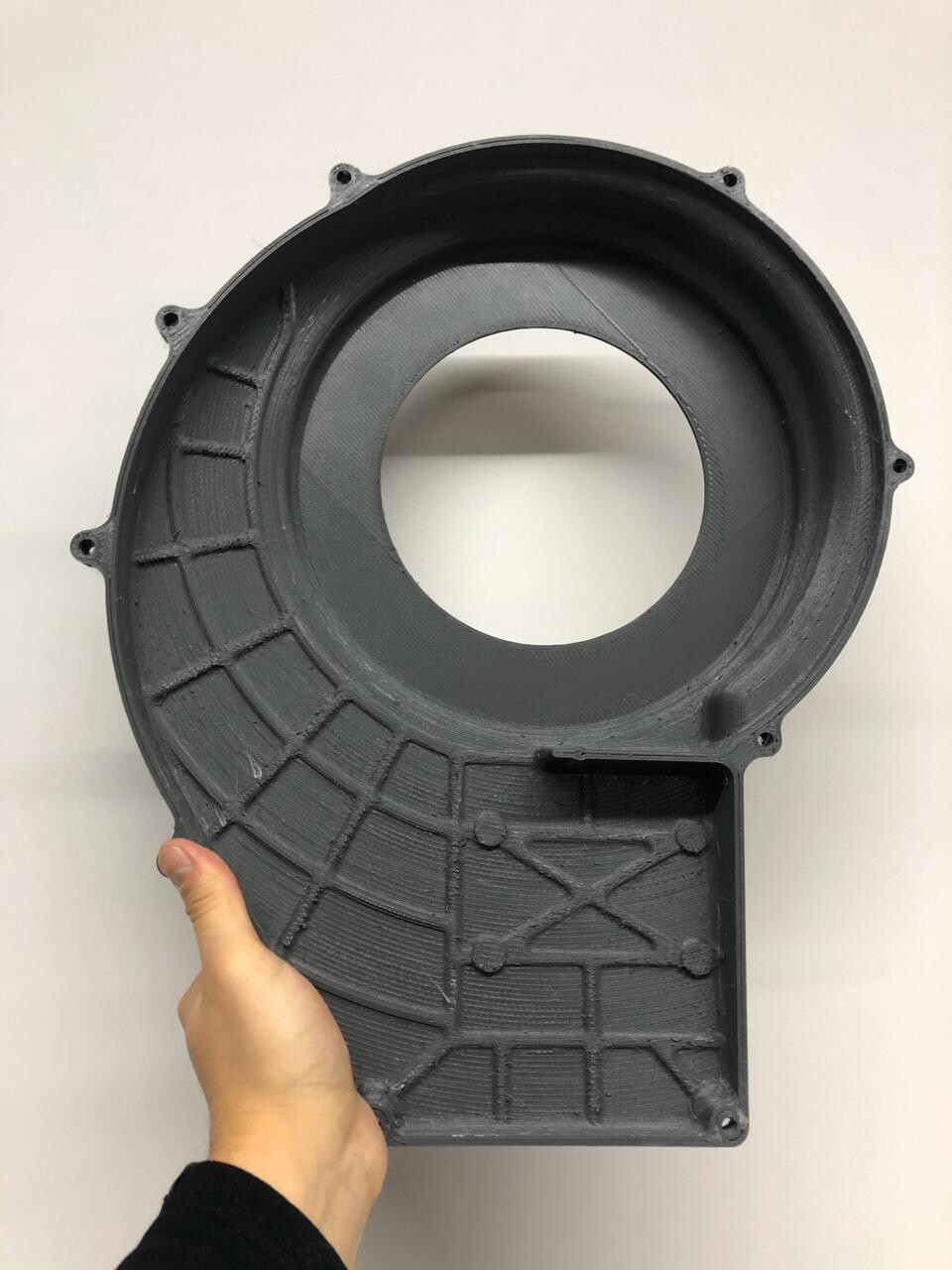 Напечатали на самосборном 3D-принтере кожух вентилятора на промышленную установку.