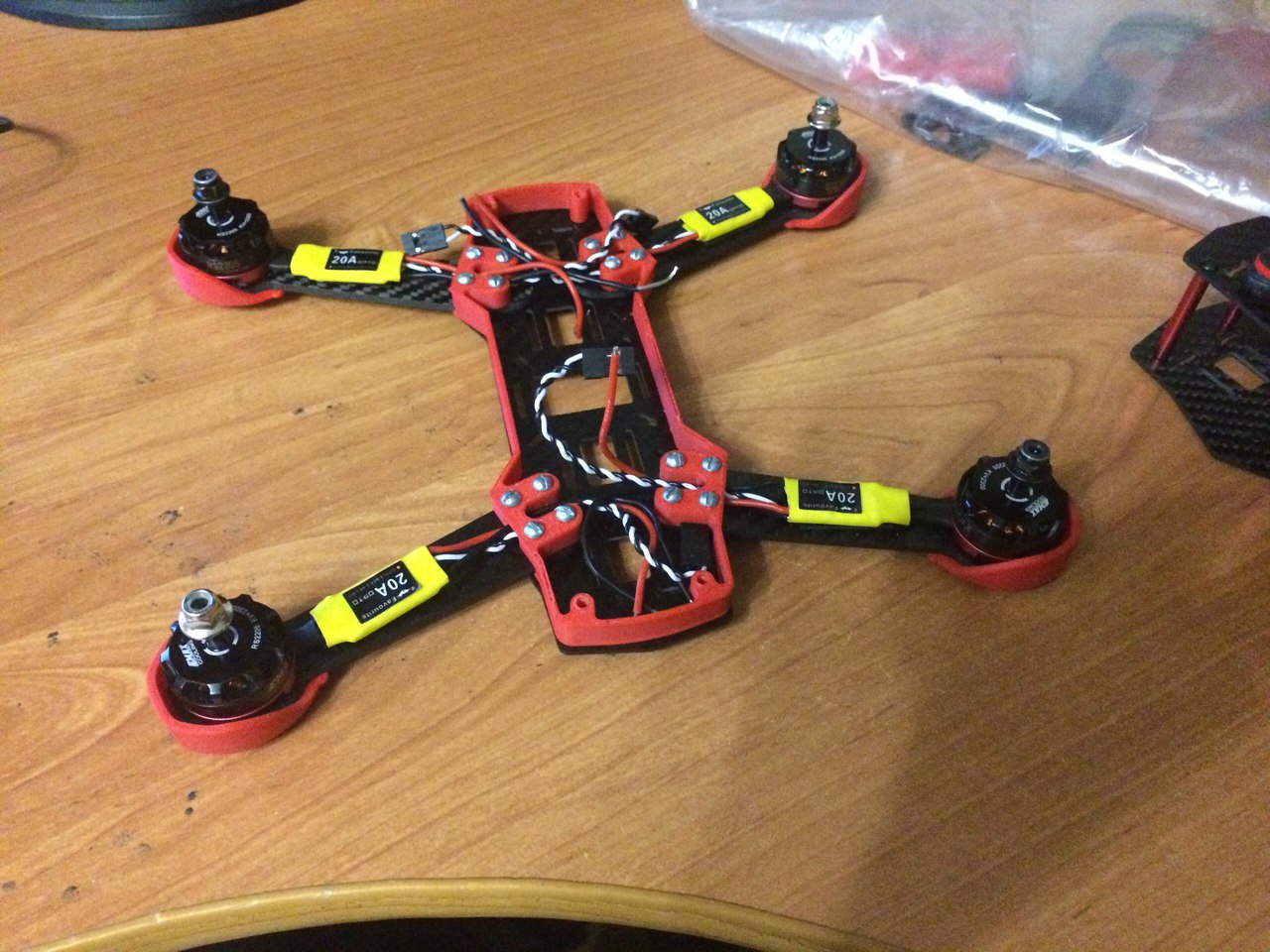 Это гоночный квадрокоптер на базе рамы zmr250, применяется для гонок или фристайла. Благодаря напечатанному крепежу есть возможность крепить на него пишущую камеру. Отличительные особенности: небольшая масса, высокая тяговооруженность, быстрый, относительная прочность.