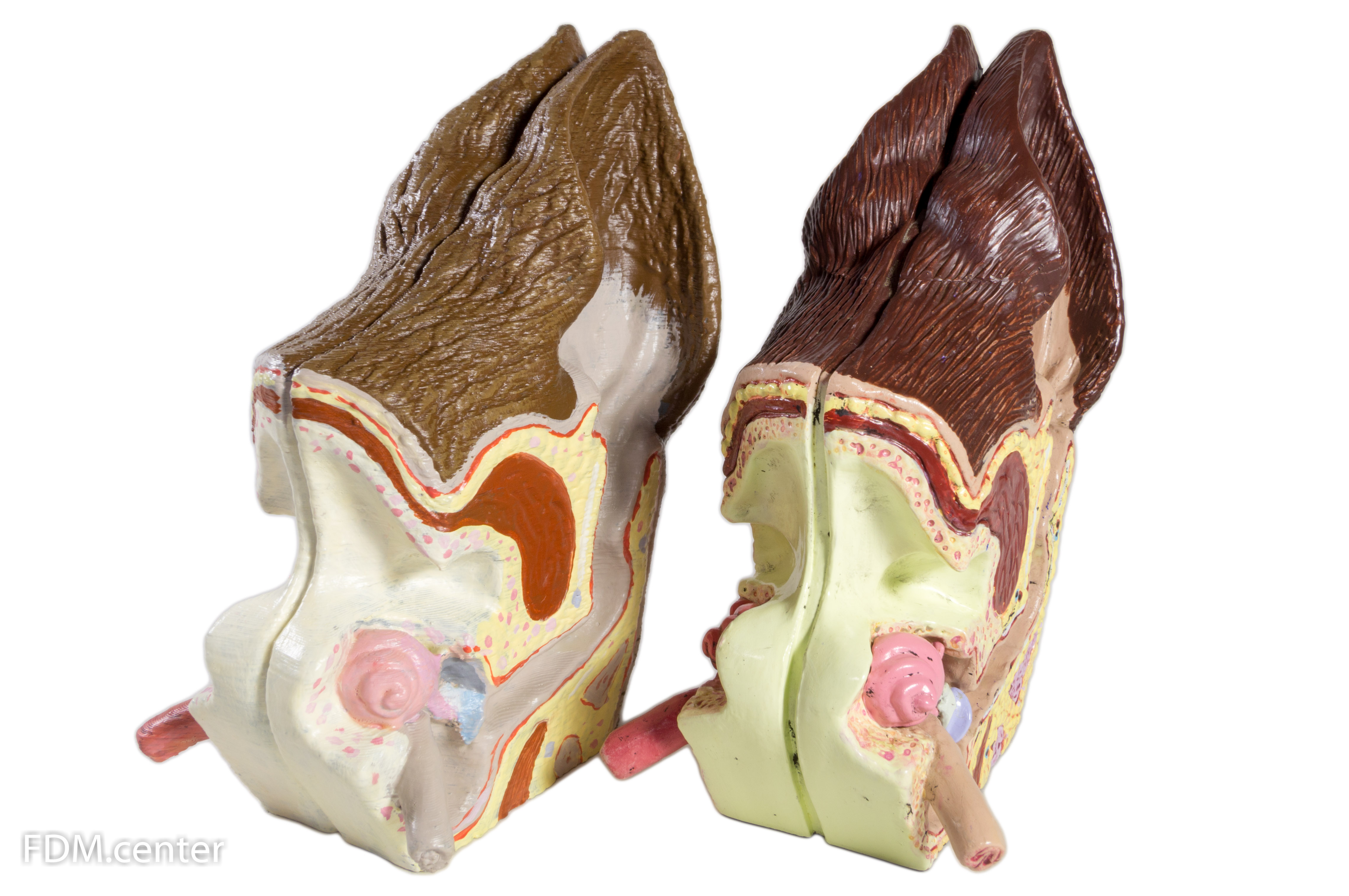 От ветеринарной клиники был получен заказ на изготовления анатомических моделей органов животных. для образца были даны ветеринарные пособия заводского изготовления. С помощью фотограмметрического сканирования были получены 3D модели. Отпечатанно на MZ3D 360, PLA, сопло 0,5, слой 0,2. Грунт из балончика по пластику. Покраска акриловыми красками. В финале покрыто бесцветным лаком.