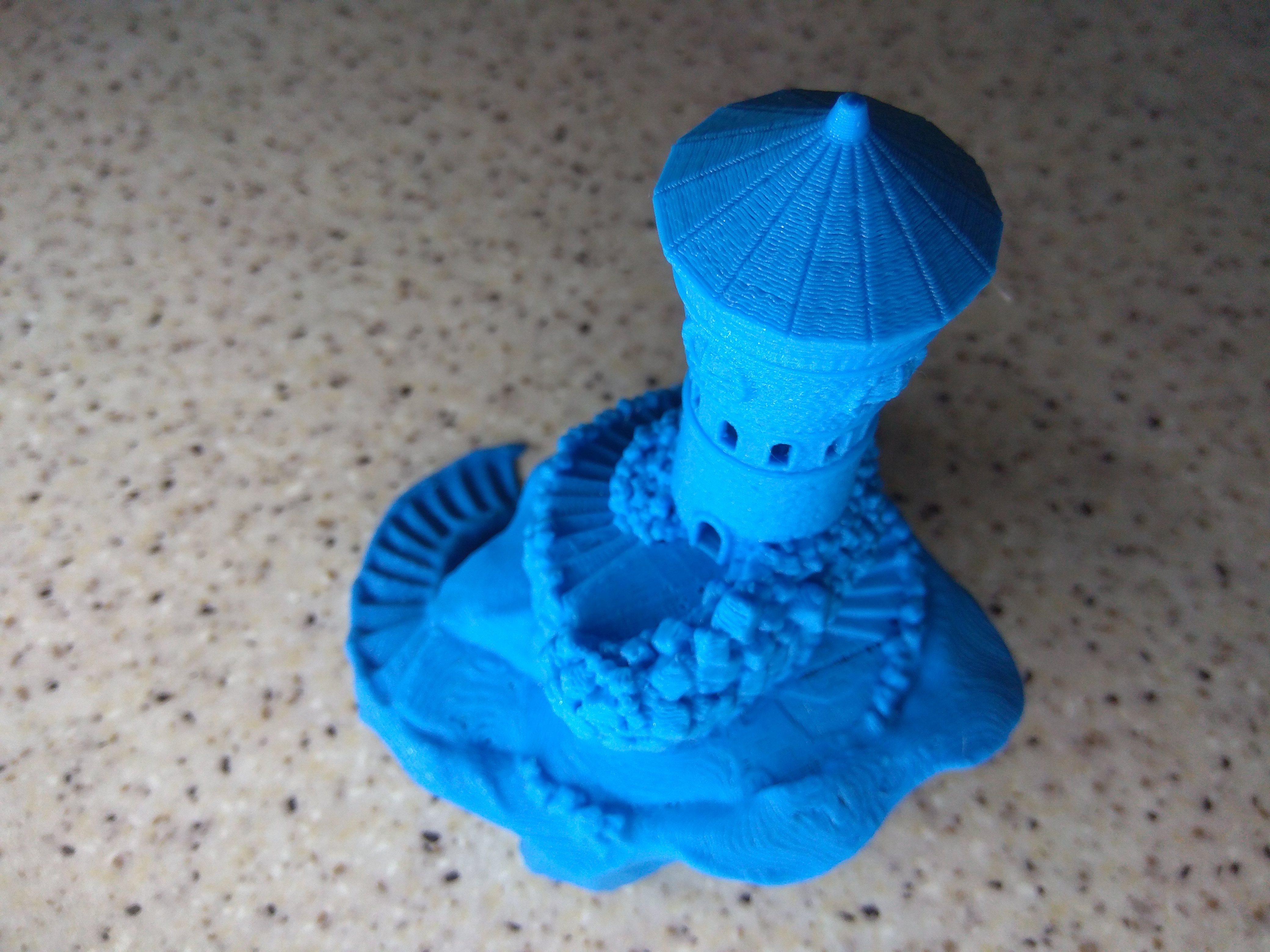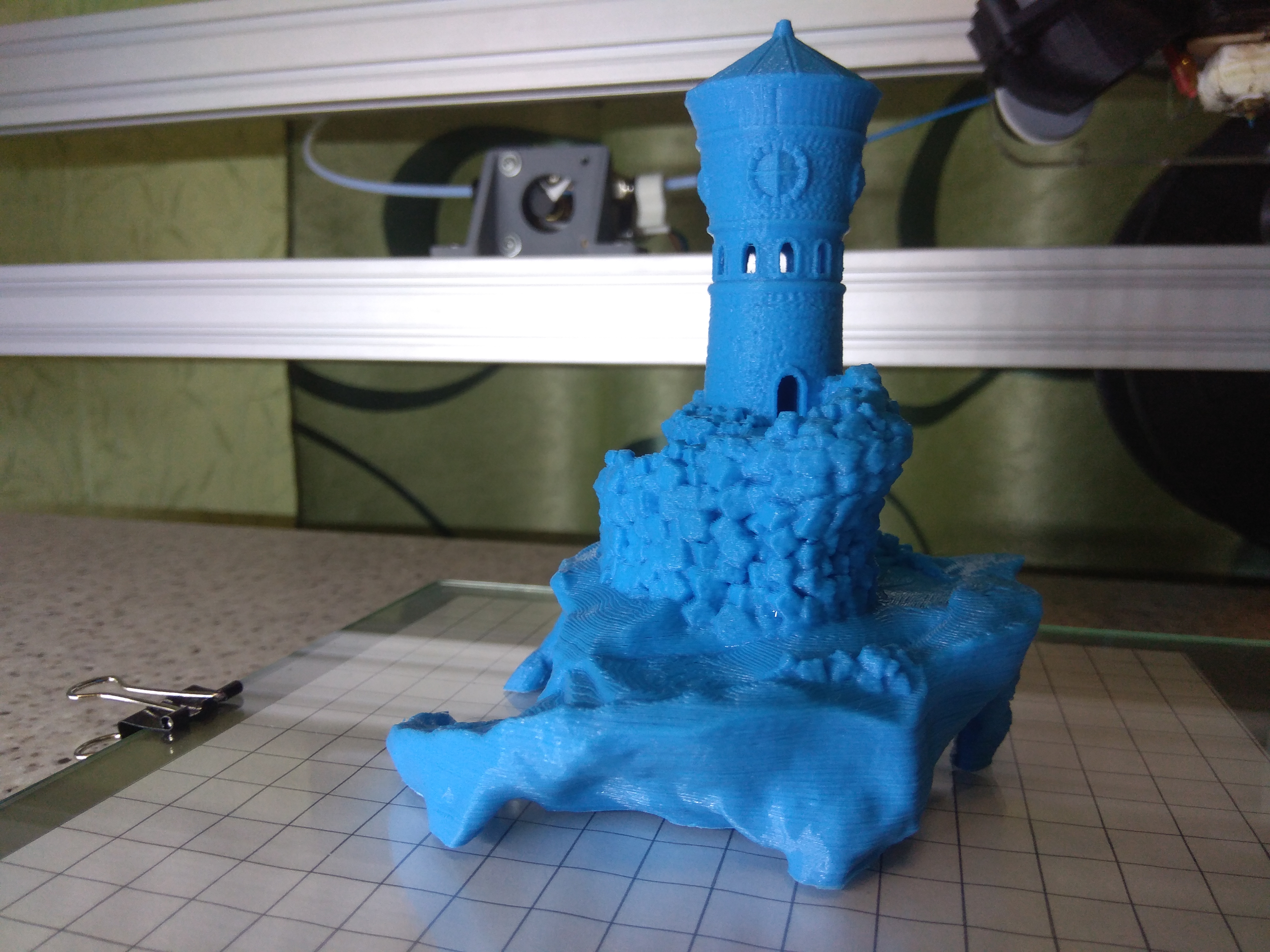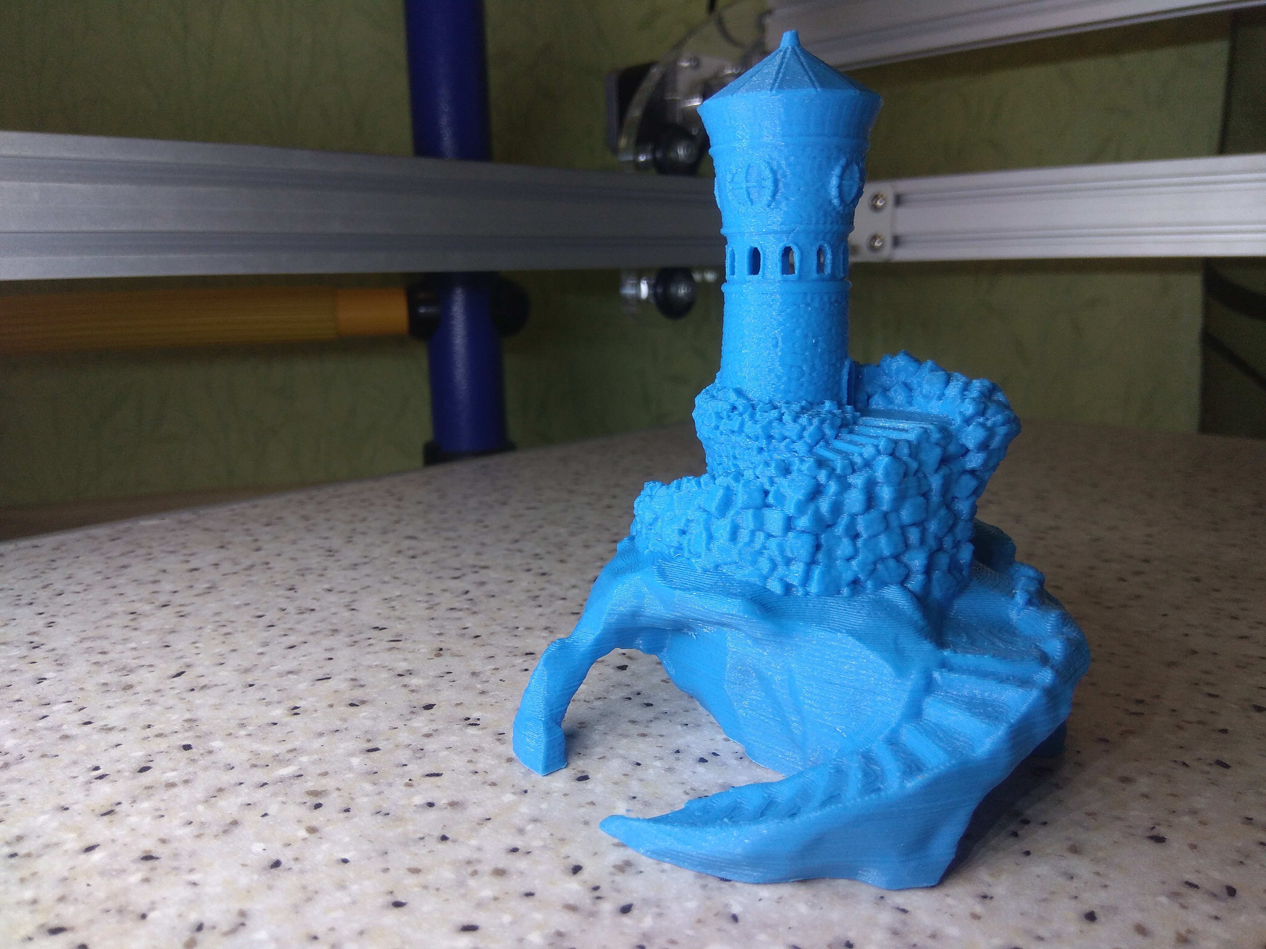 высота готовой модели 115мм (от исходной половина отсечена в слайсере)Модель не могу найти с которой печаал верхушку (файл называется Tower remake from Kijai), но нашел еще короче модель https://www.thingiverse.com/thing:2574499