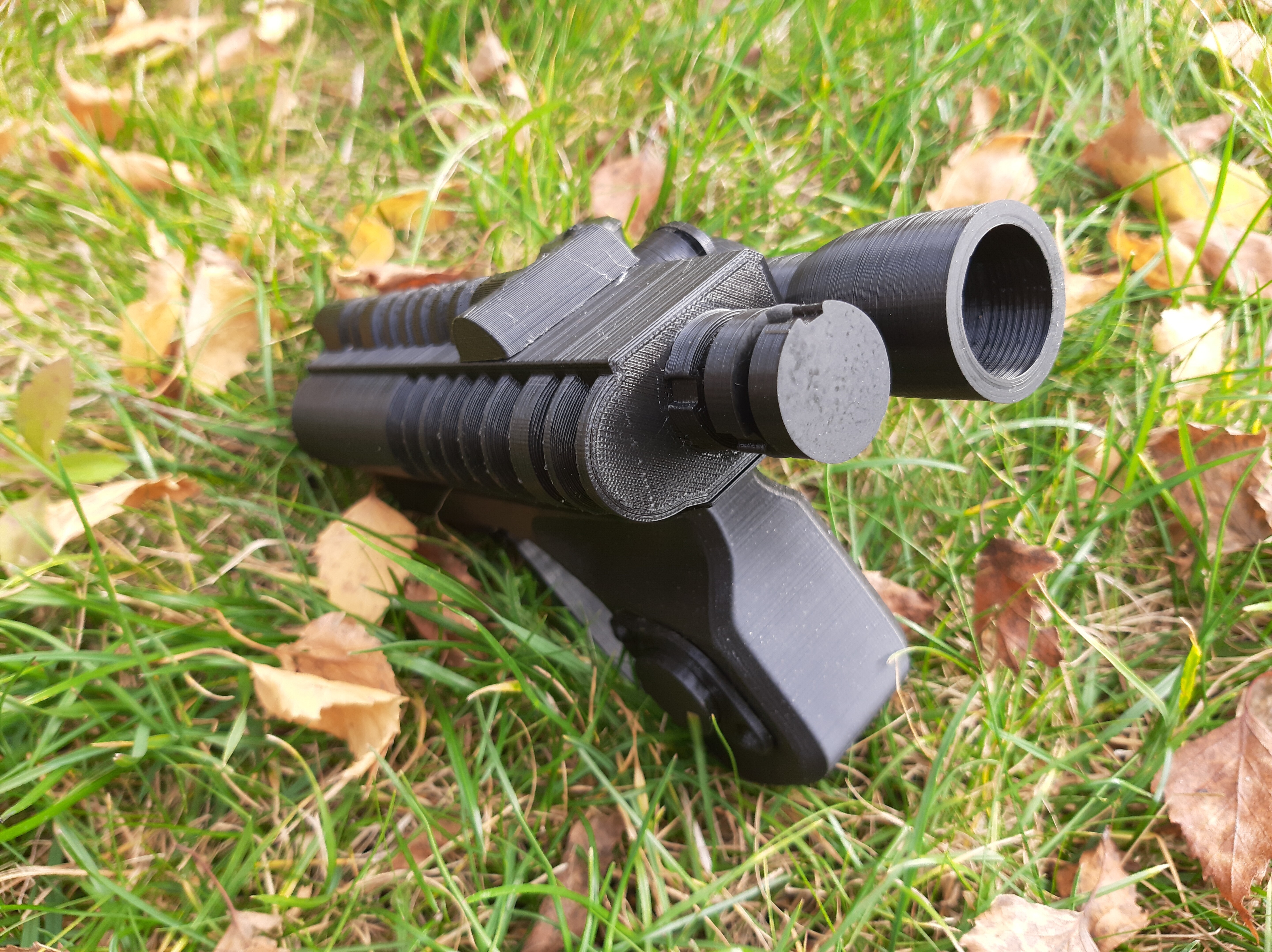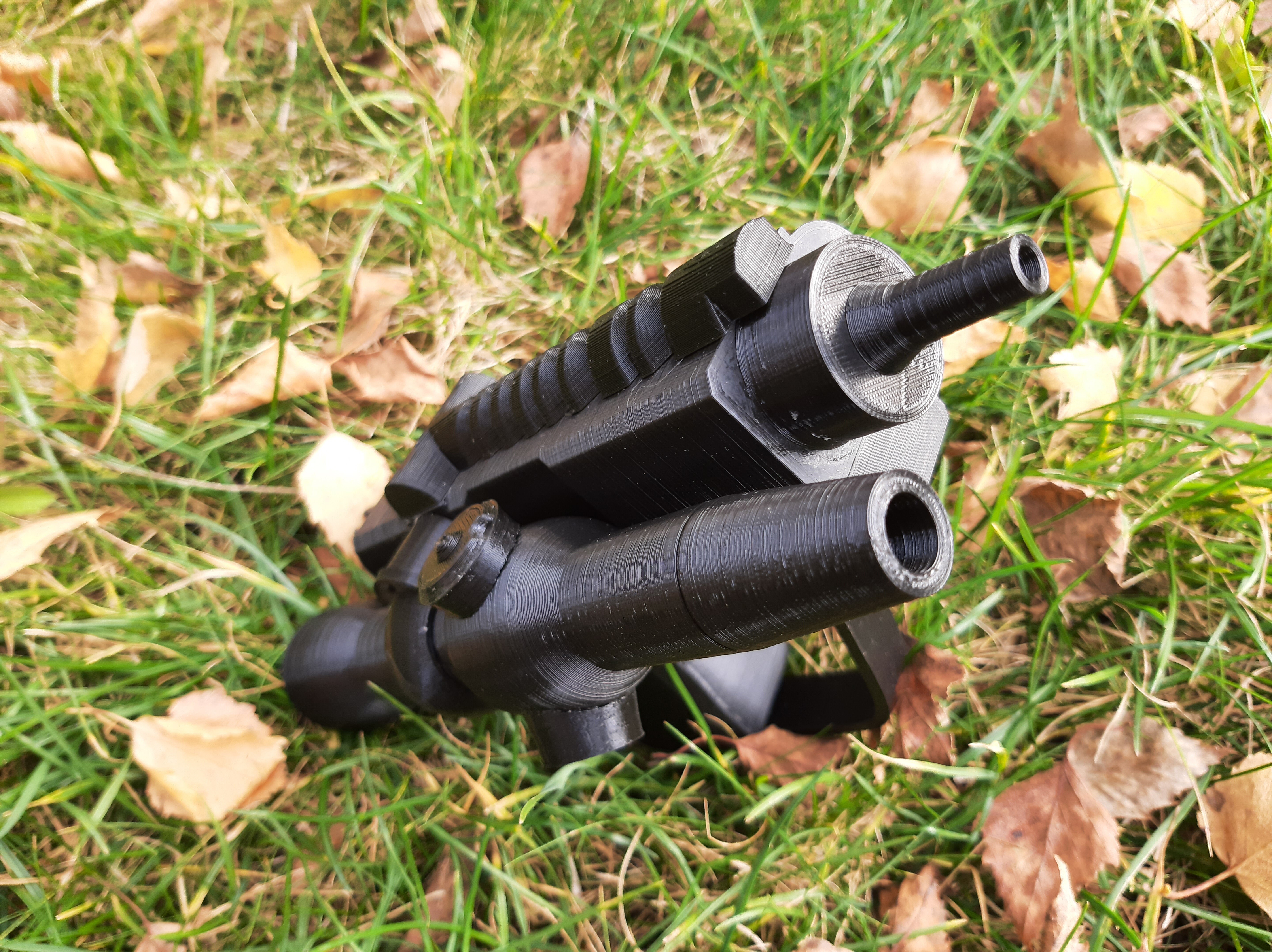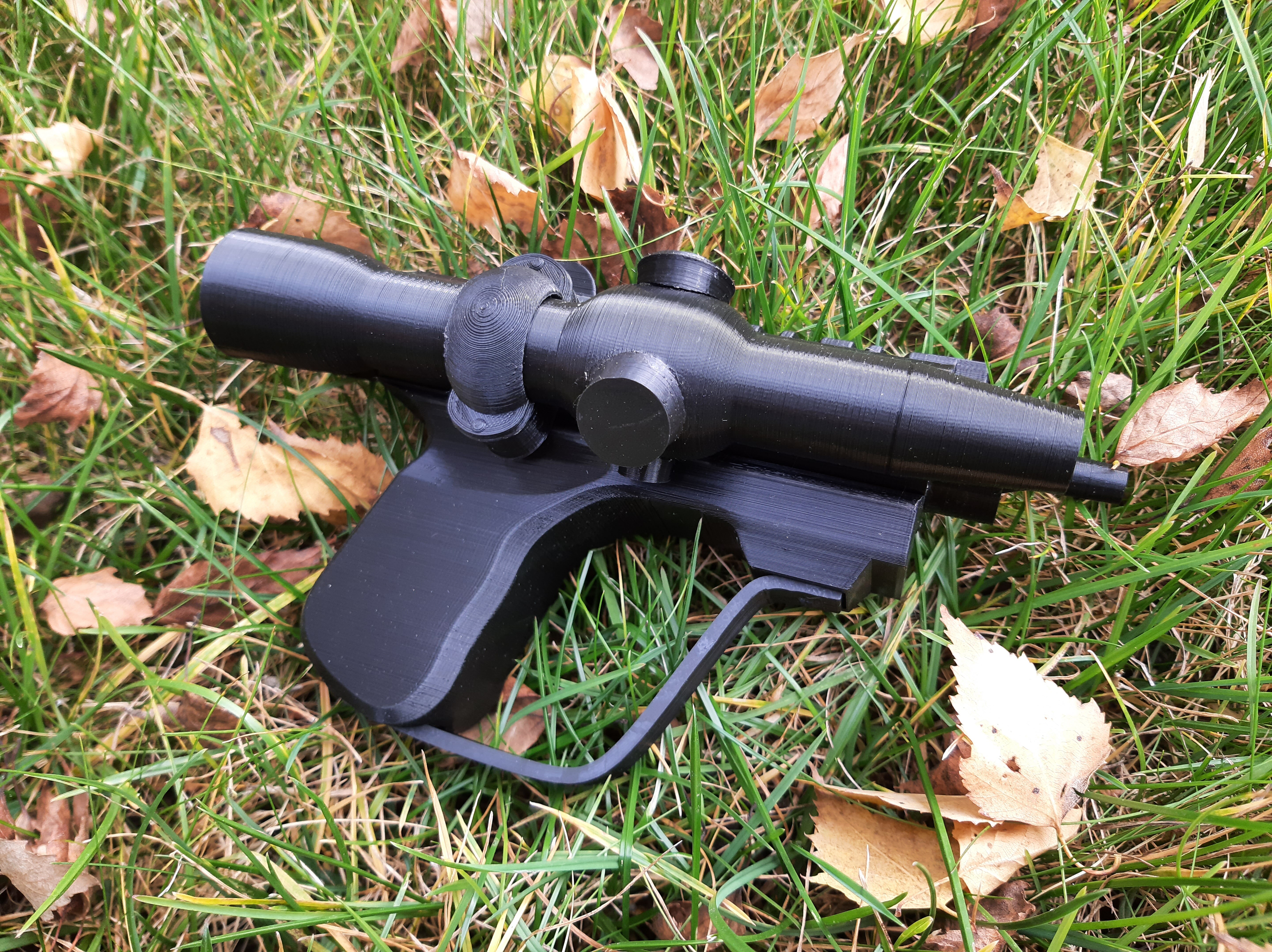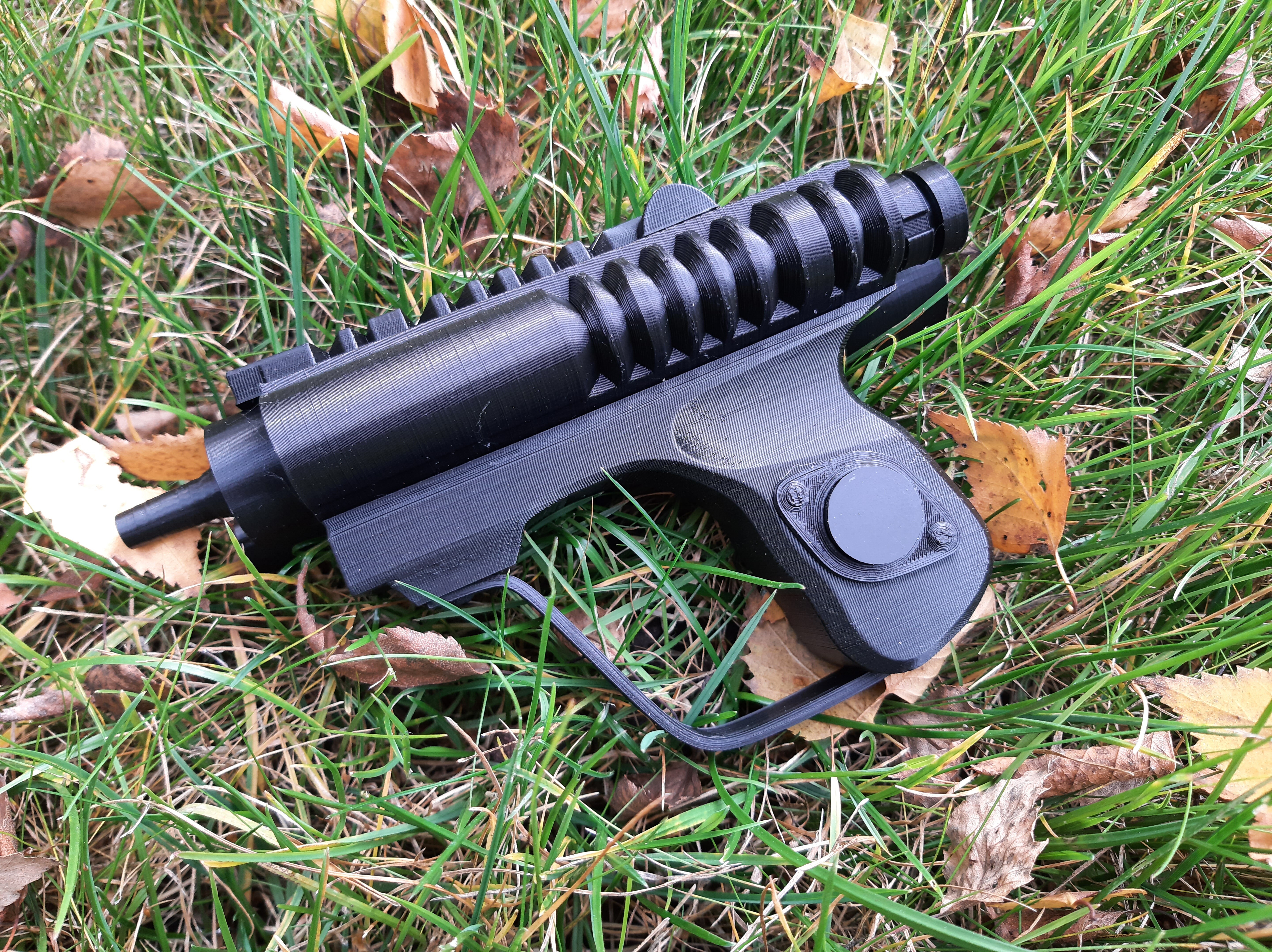 Печаталось всё из PLA пластика (надеюсь не пожалею о выборе, все мы знаем, как он хорошо шлифуется...), состоит из 18 отдельных деталей, комфортно печатается в 3 захода на одном принтере (Flying Bear Ghost 4s), весит мало, прикольная пукалка в общем.