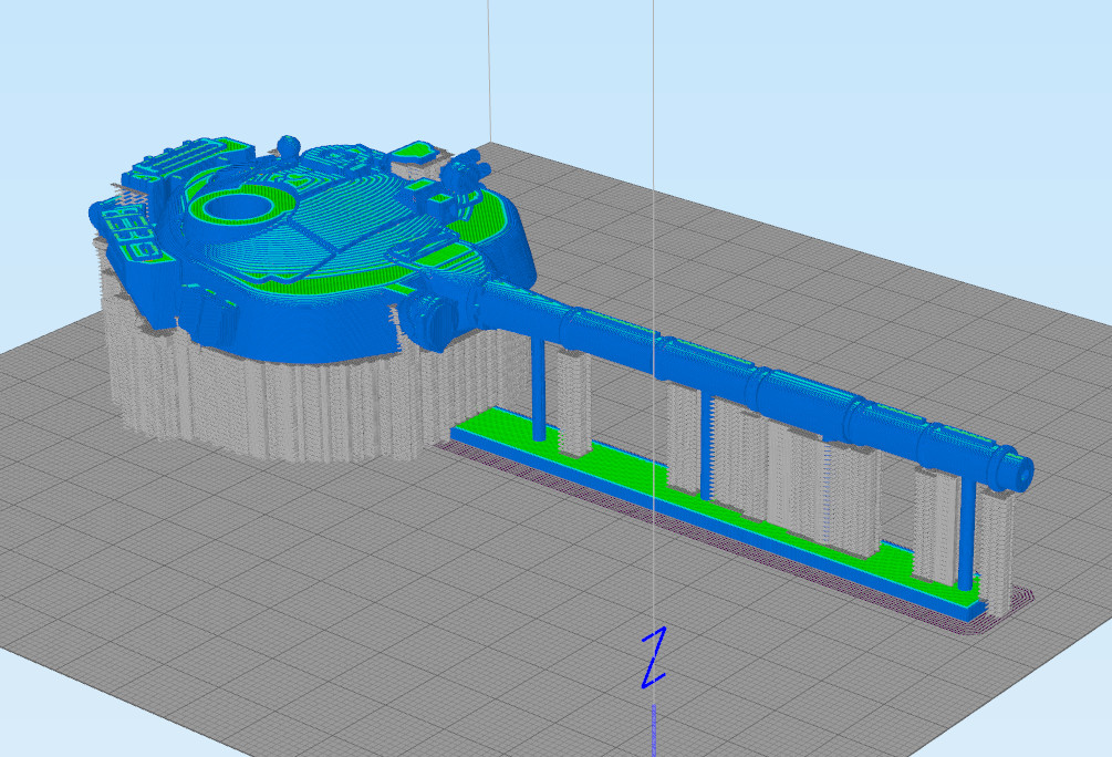 После небольших тестов пластика, подготовил модель в слайсере. Печатать конечно нужно с поддержками.Сопло 0.4 слой 0.17. Пластик показал себя с лучшей стороны.