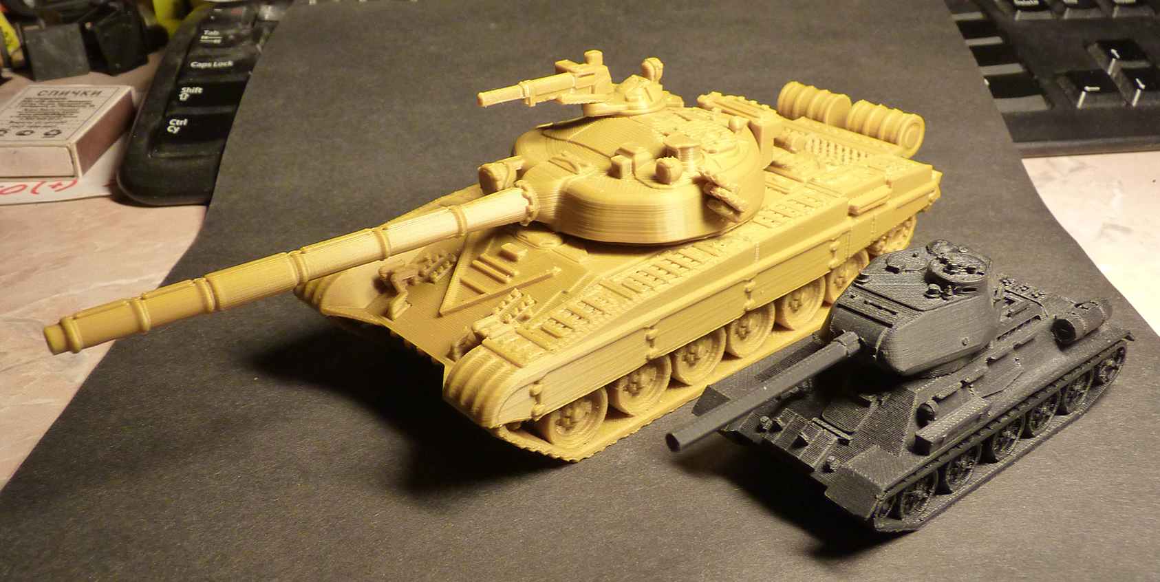 Не так давно попробовал снова печатать танки.Первые пробы были напечатаны в масштабе 1:72. Но как мы знаем FDM технология не даёт хороших поверхностей на мелких деталях, а у модели танка, мелких деталей очень много. И при близком рассмотрении, модель выглядит не очень красиво.