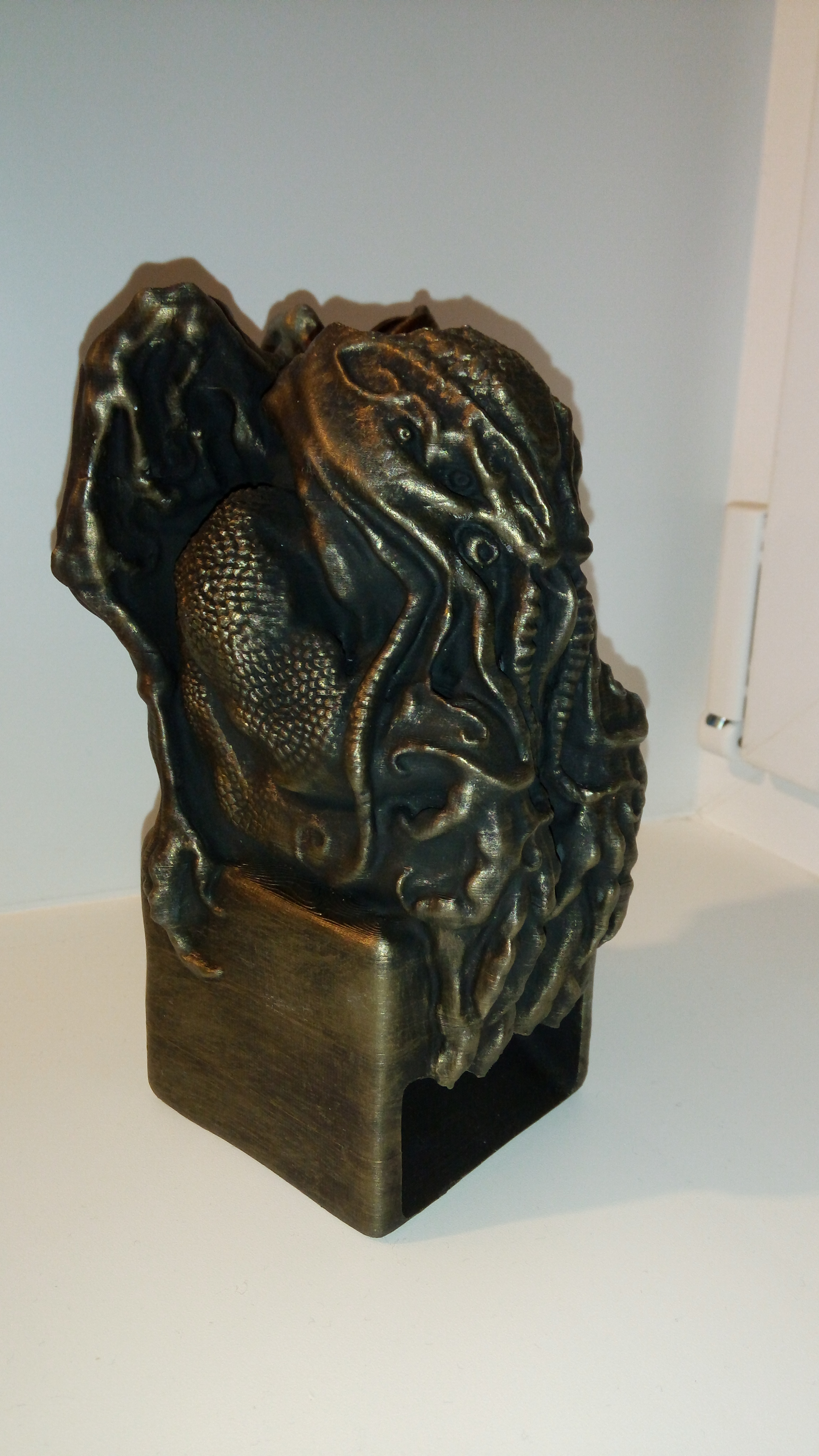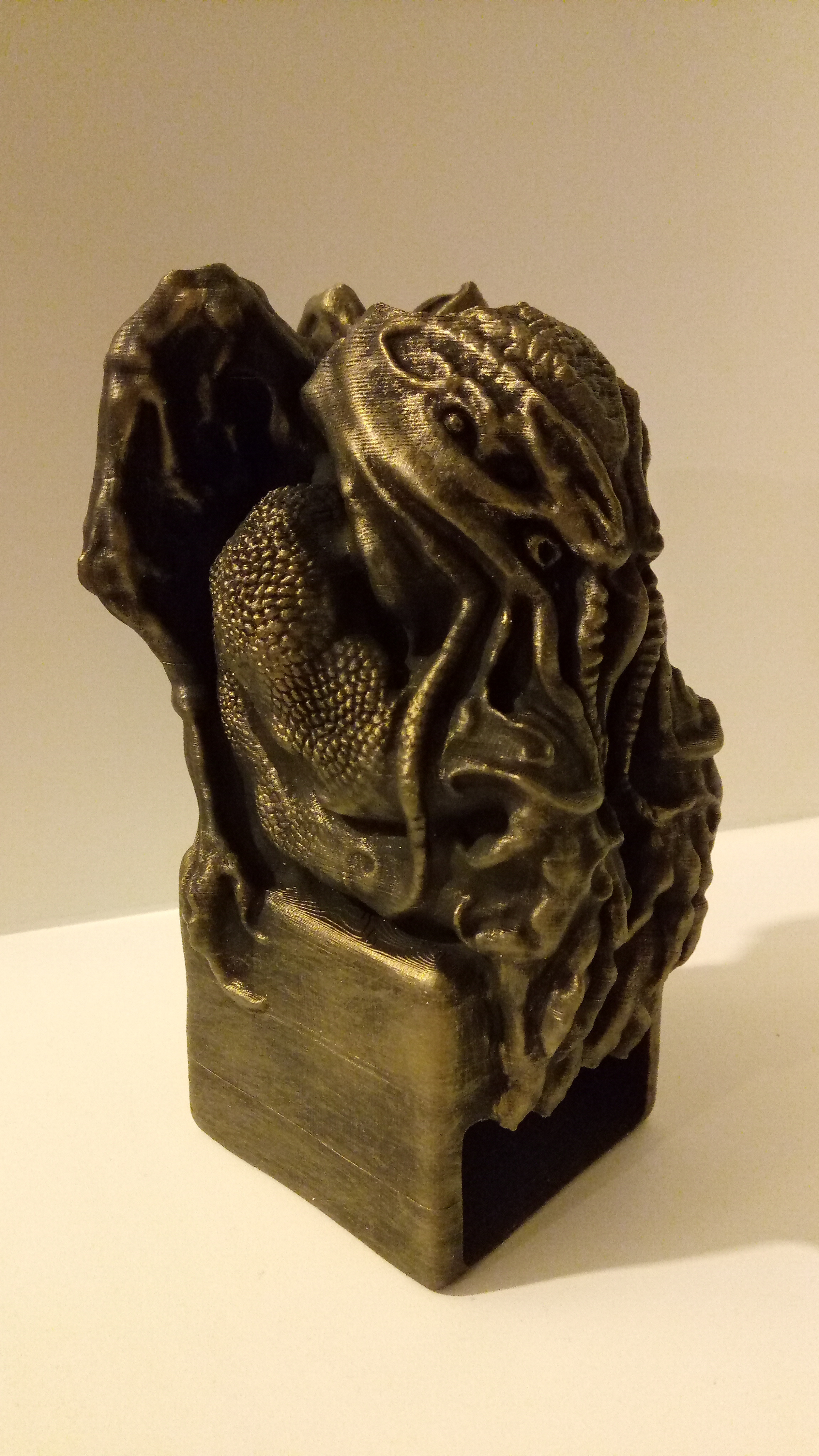 С моделью для печати определился сразу. Мы нашей небольшой компанией периодически собираемся и играем в настольные игры, и последнее время подсели на игру «Древний ужас» (основана на произведениях Говарда Филлипса Лавкрафта, а это значит Ктулху, Азатот, и др.). Игра очень атмосферная, а еще больше атмосферы добавит сам Великий Древний в виде башни для броска кубиков https://www.thingiverse.com/thing:2758090На сайте есть несколько видов башни для кубиков в виде Ктуху. Я выбрал без ловушки для кубиков, чтобы можно было и на полку поставить как статуэтку.