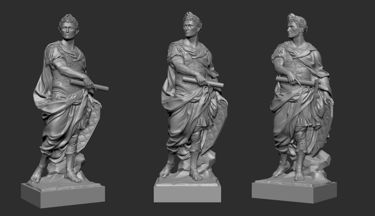 Попросили в прошлом году на работе вспомнить что такое 3д моделирование и попробовать сделать фигуру Цезаря для печати макета высотой 180 см. Этот макет нужен для скульптора, чтоб перевести фигуру в мрамор.