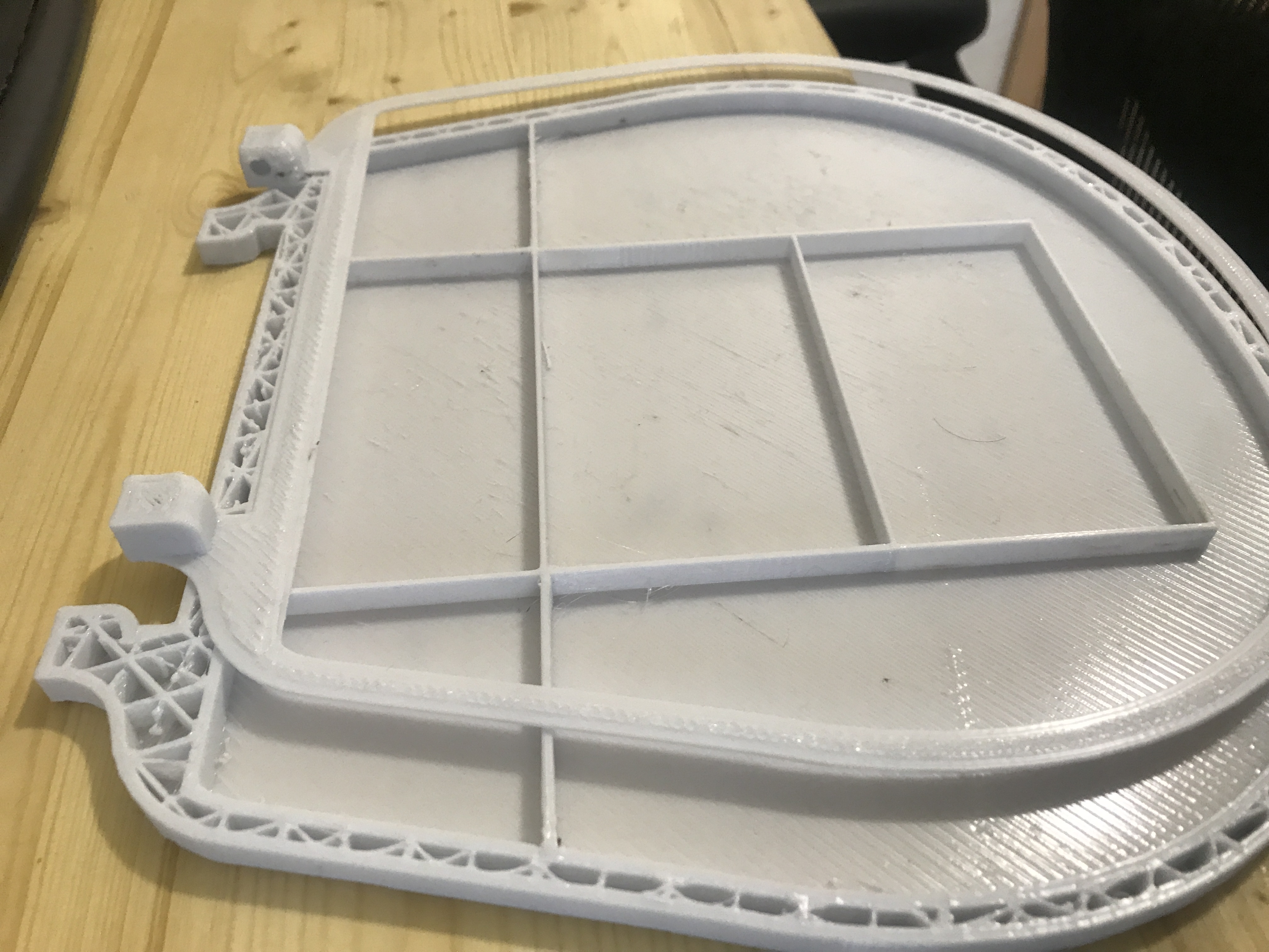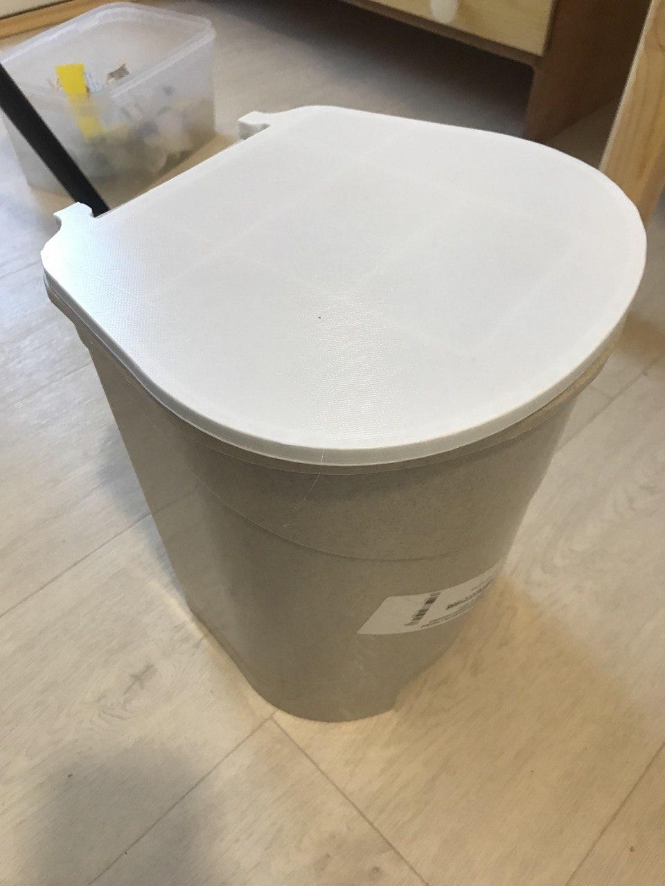 Купил мусорку без крышки. Смоделировал, распечатал крышку. Получилось из двух частей, так что склеивал после.