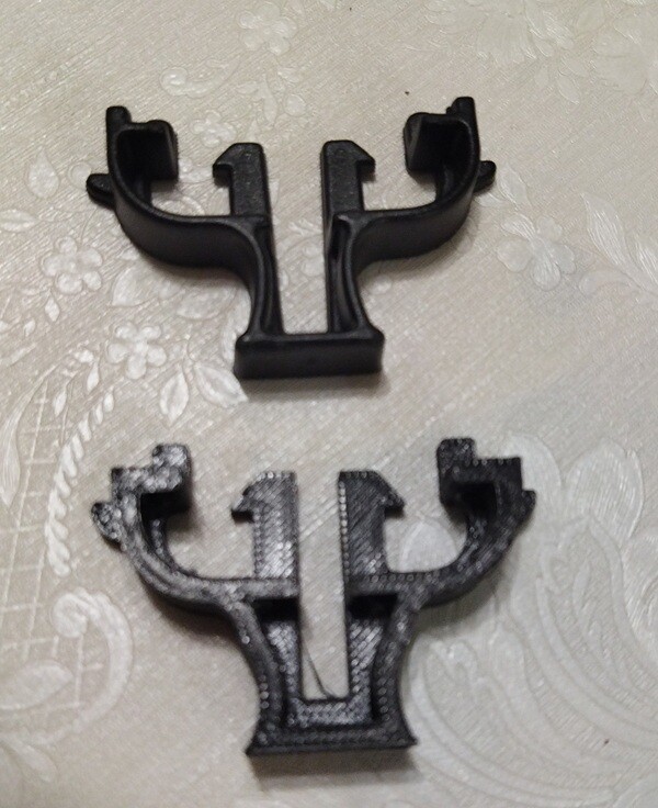 Вот так выглядит оригинал (сверху) и напечатанная копия (снизу). На моделлинг ушло полчаса с чаем, на печать - минут 40 на 3 штуки сразу.