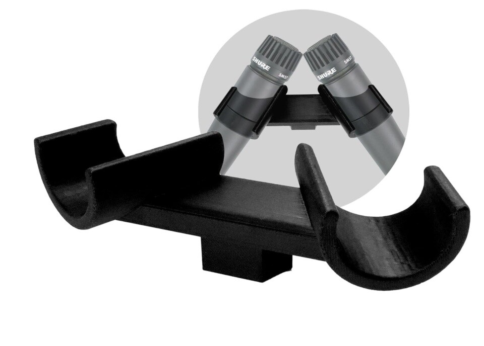 Итак, 7 лет назад существовала за бугром контора Wilkinson Audio. Они делали различные аксессуары для студий звукозаписи, в том числе нестандартные держатели микрофонов. Сейчас у них на сайте в разделе Mic Clips пусто. На фотке на превьюхе два держателя для микрофонов Shure SM57: чтобы микрофоны располагались под углом 45 градусов друг к другу (тот, что слева) и параллельно друг другу (тот, что справа).