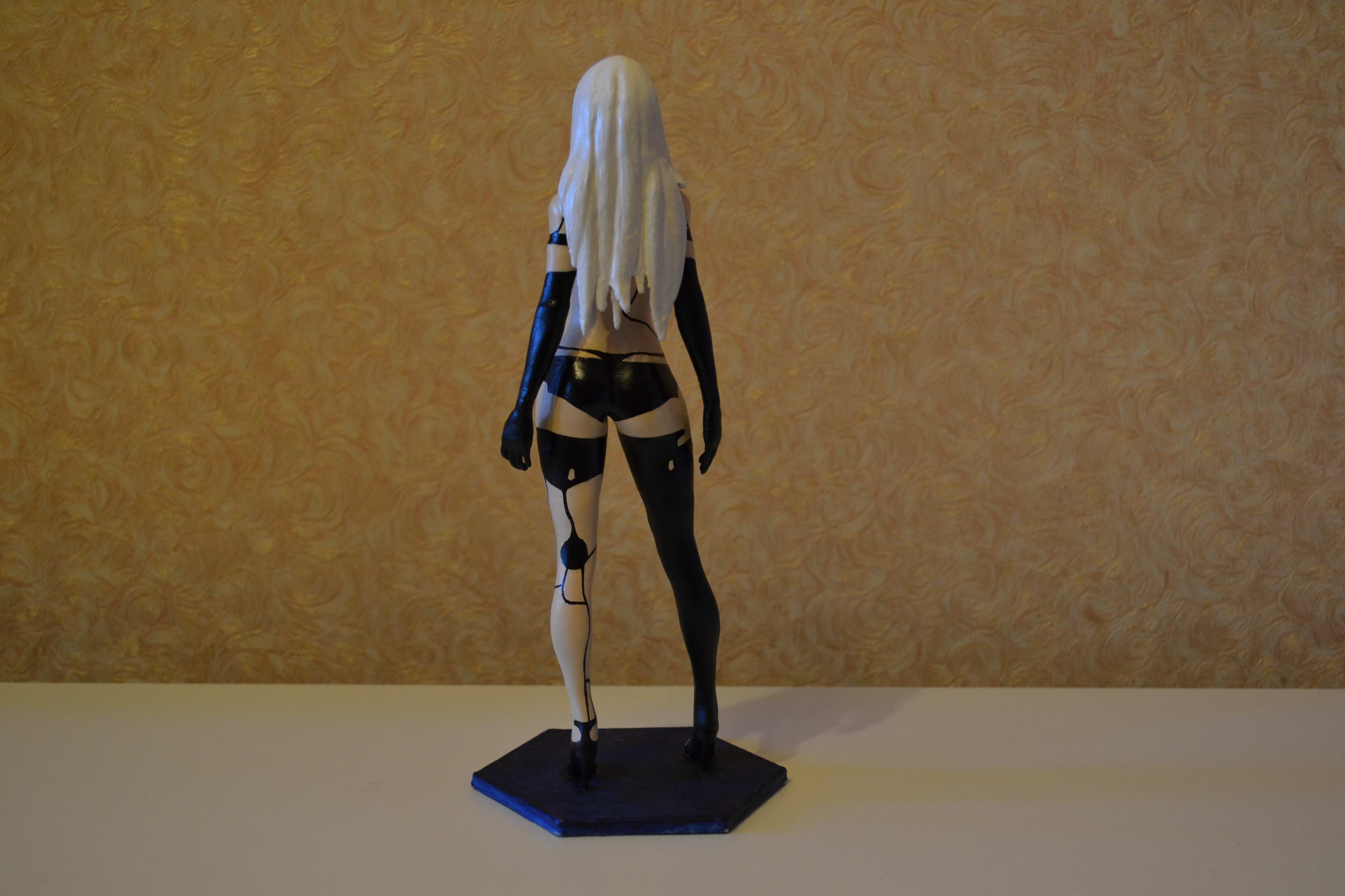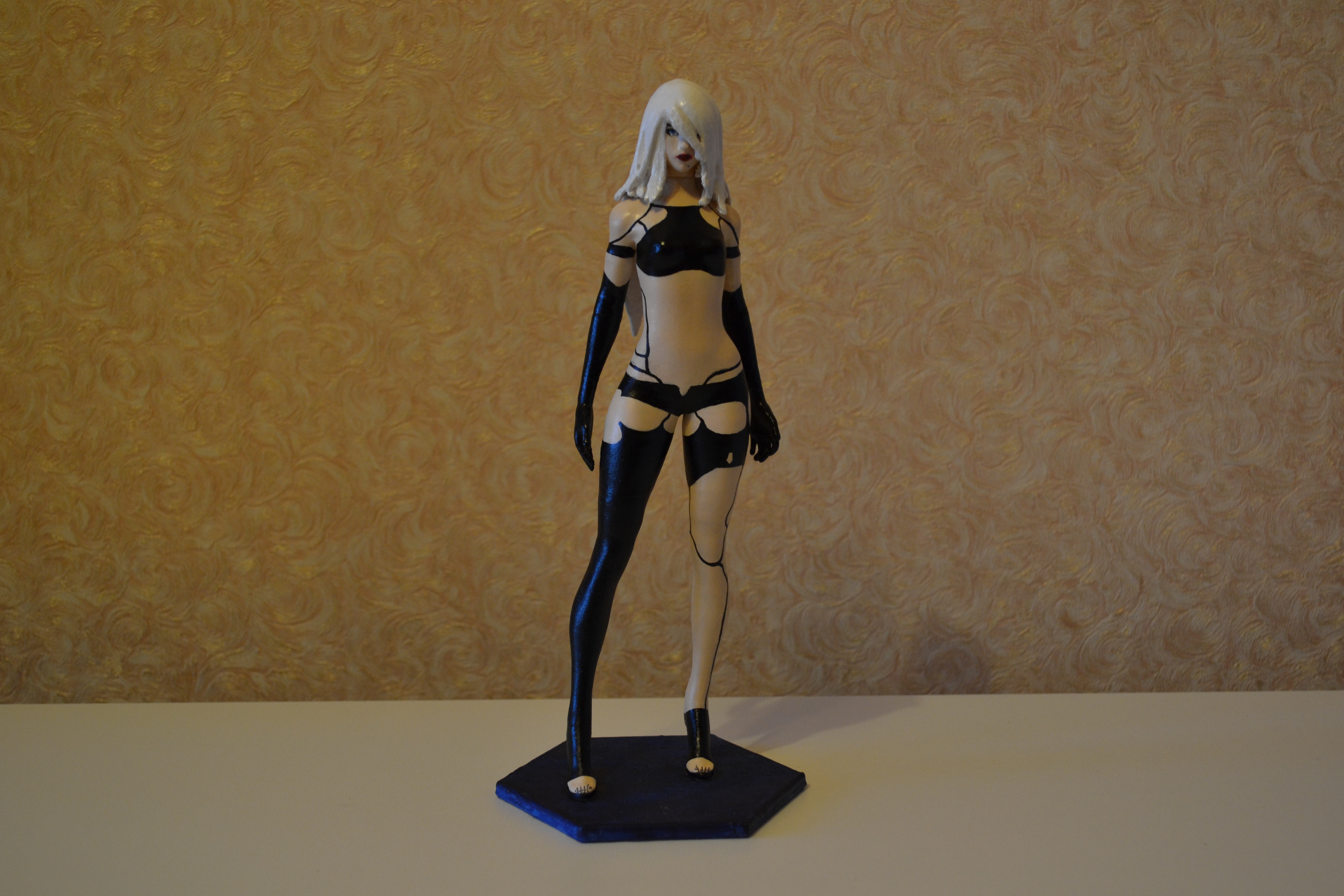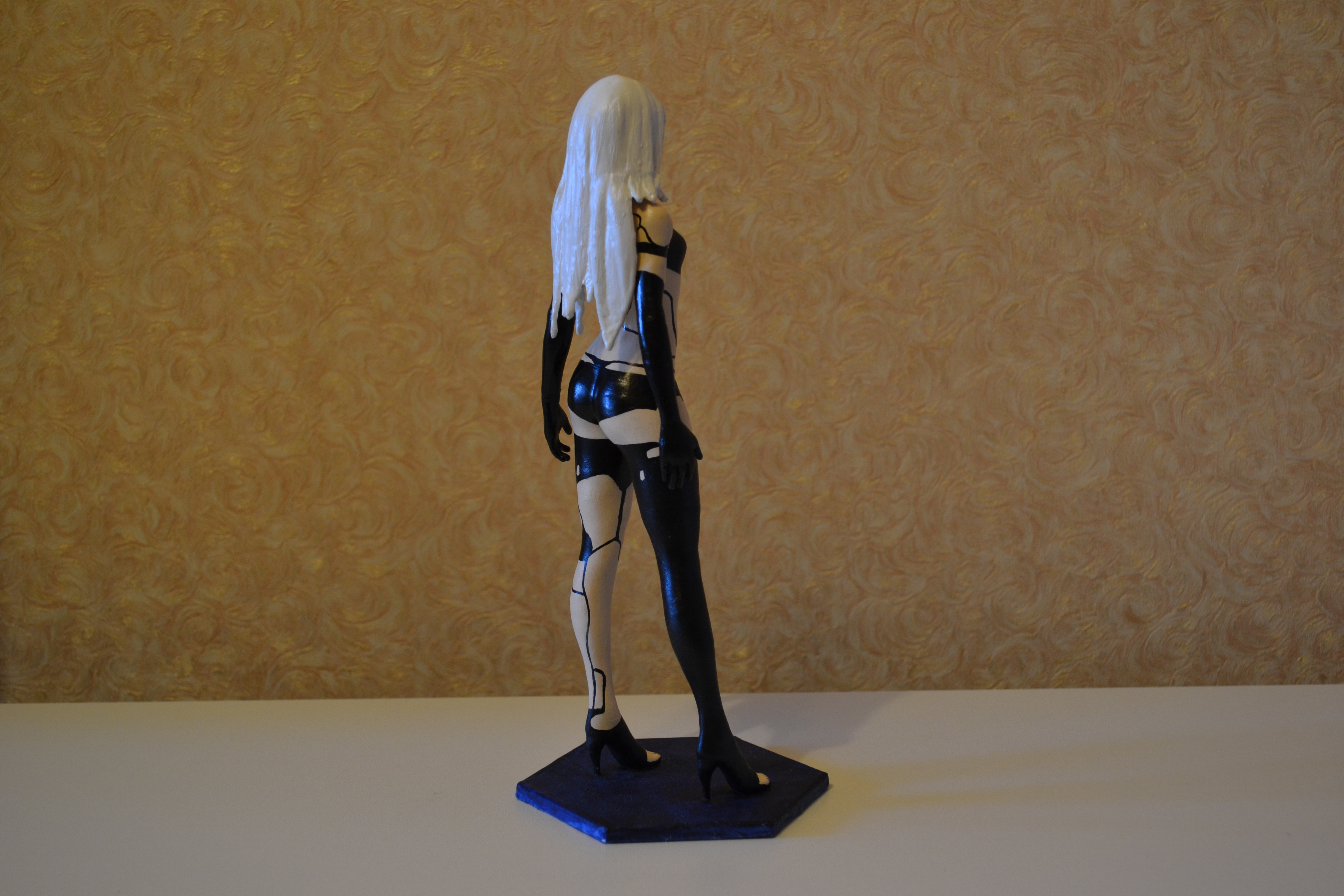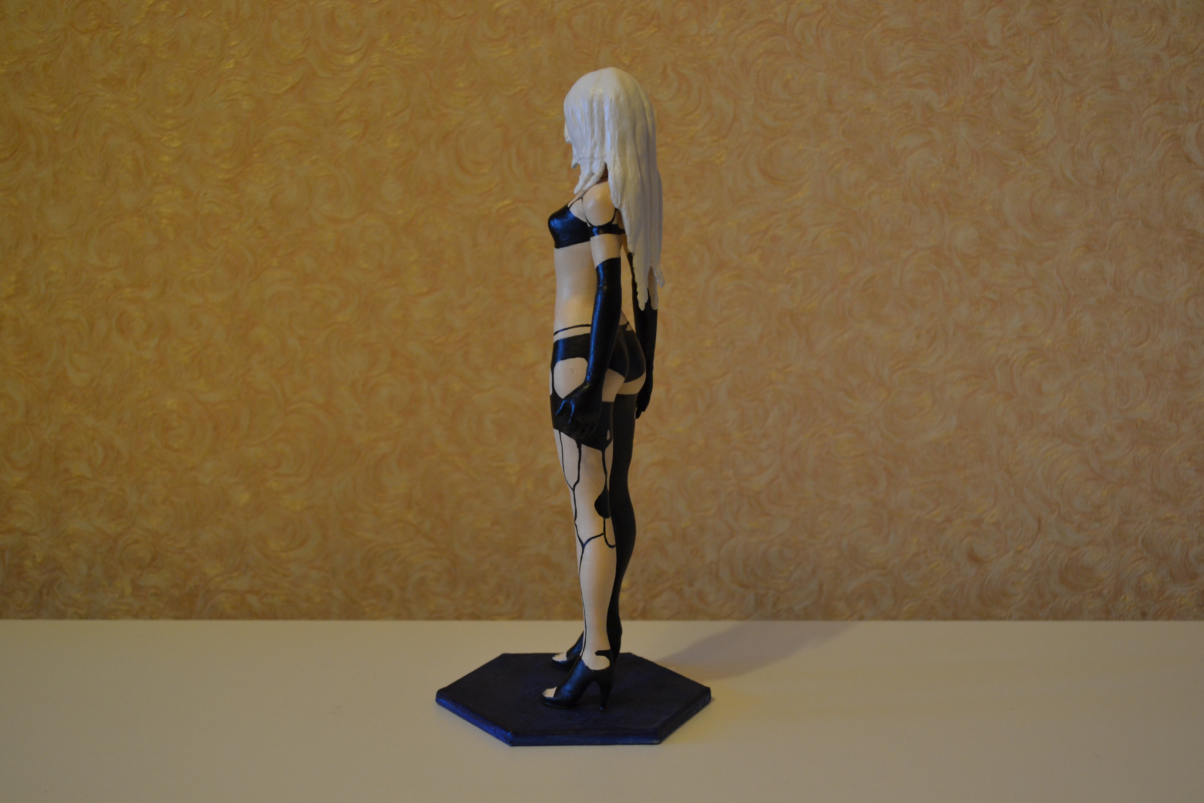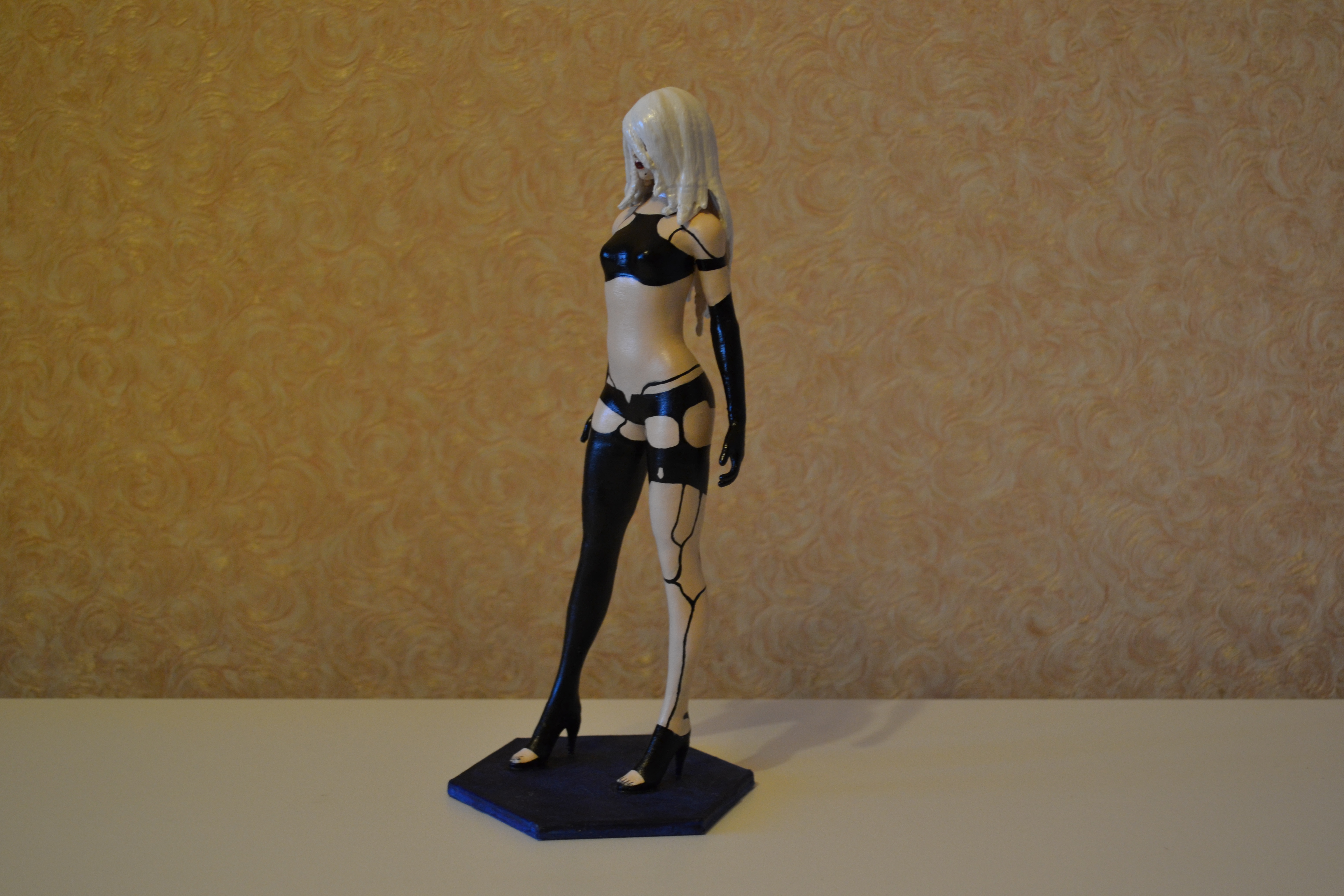 Принтер Anet-A8 E3D V6. Печать АБС пластиком FD plast. Цвет белый. Печать производил частями: ноги, задница-торс, грудь-плечи, голова, руки, волосы. Итого 6 частей. С поддержками со всех сторон, стол горячий, зеркало с клеем-карандашом Эрик Краузе (синий). Постобработка ацетоновая баня холодная, наждачная бумага, грунтовка. Окраска акриловыми красками 'Сонет' и 'Pebeo'. Наносил разными кистями, в основном плоскими. Лак матовый, автомобильный аэрозольный, 3 слоя с полной сушкой. Сделал для себя открытие в этот раз: нашел маркер акриловый 1 мм толщиной, фирмы 'Molotov'. Очень удобно контуры рисовать.