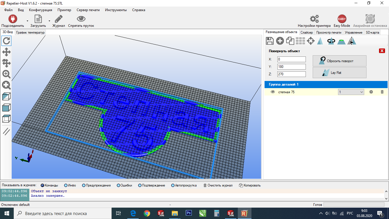 Печатал как все последние за пару лет модели пластиком от http://всем3д.рус/ ПЕТГ , соплом 1.7мм слой 0.5мм