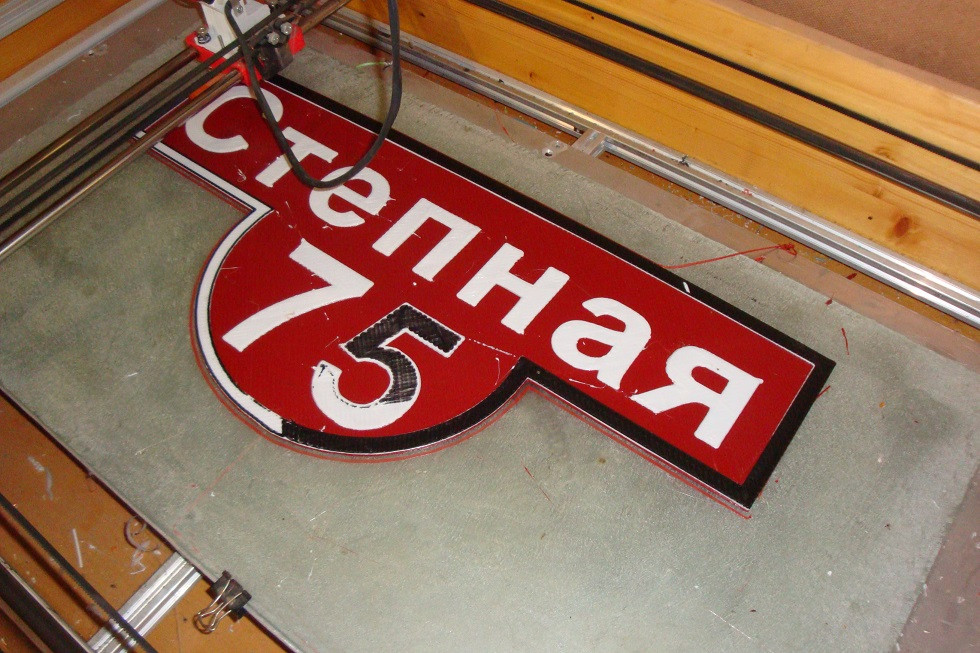 Ну что сказать, все как и в прошлые разы за исключением того, что заказчик выбрал сочетание коричневый с черным, ну и дабы потом чтоб он не кусал локти и не обижался за плохую читаемость, я навязал ему белую прослойку/подложку под черный, хотя на фото надо признать читается хорошо, но это от вспышки, в реале сочетание цветов на мой взгляд не ахти . Ну и плюс эта табличка можно сказать была экзаменом для старшего сына, отжимают дети потихоньку мои шабашки :-) .