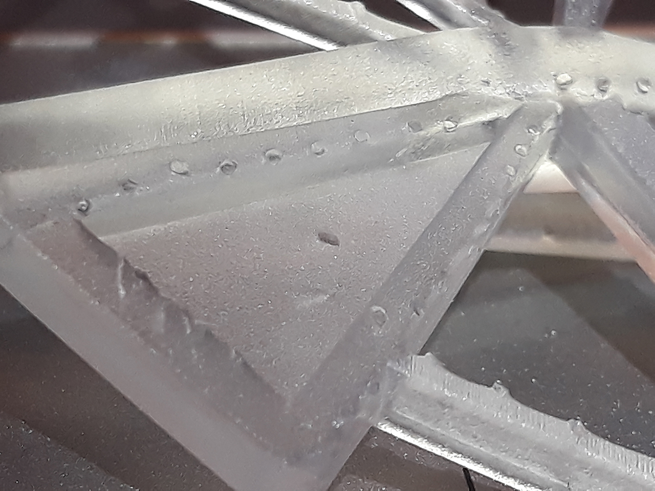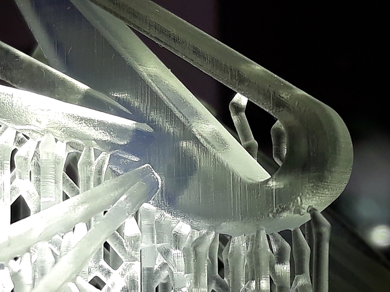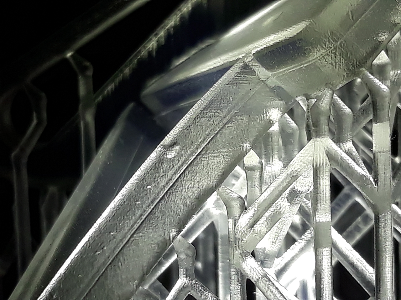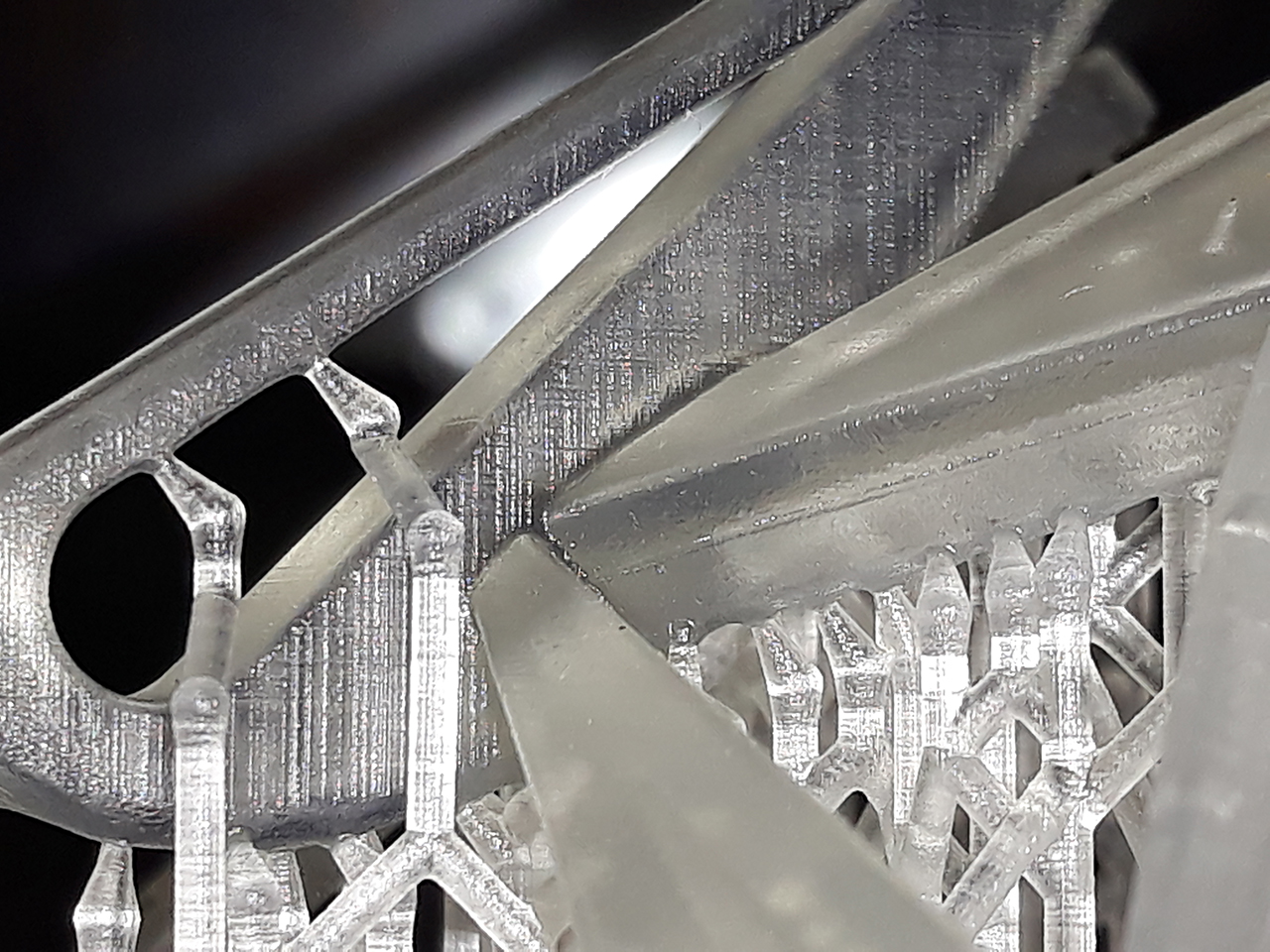 Шаг различим. И полосатость как от матрицы. Поддержки разлетелись в щепки. В модельке от поддержек остались дырочки.