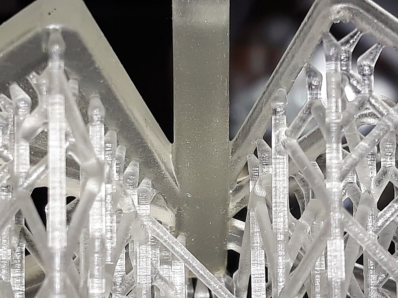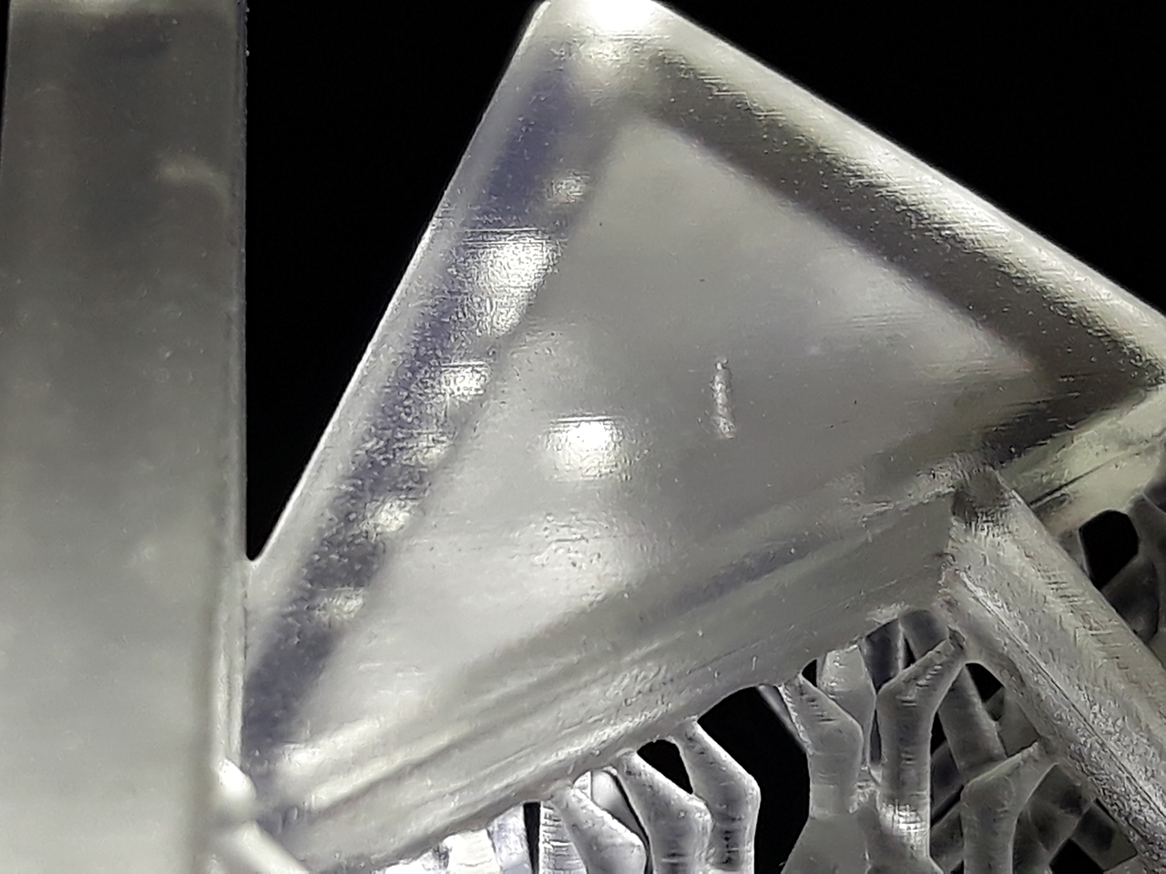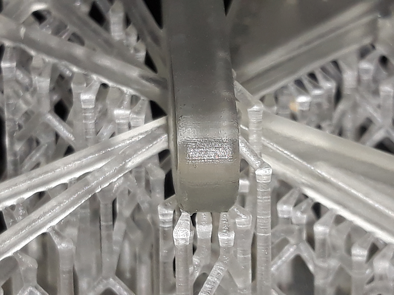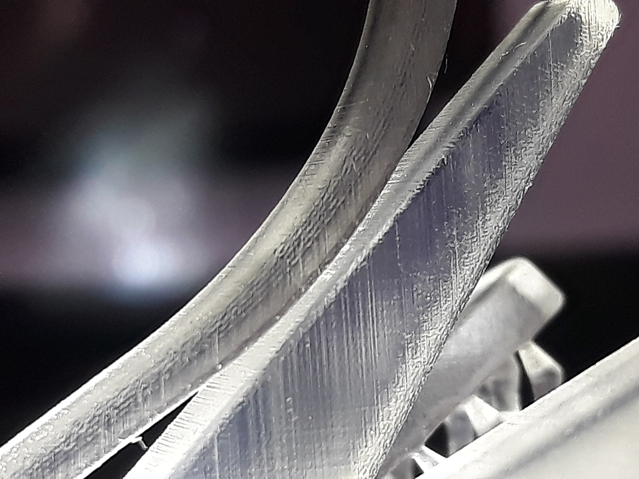 Шаг различим. И полосатость как от матрицы. Поддержки разлетелись в щепки. В модельке от поддержек остались дырочки.