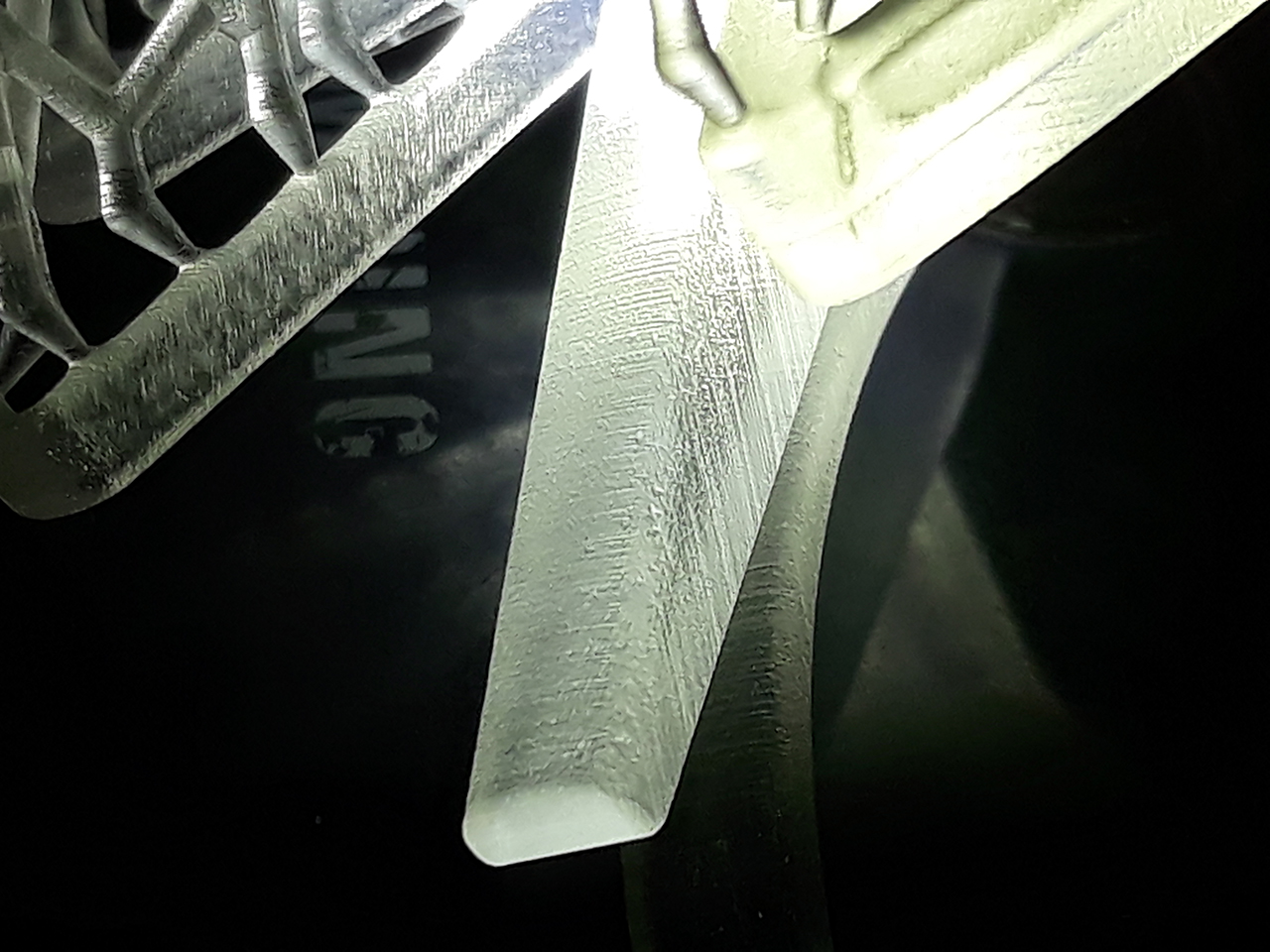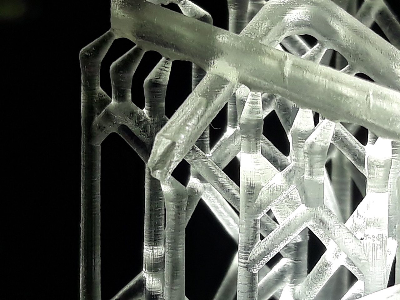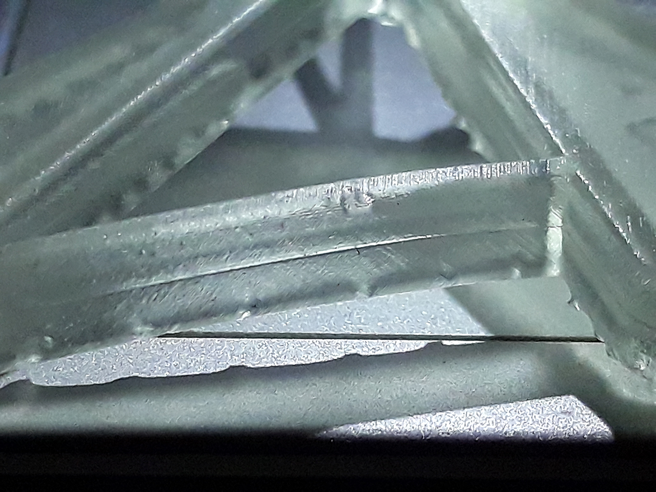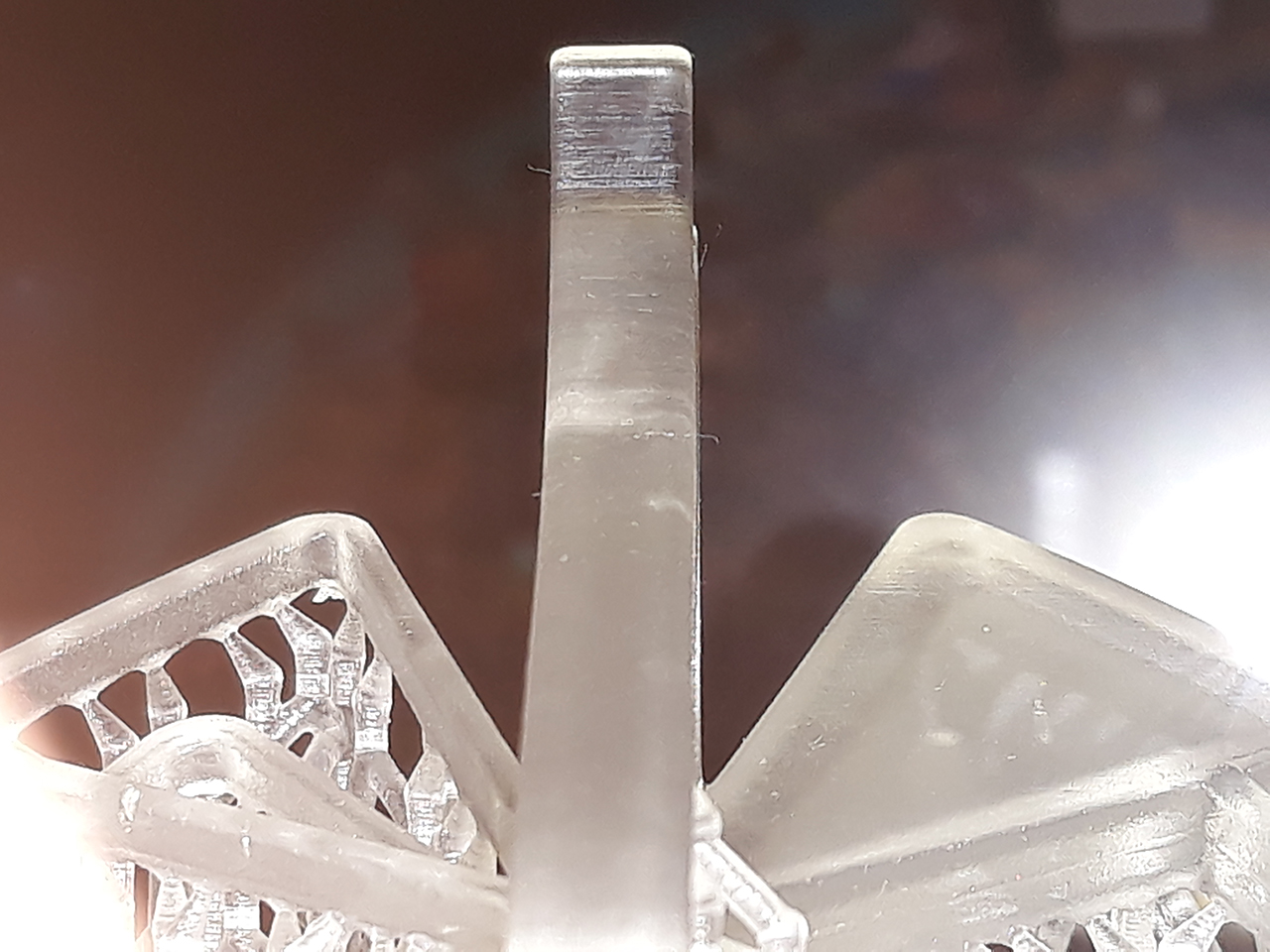 Шаг различим. И полосатость как от матрицы. Поддержки разлетелись в щепки. В модельке от поддержек остались дырочки.