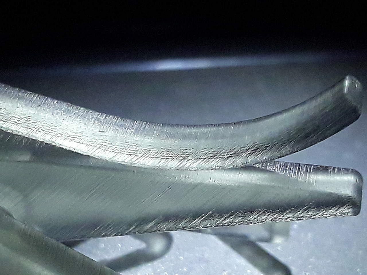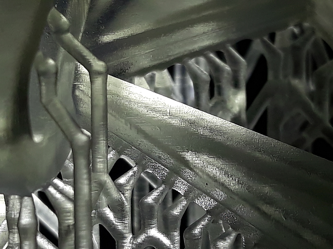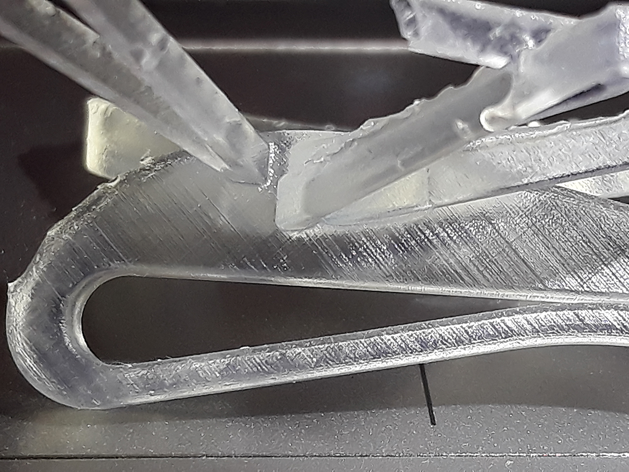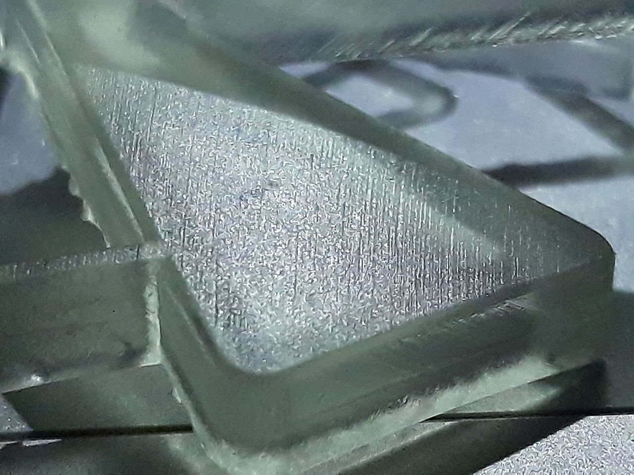 Шаг различим. И полосатость как от матрицы. Поддержки разлетелись в щепки. В модельке от поддержек остались дырочки.