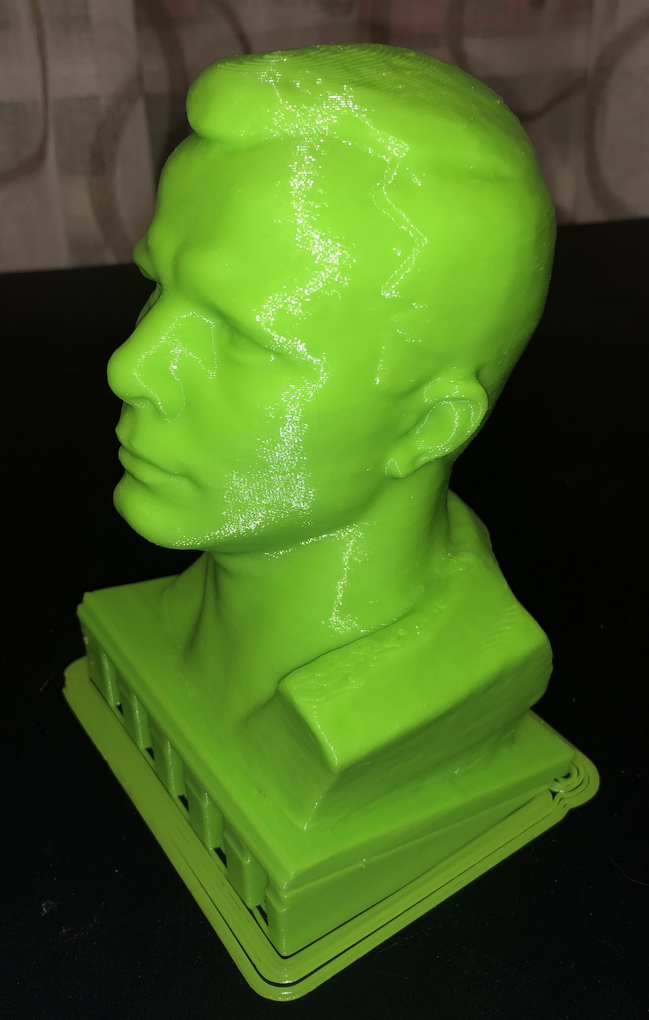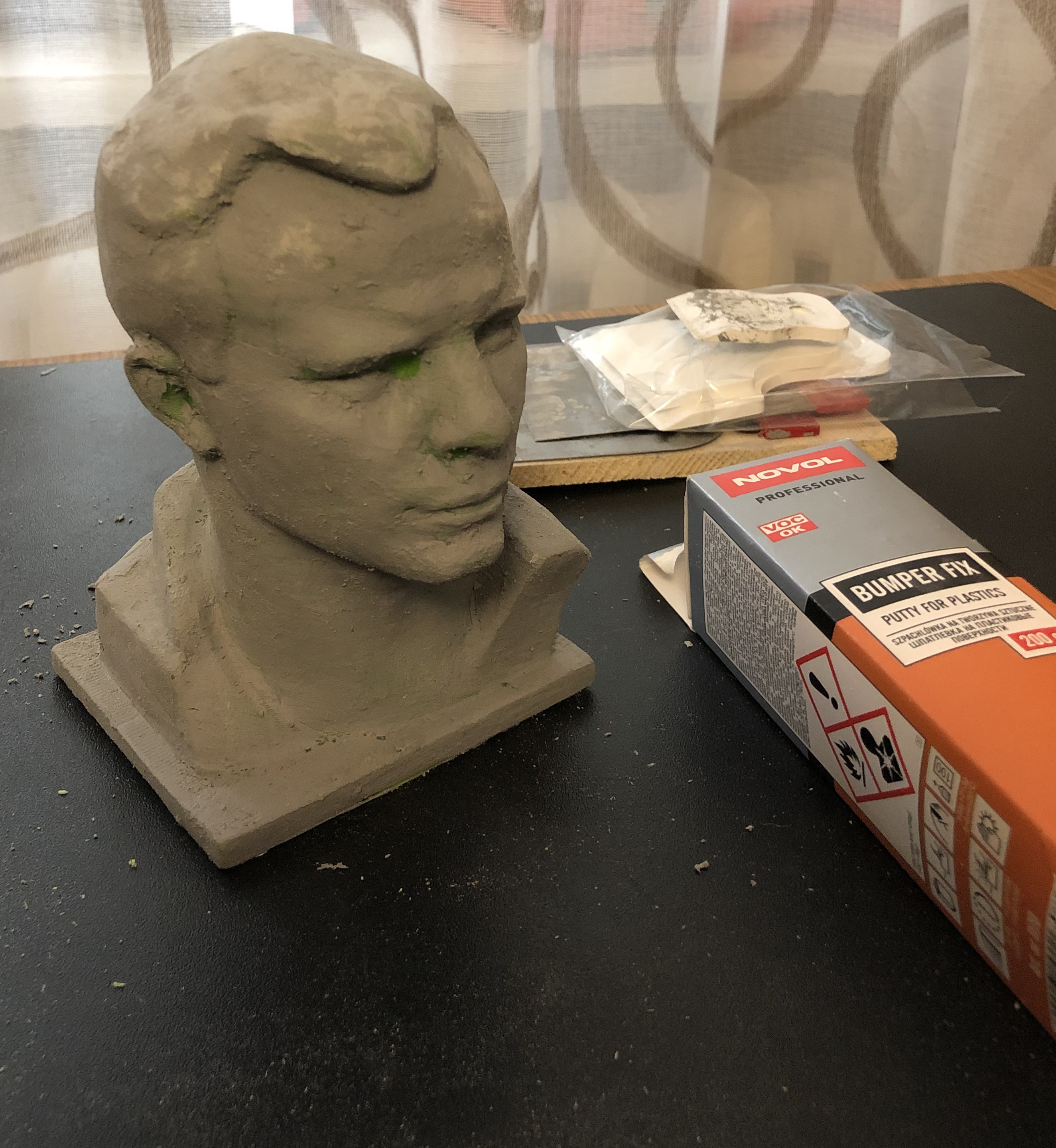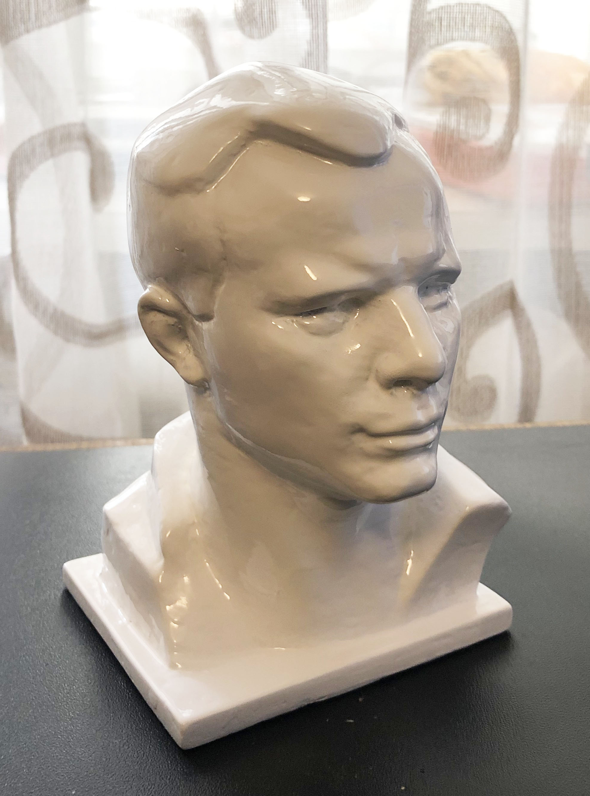 Кстати, печатал ещё Гагарина Ceramo-Tex от Filamentarno. Без постобработки выглядит мягко говоря не очень.2. Первый слой шпатлевки. После него зашкурил все поверхности и зашпатлевал еще раз проблемные места, которые заметил. 3. Модель покрыта праймером и грунтовкой. После грунтовки бюст выглядел практически идеально - серый цвет не сильно глянцевая поверхность скрывала множество косяков.4. Увы,ярко белая глянцевая акриловая краска все косяки проявила. На фото их не очень заметно, по бликам же видно уйму косяков. Но на данном этапе их, наверное, уже поздно устранять.
