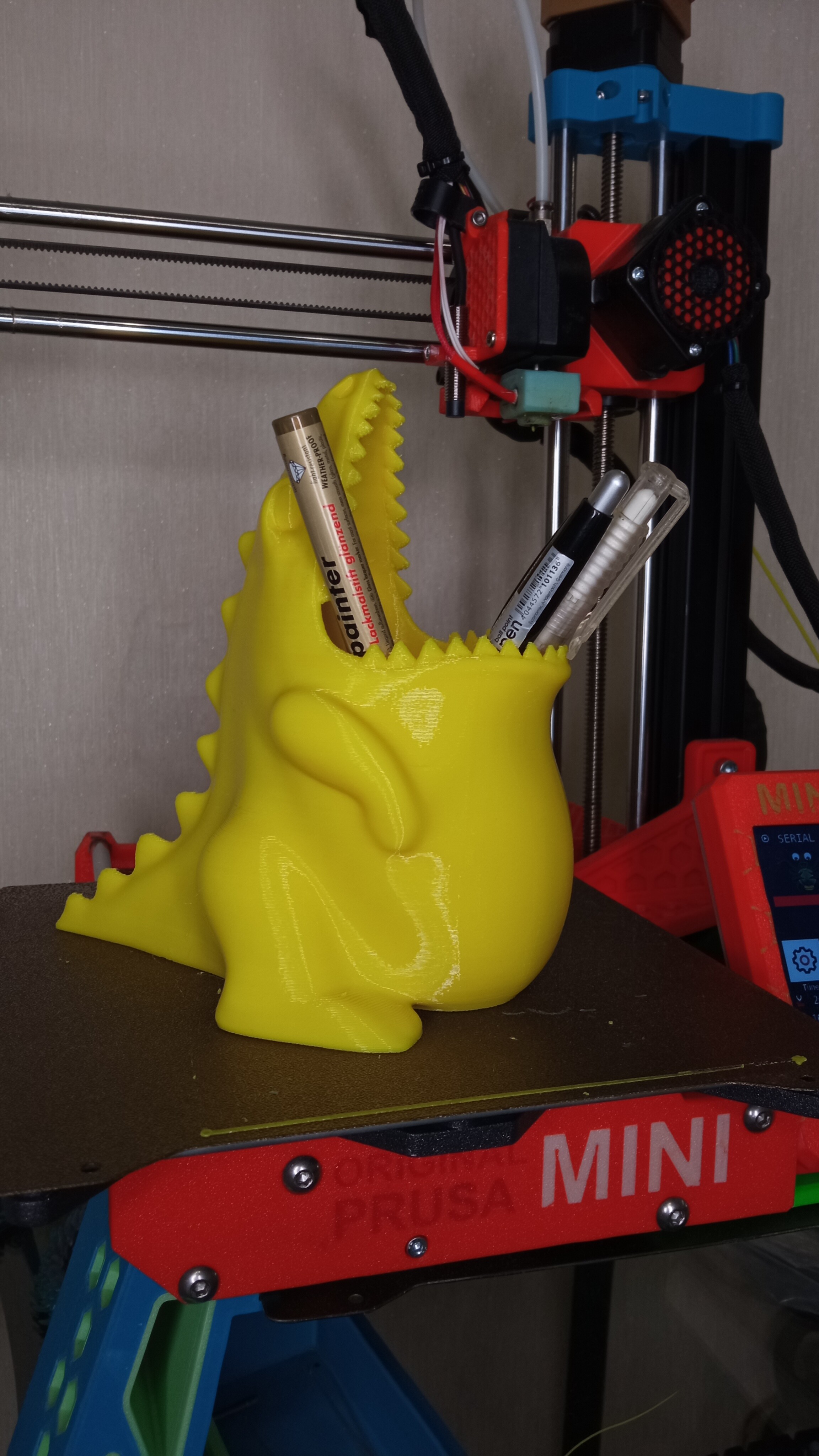 Карандашница достаточно известная, поэтому ссылки искать не буду. PET-G My3d.art желтый. Сопло 0,4 мм, слой 0,3.