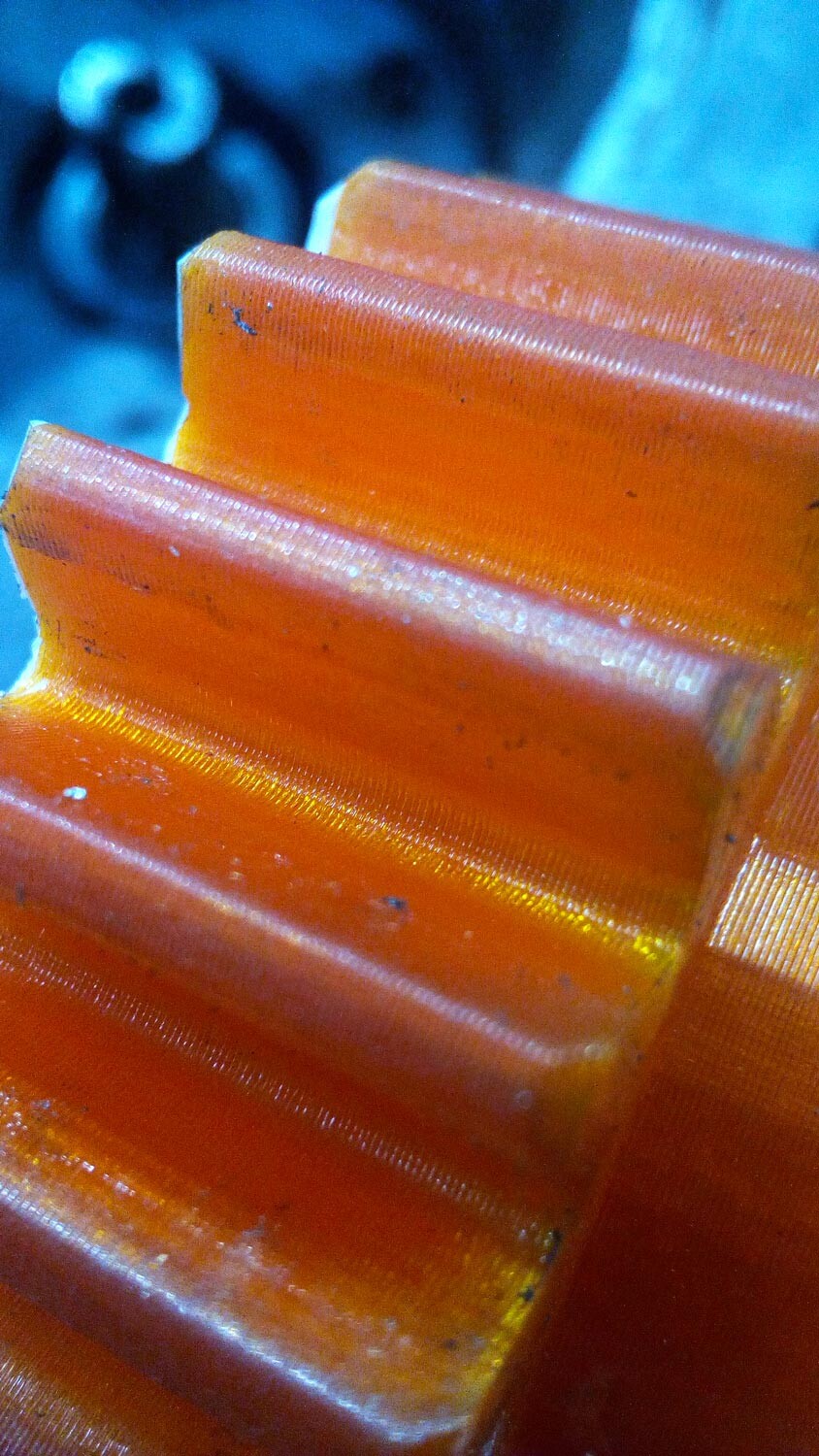 Даже сомневался перед печатью, использовал остатки разных цветов, но получилось на удивление - работоспособно! Когда то эта деталь была металлическая, потом из капролона, теперь - PET-G. Спустя неделю работы станка по обработке металла, узел был разобран на ревизию. Износа и деформации не обнаружено, значит будет работать дальше.