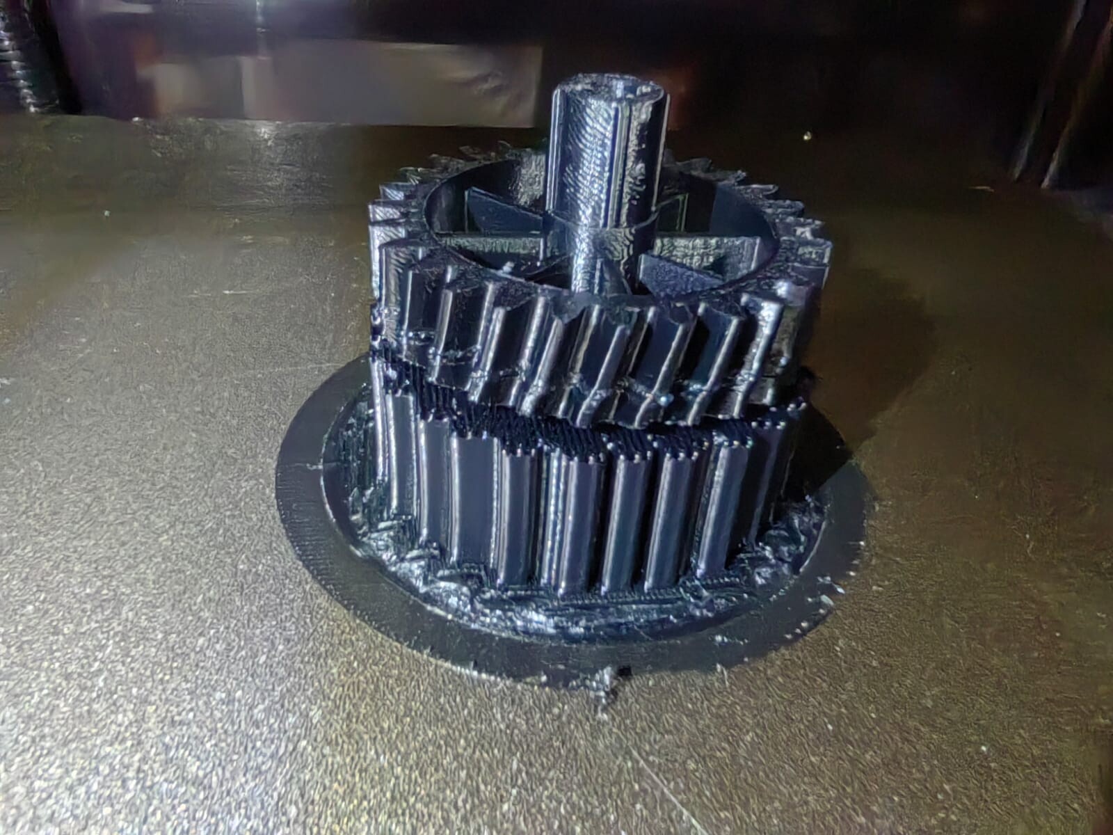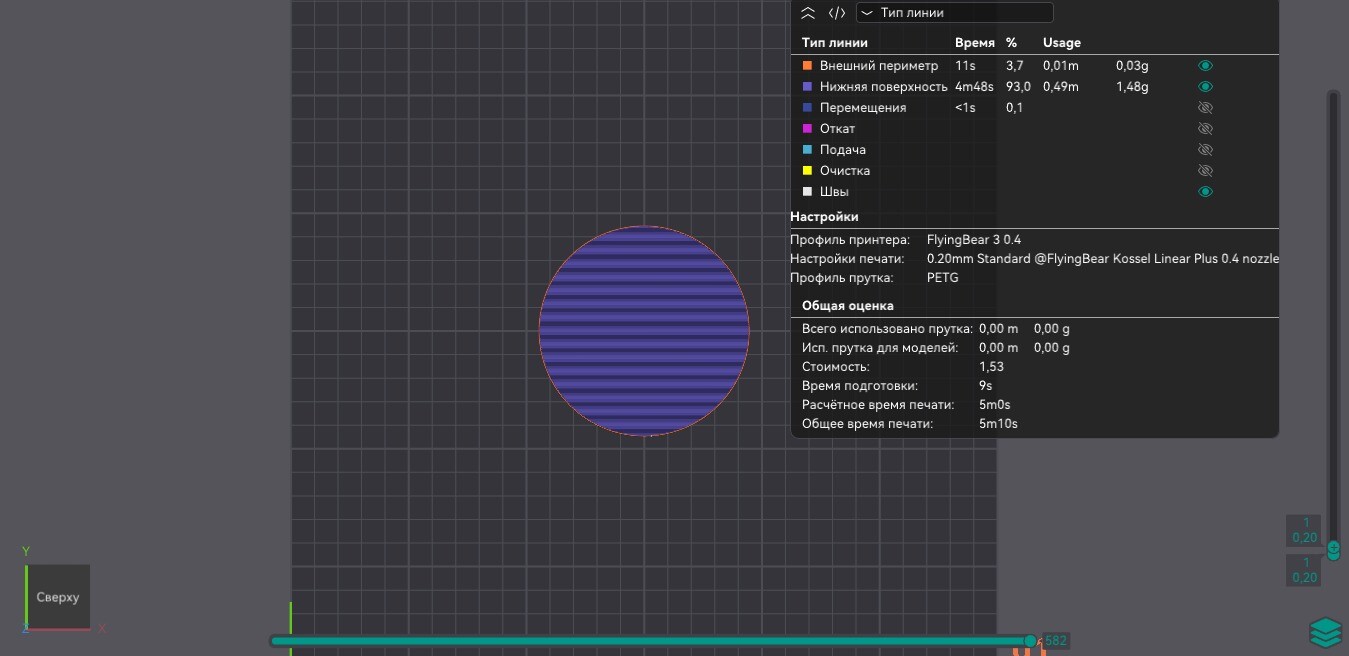 За основу решил взять пластик PETG(Черный, другого не было). Распечатал круг в один слой 0.2мм 1.5-2 раза больше основной детали(Нужно для лучшей адгезии со столом, иначе нейлон вырвет ее).