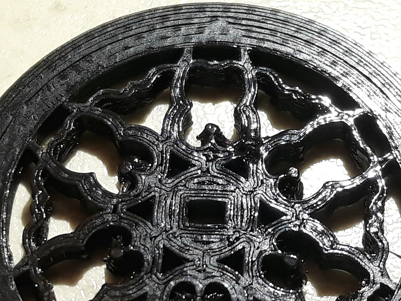 Верхний слой не вышел, провалился. Надо было заполнение 100% ставить.
