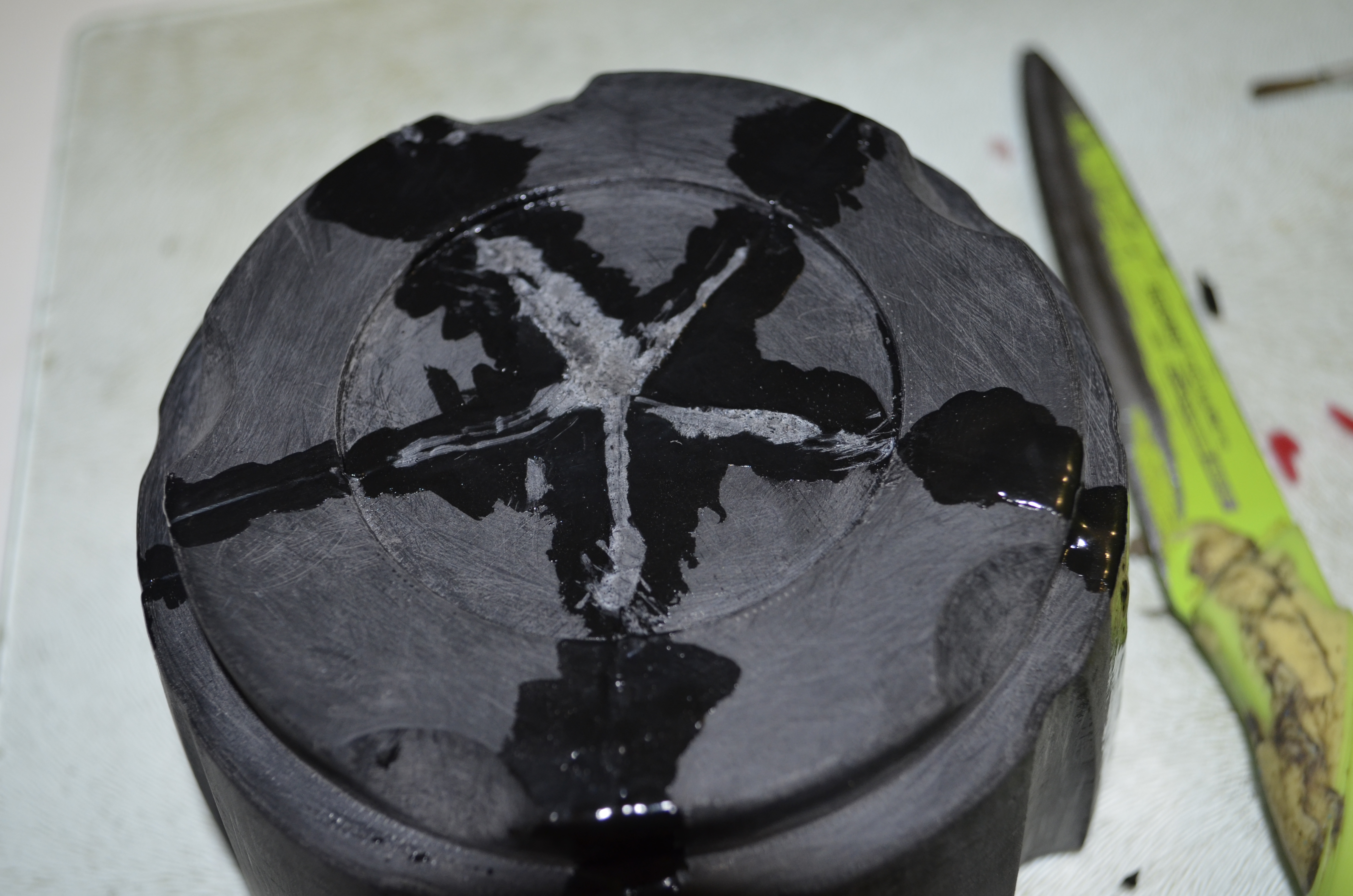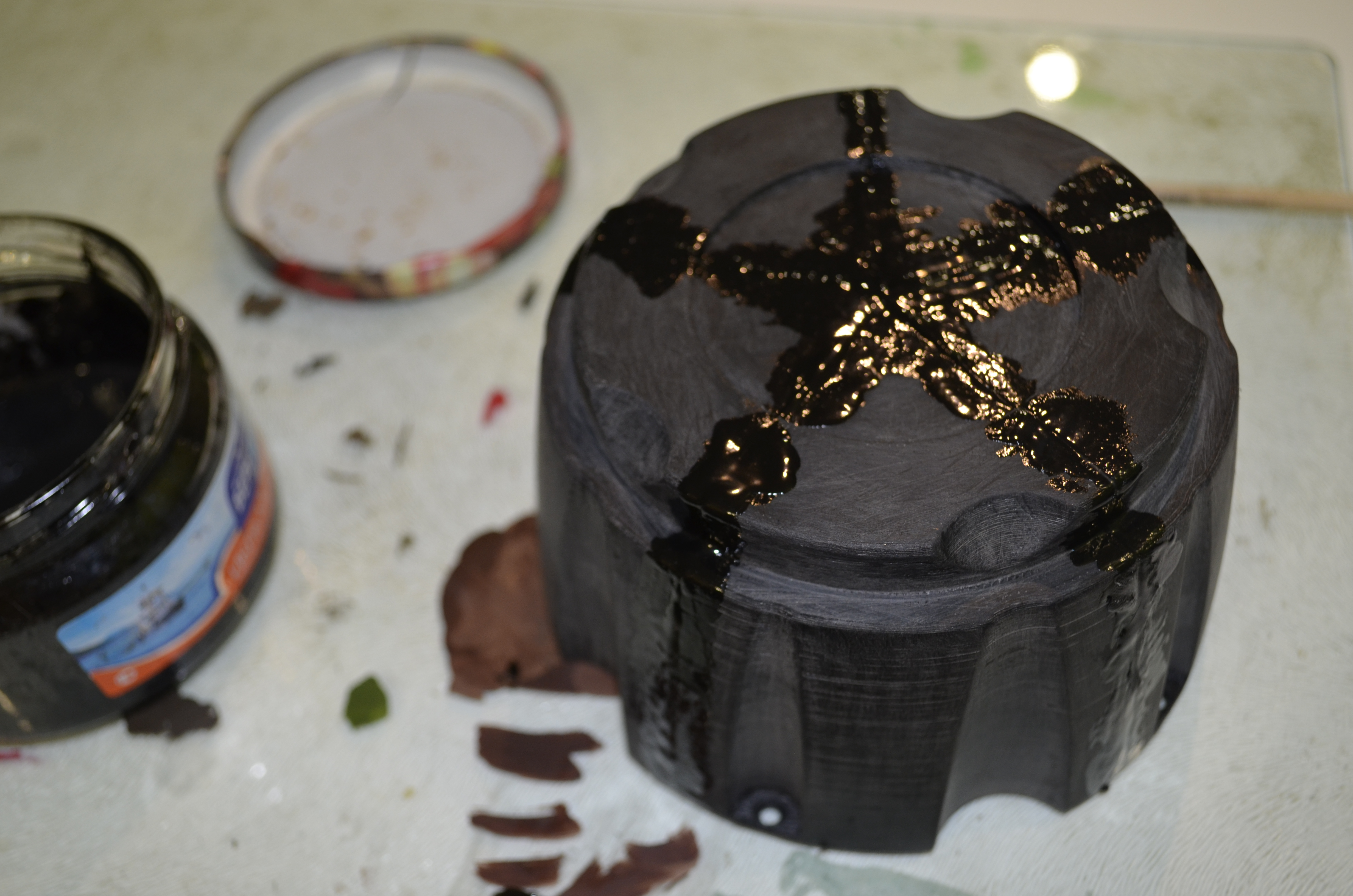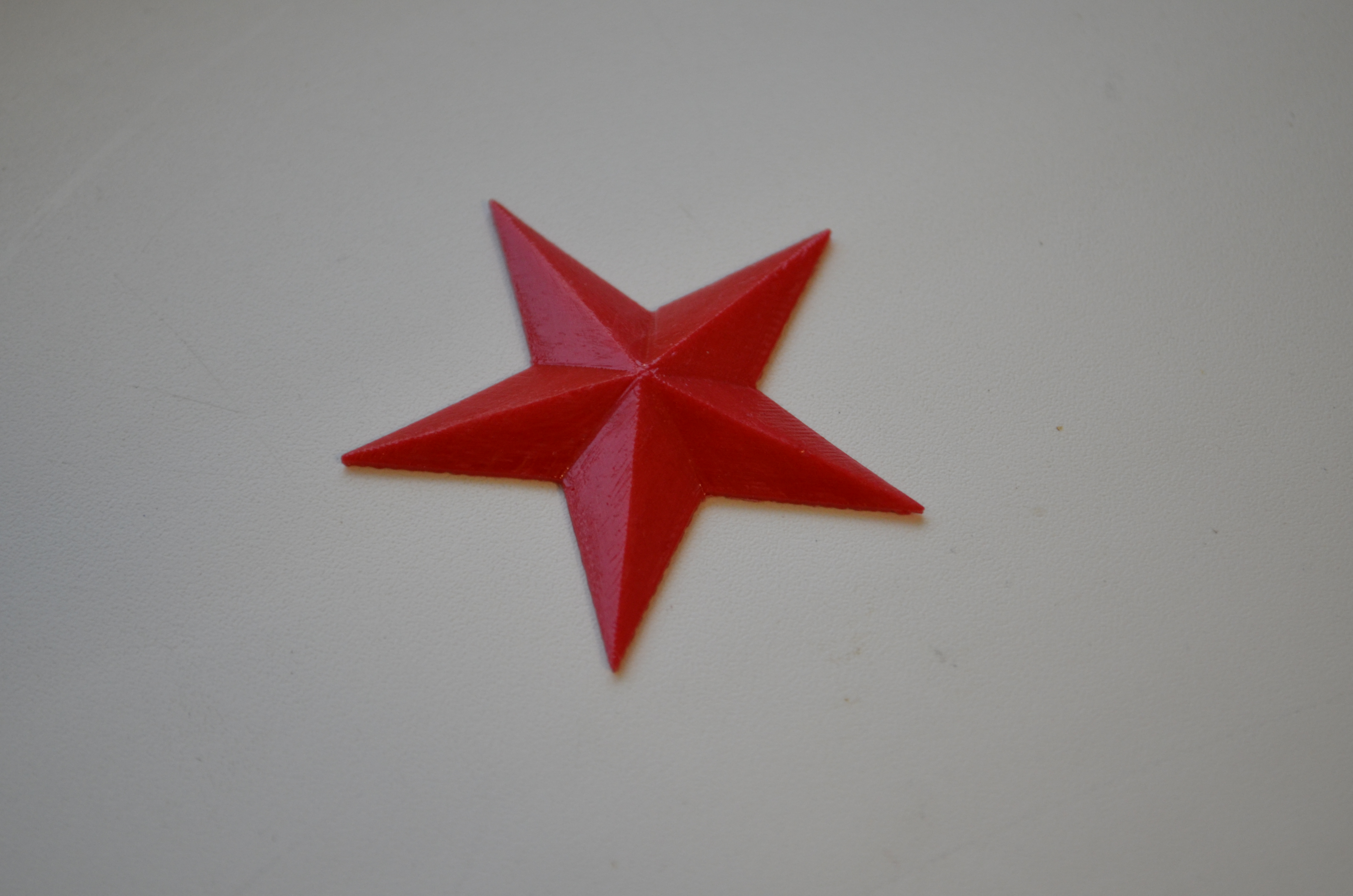 Напечатанные 4 сектора стоят облокотивший друг на друга, в это время 5-й уже в печатиА вот и пятый, только из принтера и поэтому еще без шкуринга:Затем все это добро склеивается:и на зажимы пока не высохнет (поддержки снизу убирать не стал)после сушки в течении суток аккуратно ножом убираем все лишнее:и опять шкурим (фото конечно не получилось, но другого нет):затем обработка ацетоном и вот что получаем:Так как на исходных колпаках были эмблемы в виде 'R', а на новом ее нет - было принято решение заменить их на что-то другое. Заказчик выбрал звезды:Всем спасибо за внимание!
