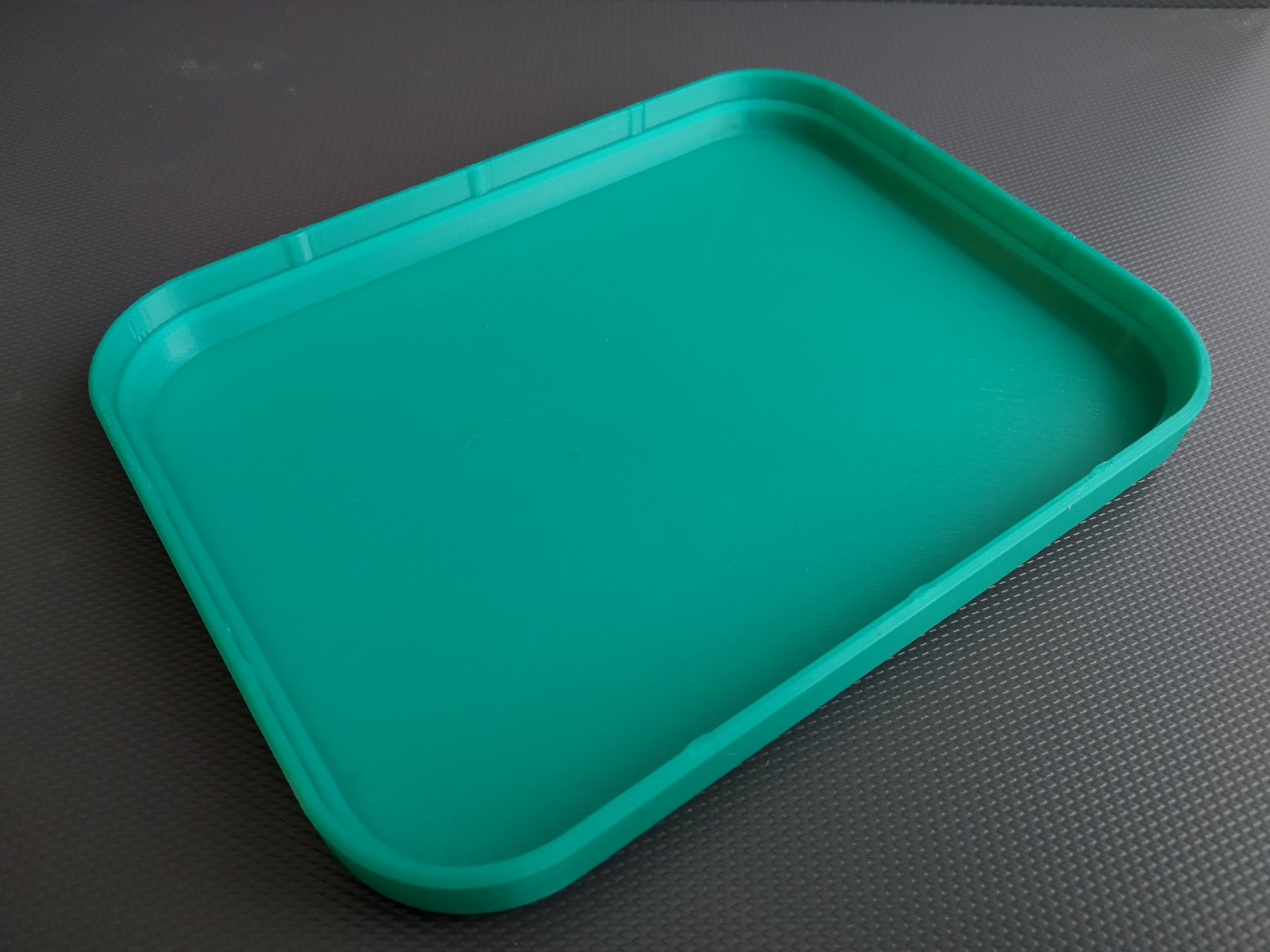 Истрепалась коробка в которой носили в школу баночки с гуашью, можно было конечно склеить из картона, но это будет опять временная мера, а дома давно лежит катушка зелёного petg пластика, цвет неплохой, но что-то некуда его было применить. Около часа на замеры и моделирование и процесс пошел. Надпись решил тоже напечатать, подготовил два gcode, печать белым пластиком в один слой и сразу поверх печать зелёным, по этой причине надпись несколько бледной выглядит.