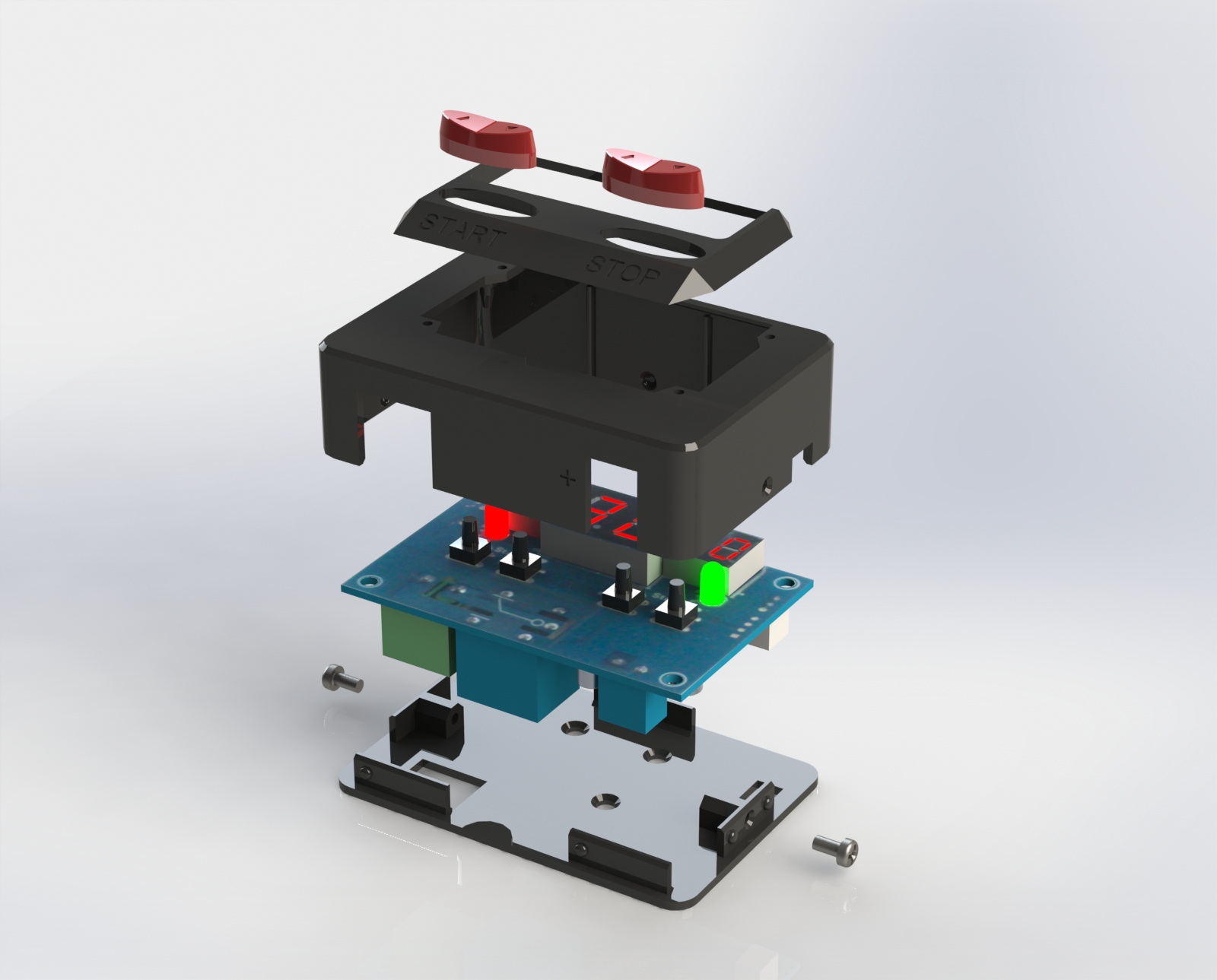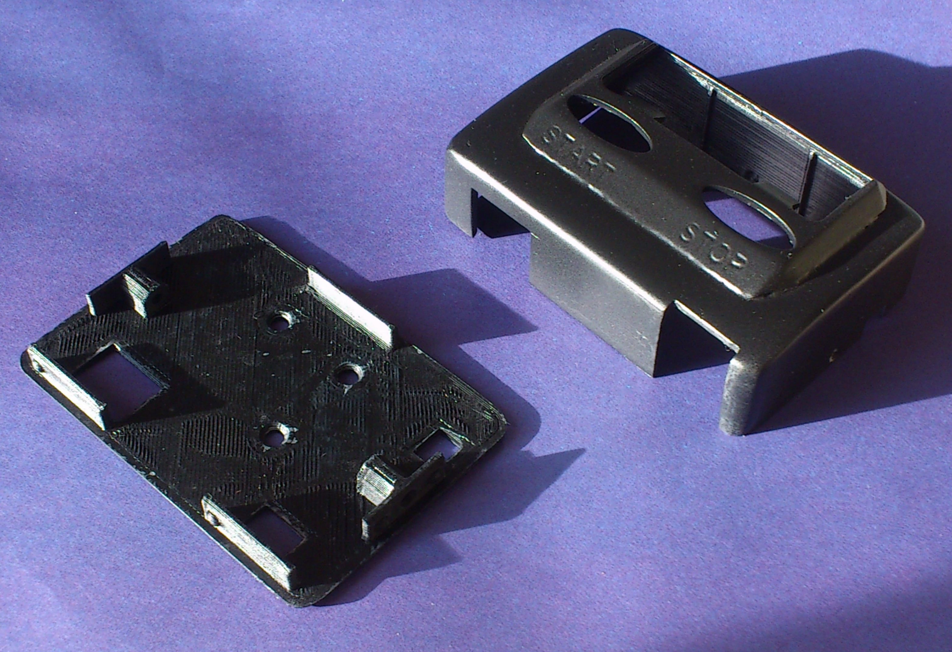 Отпечатал черным АБС пластиком неизвестного производителя . Сопло 0,4; 255 градусов, слой 0,2 (верхняя панелька и кнопки слой 0,1). Кнопки красный Relax Rec. Края у верхней крышки немного по краям приподнялись, поэтому корпус получился более скругленным чем планировалось. Дальше шкуринг (с помощью тарелки и шуруповерта). Сбрызнул ацетоном (пригодился тюбик от стопангина).