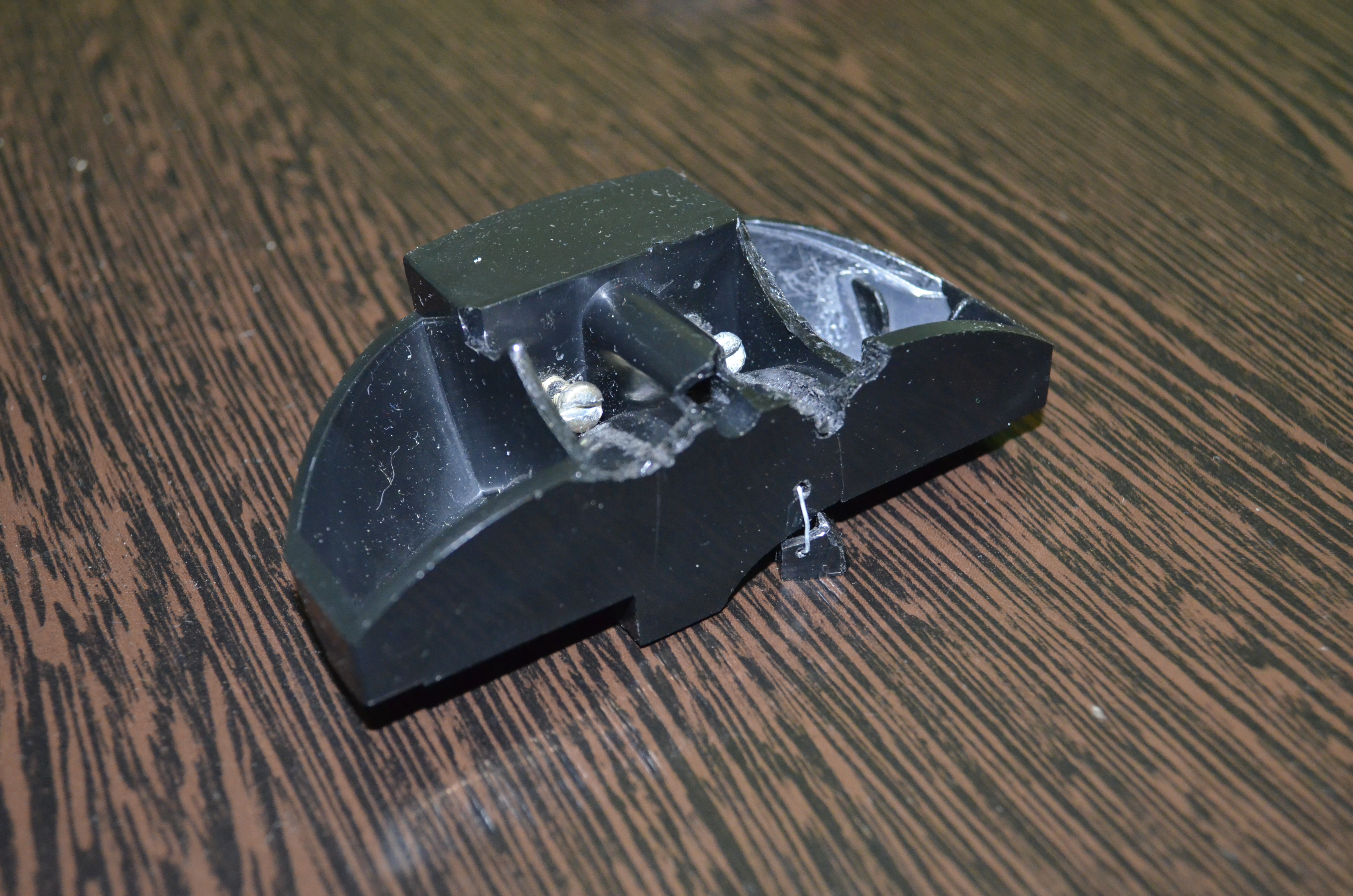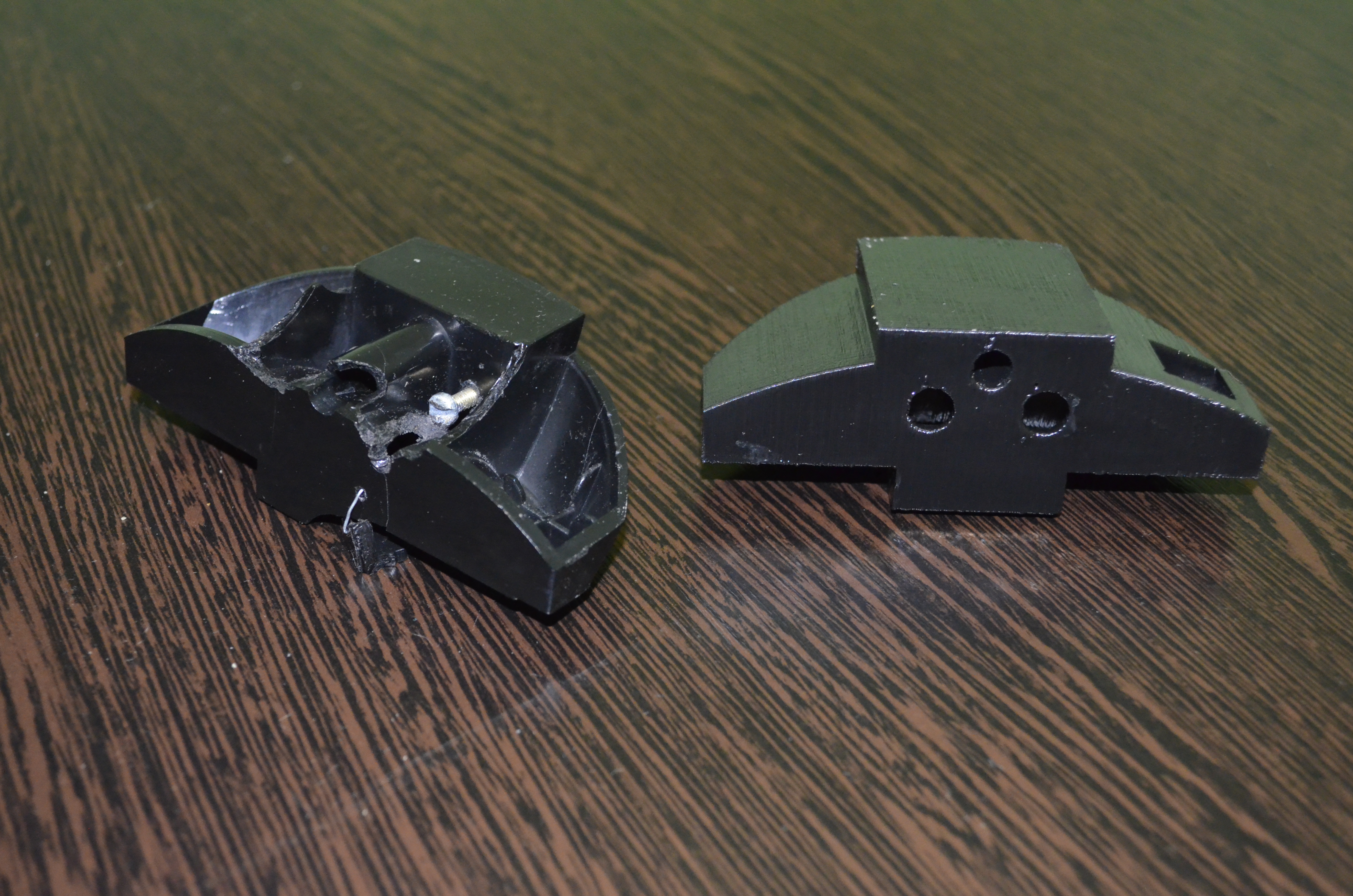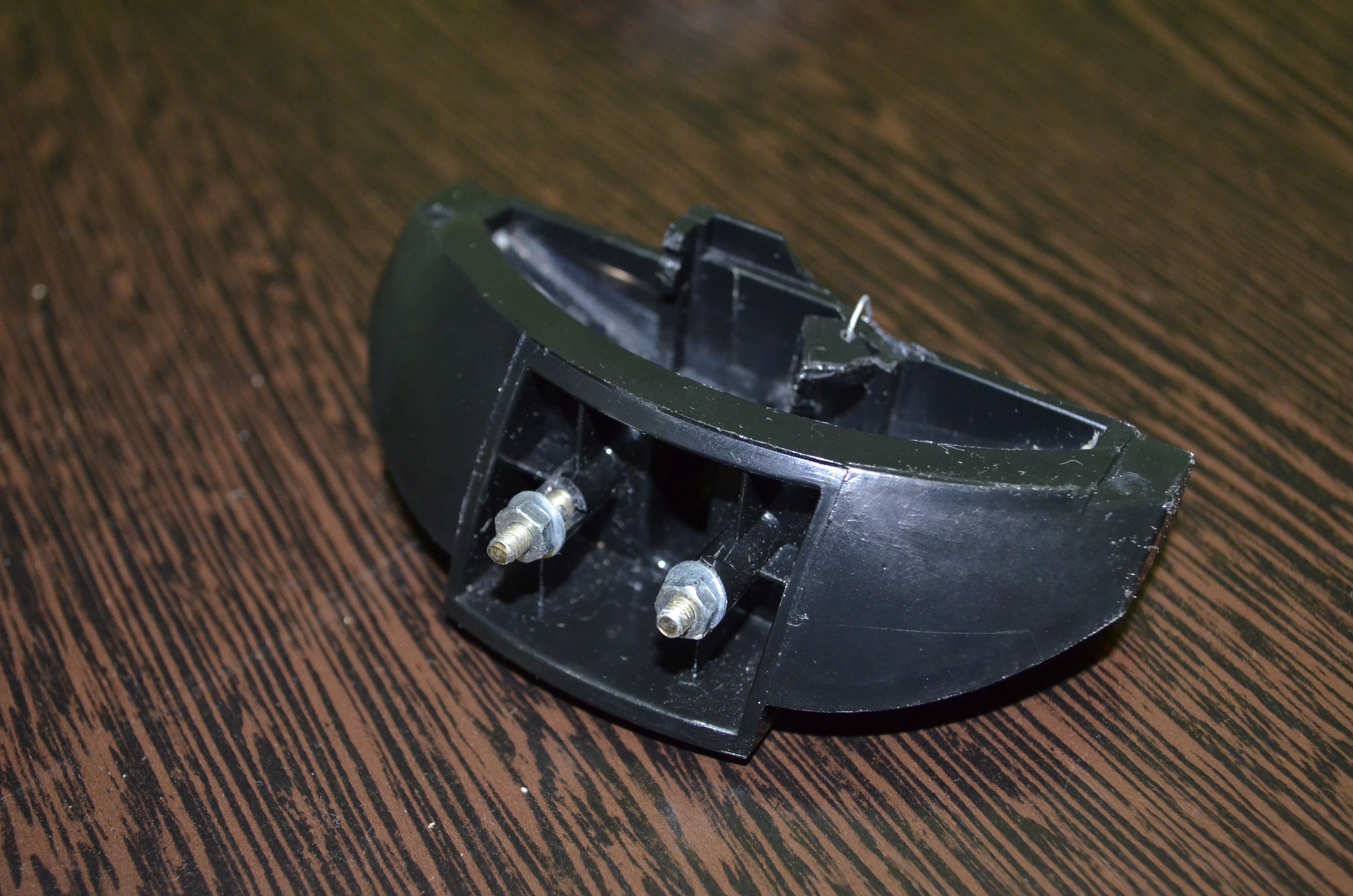 Началось все с того, что привезли мне вот эту штуковину:Пред история такая: все это держалось на заклепках (вроде так со слов заказчика), но пластик сломался и владелец данного чуда решил посадить все на болты, рассверлил немного и впихал один болт, а при попытке запихать второй он сломал верхнее ухо (он держится на проволоке), которое и держит саму крышку чайника, после чего обратился ко мне с просьбой изготовить. ;)