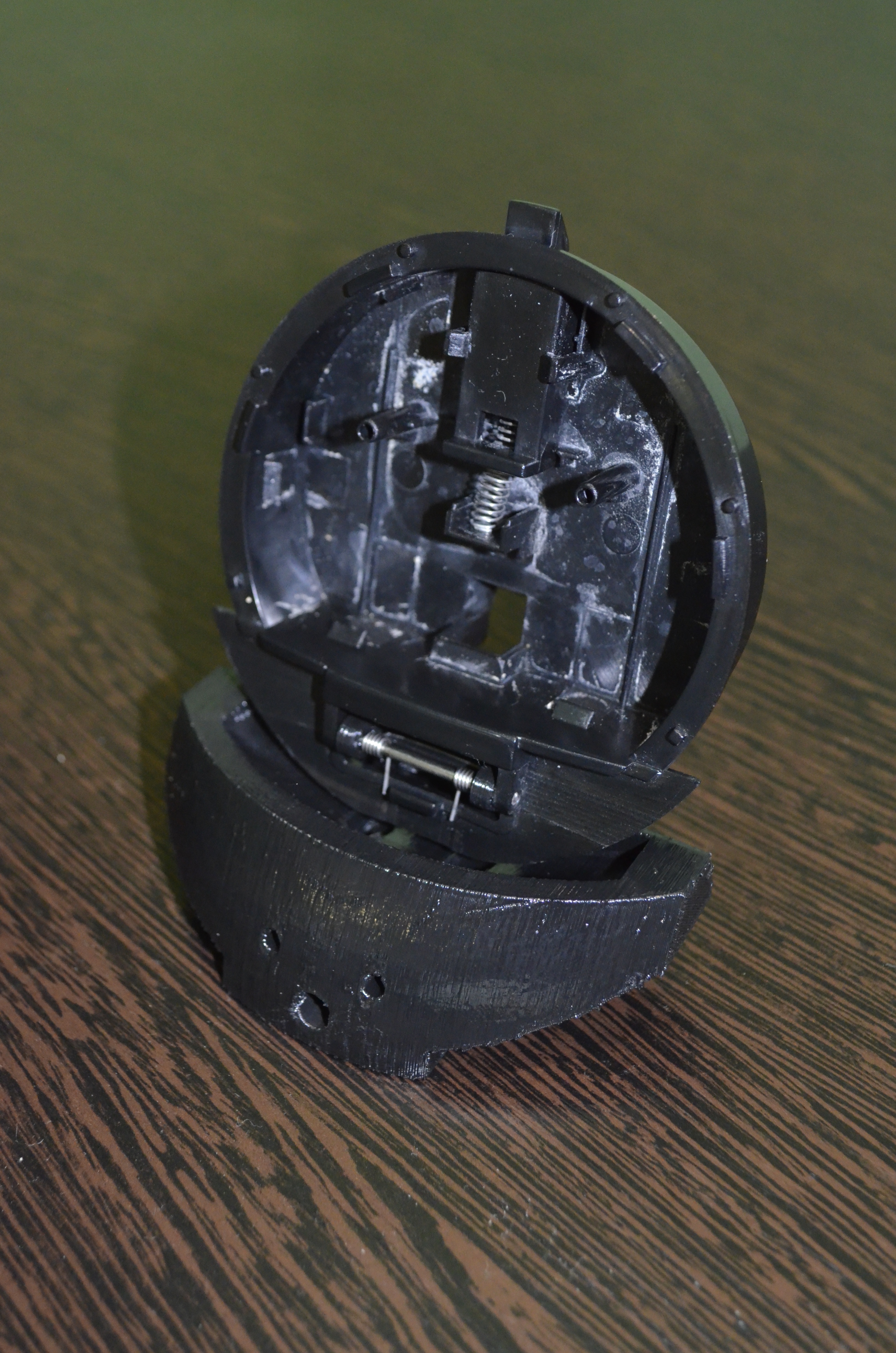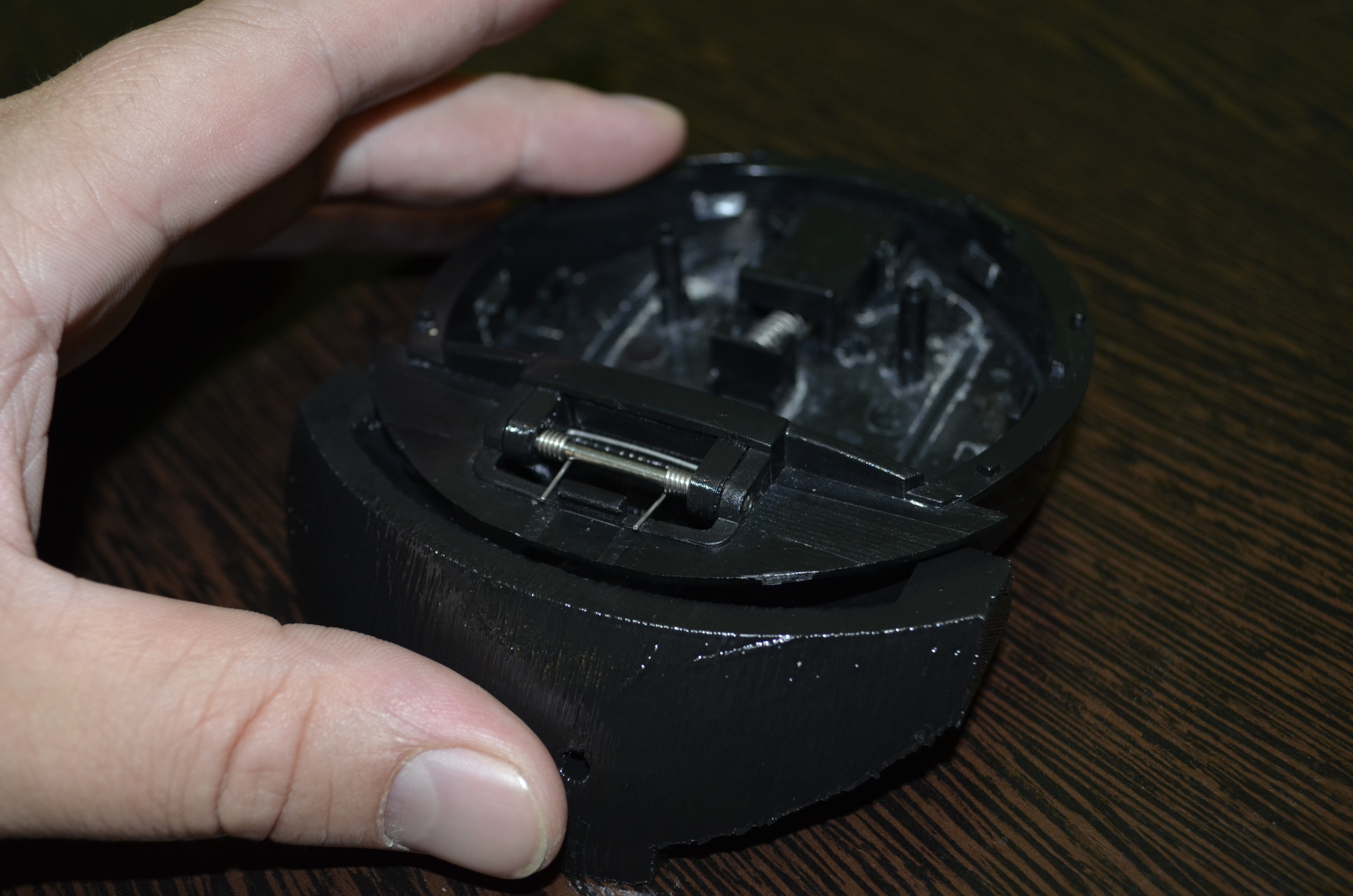 Через несколько дней он приехал, и при примерке к чайнику выяснялось, что нужно было делать н так. Переделываем, печатаем, и встречаемся прям перед самым моим отлетом во Вьетнам, примеряем к чайнику - все 'огонь', а вот когда он достал крышку и мы стали ее устанавливать вместе с пружинкой (которую я до этого не видел) выяснилось что еще нужно сделать упор для этой самой пружинки. :( Ну что делать, откладываем на 2 недели.