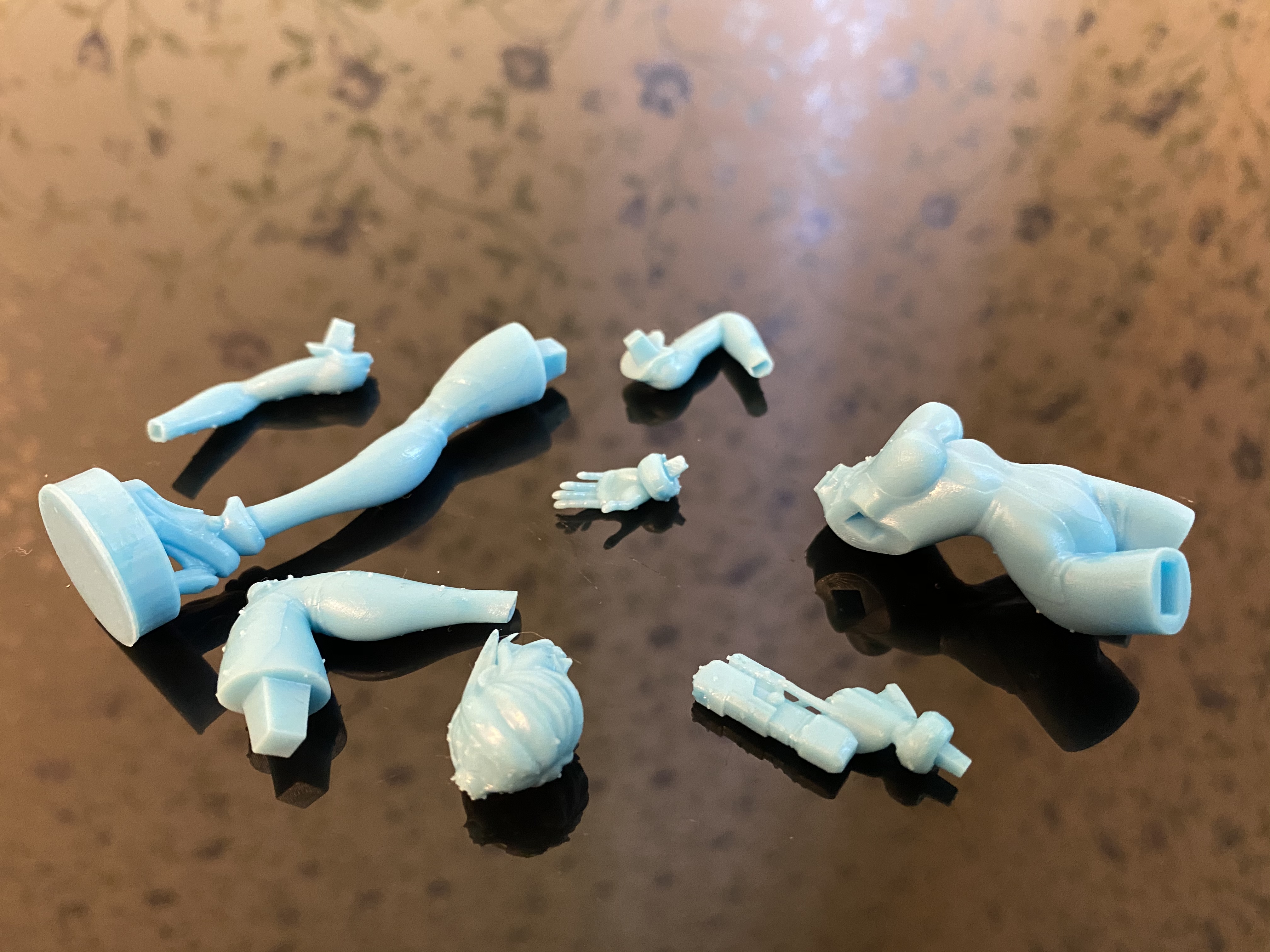 Печать на Sirius, полимером Hardlight Hard White колерованным в голубой цвет. Слой 50 мкм, экспозиция 5.5 сек. Высота модели примерно 140 мм.