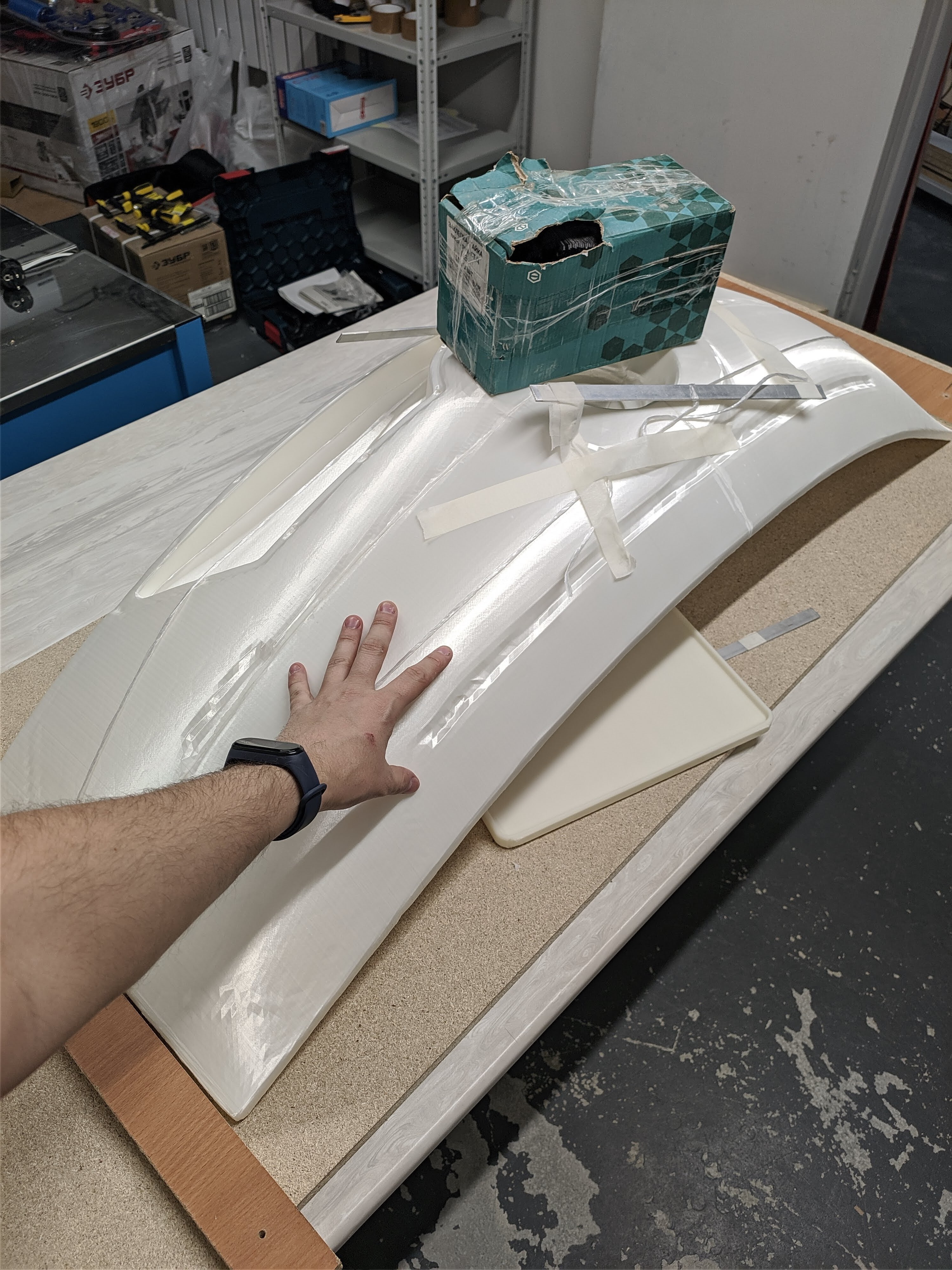 Продолжаем знакомить вас с изделиями для нашего партнера, гейм-студии. Перед вами макет экрана для видеоигр. Напечатали его из четырех частей на XL принтере, потом склеили. Получился достаточно грандиозный экспонат!