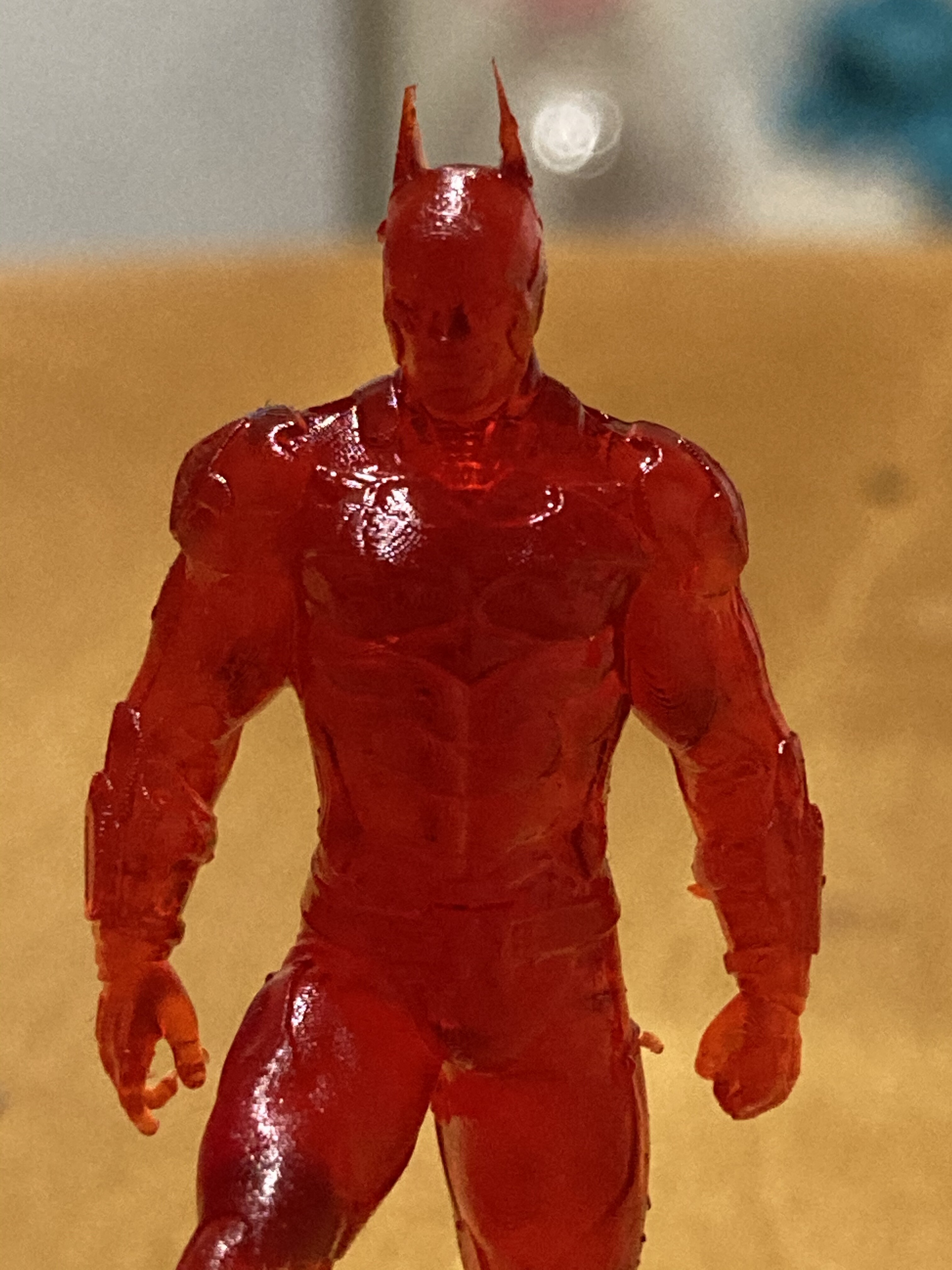 Продолжаю попытки в художку. Нашел на thinkyverse модельку бетмена. Из интересного промывал модельку в водке, и дал смоле подольше постекать с ванночку. Ну и уменьшил шаг стола до 50 микрон, с засветкой базовых слоев в 50 сек. И уменьшил количество базовых слоев до 3 шт. Засветка основного слоя 5 сек, согласно табличке harz labs. В принципе водка неплохо вымывает смолу и очищает модель, но все равно требуется дополнительная дозасветка