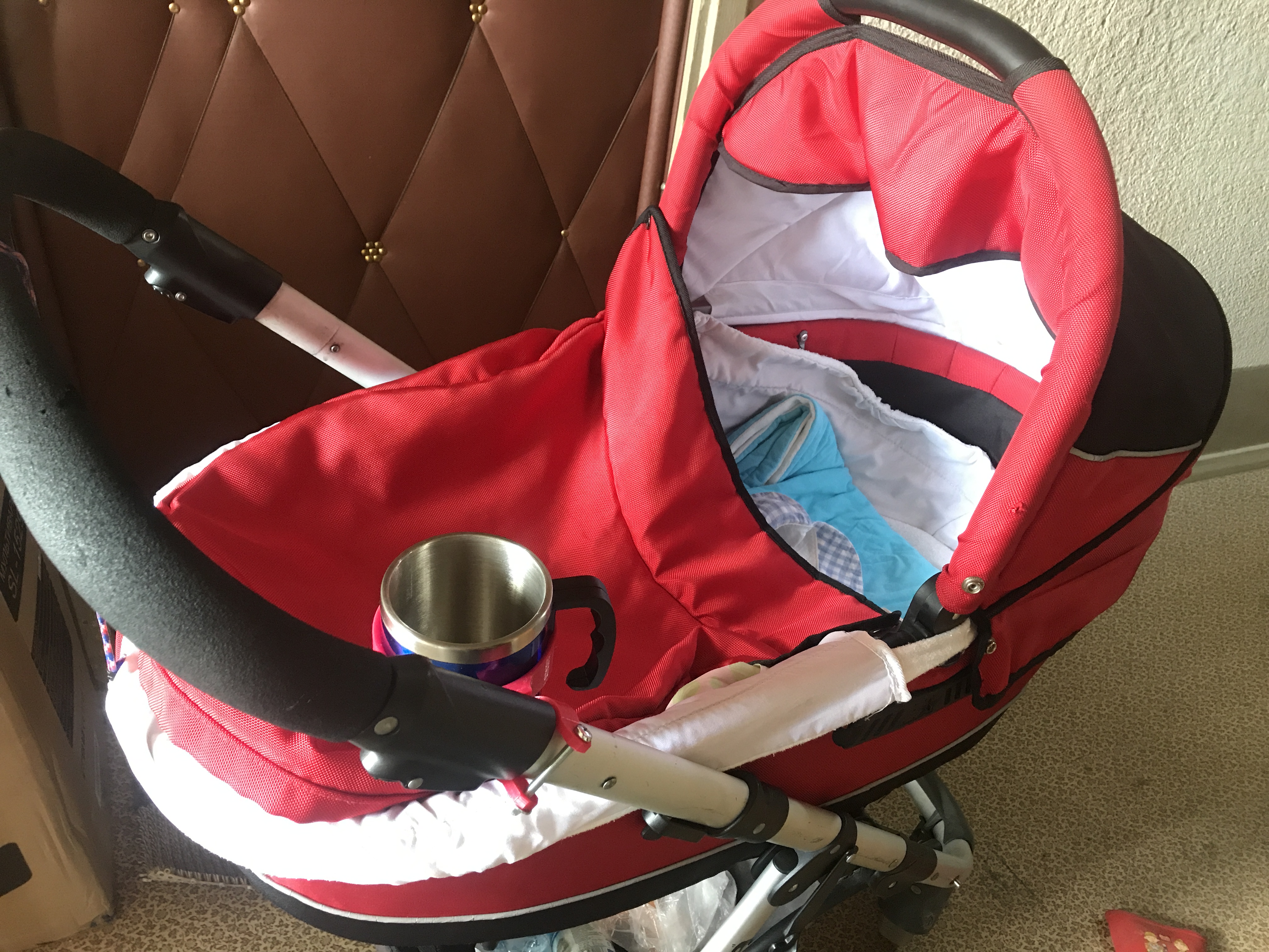 Купили самую дешёвую термокружку и под нее смоделировал крепление на коляску