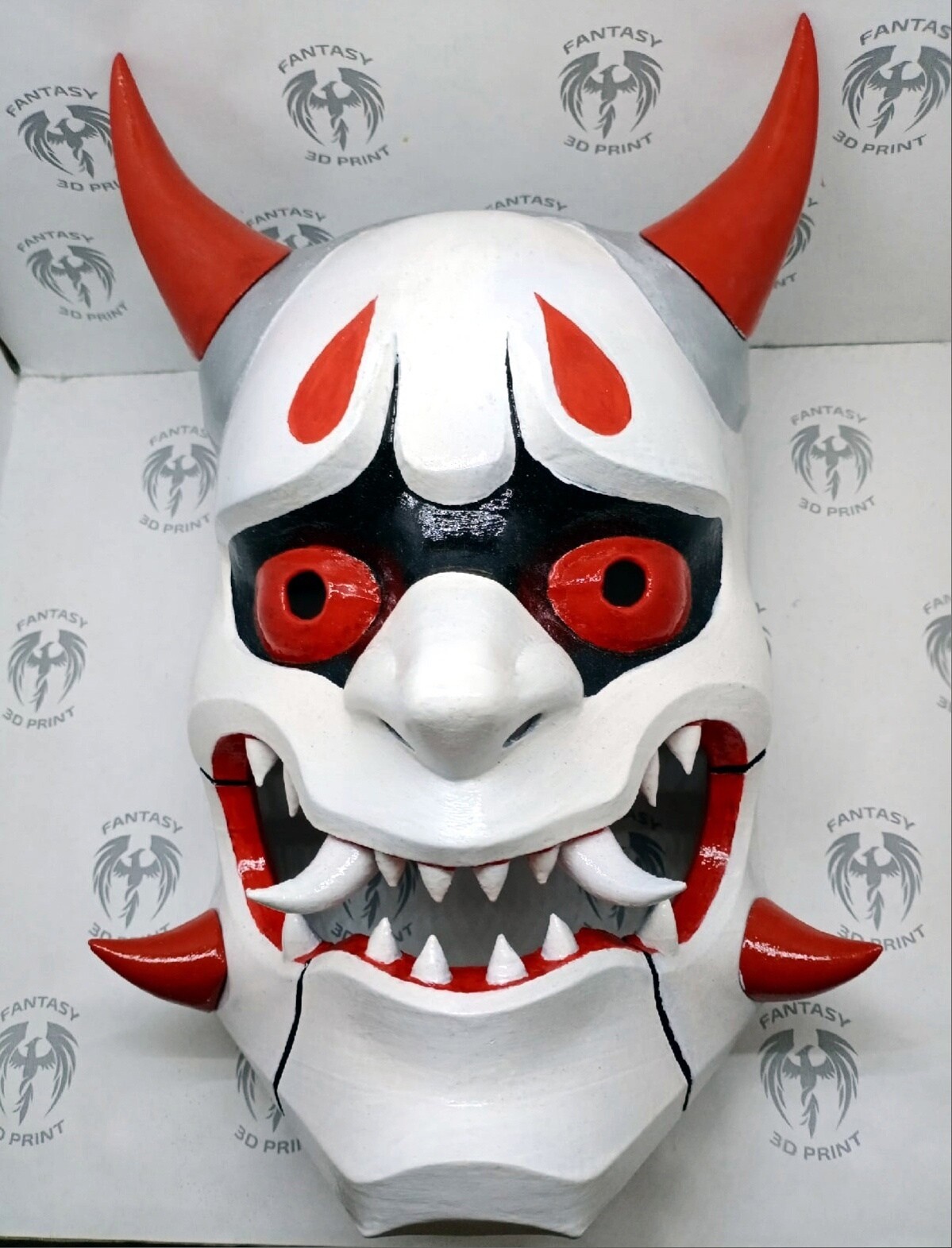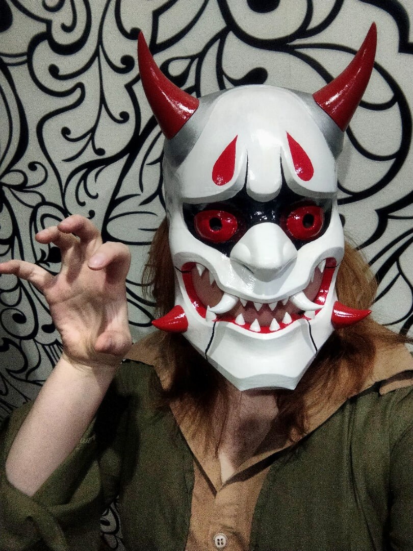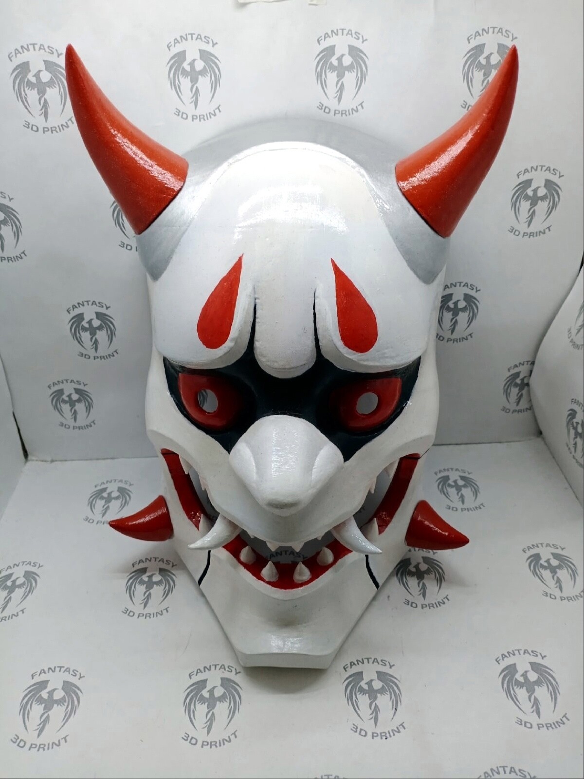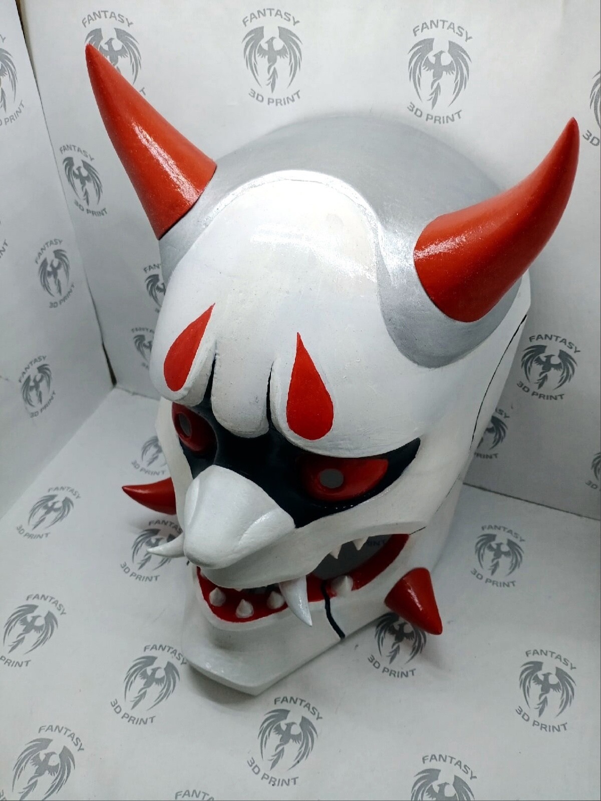 Распечатал маску Генджи ШимадаМоделировал из заготовки лоу поли из Героев ШтормаПласти АБС ФДпласт, слой 0.2 мШкурение, ацетон, акриловые краски, лак.